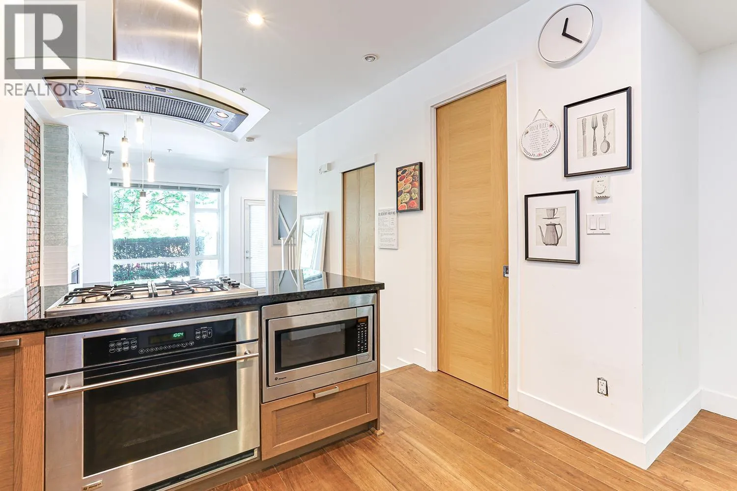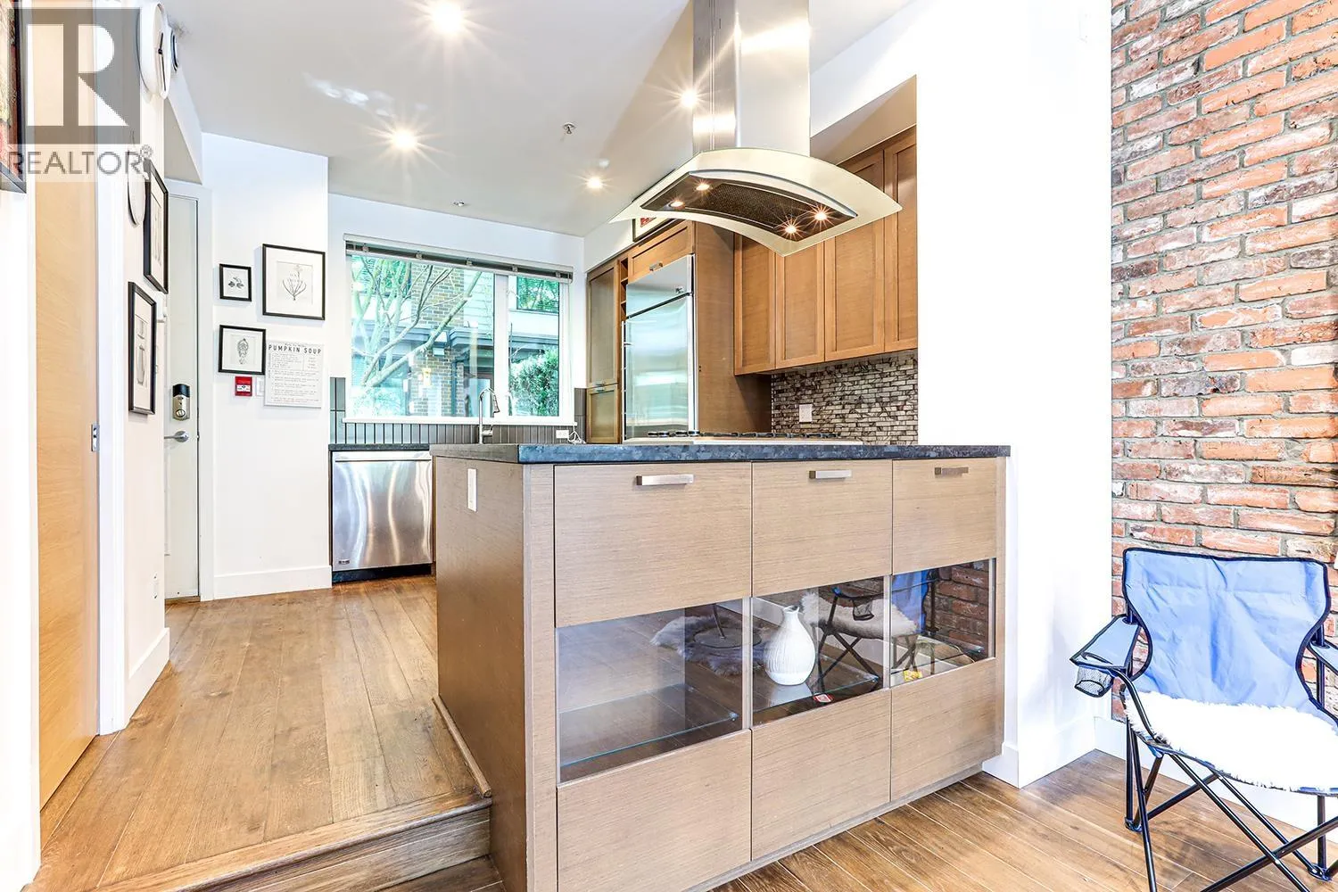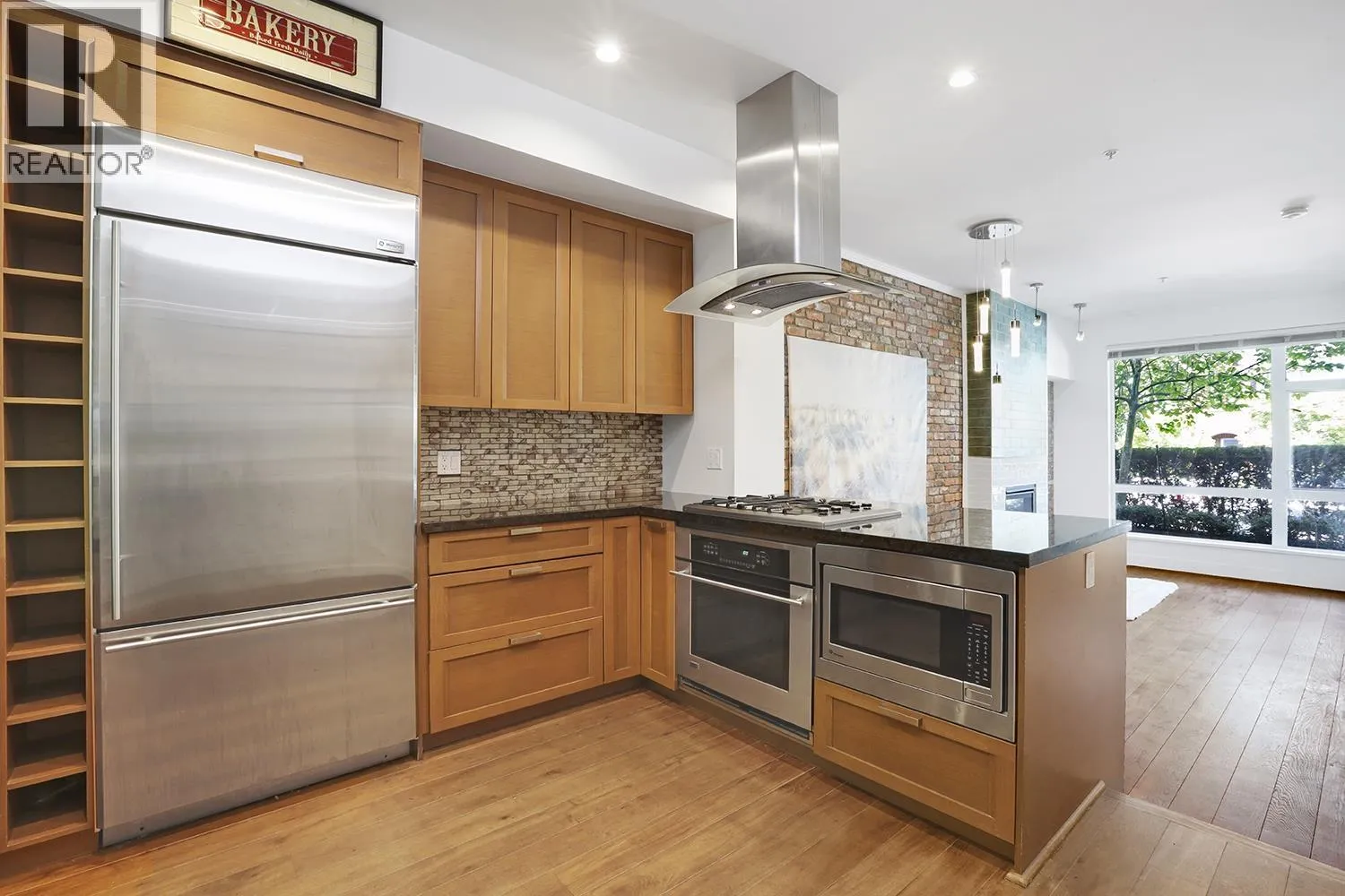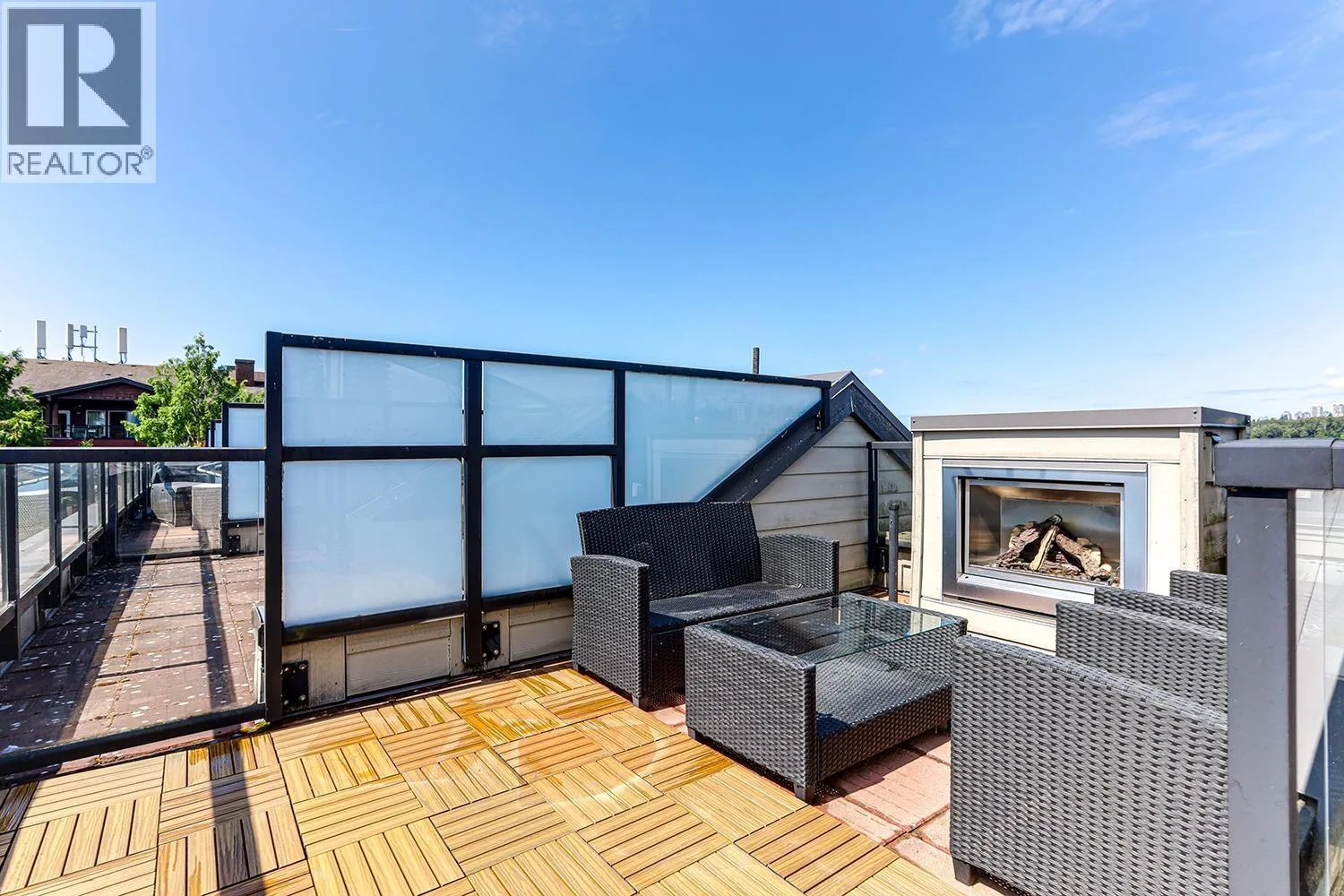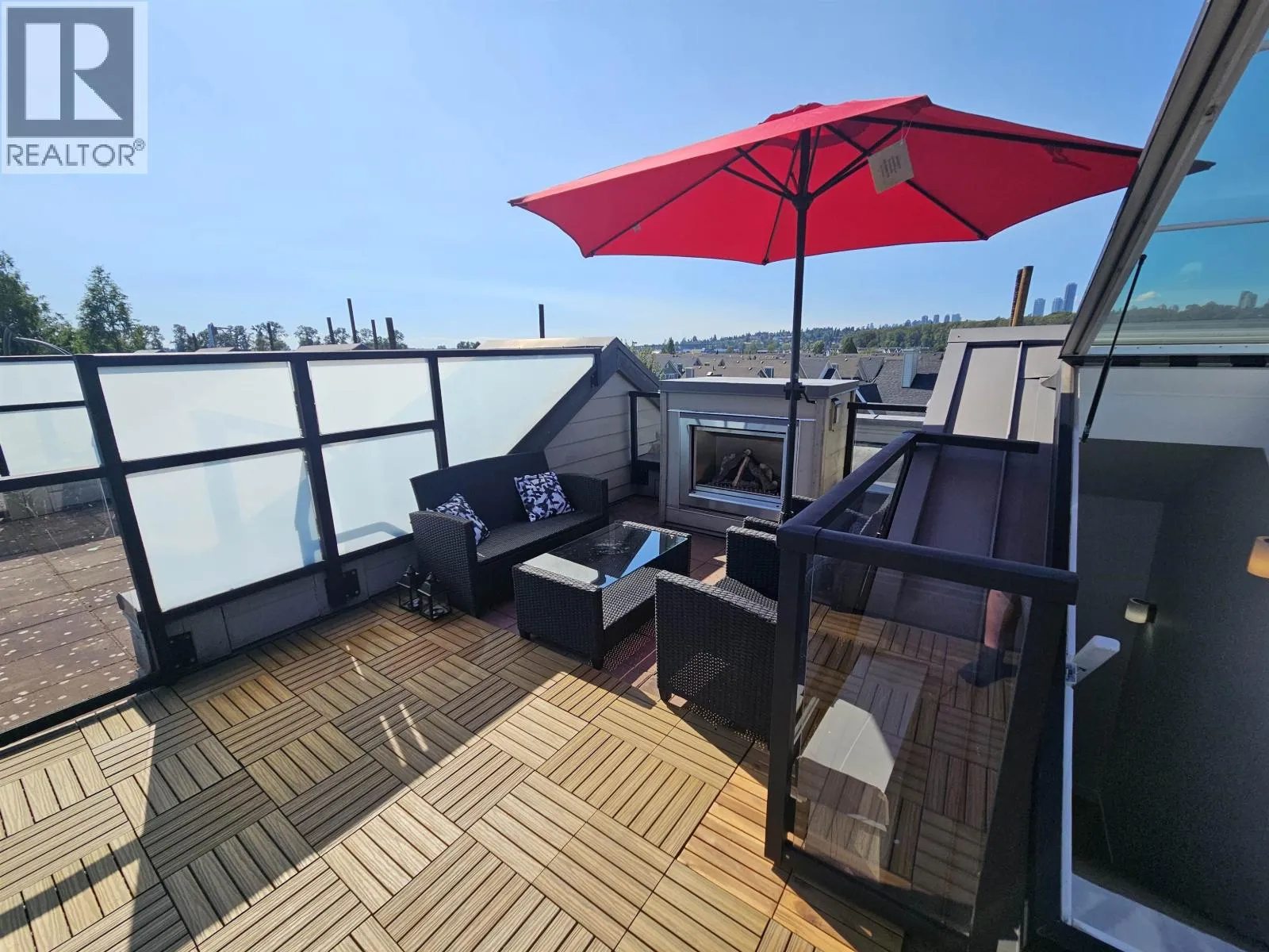 Port Royal the place to be in Queensborough, this 3-storey waterfront townhouse features a stylish kitchen with 4 burner gas cooktop, built-in wine rack, hardwood floors, and carpeted bedrooms and stairs. The Living room & Dining room is separated by a couple of steps to the kitchen creating a nice divide between the spaces, and is featured with a gas fireplace with brick walls accents above the fireplace. The two bedrooms are spacious and can fit a queen size bed in it. While the master bedroom can fit a king size bed. The ensuite is a 4-piece bathroom contains a shower & soaker tub in it. To top it off, the townhouse has a roof top deck with a gas fired fireplace and views of the river, and the mountains. 2 Parking Stalls & 1 Storage Locker. (id:27476)