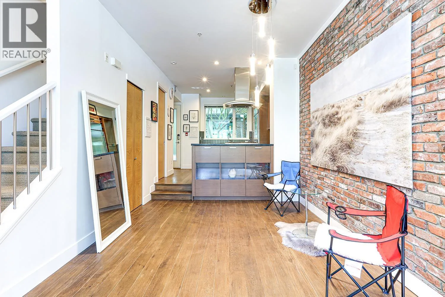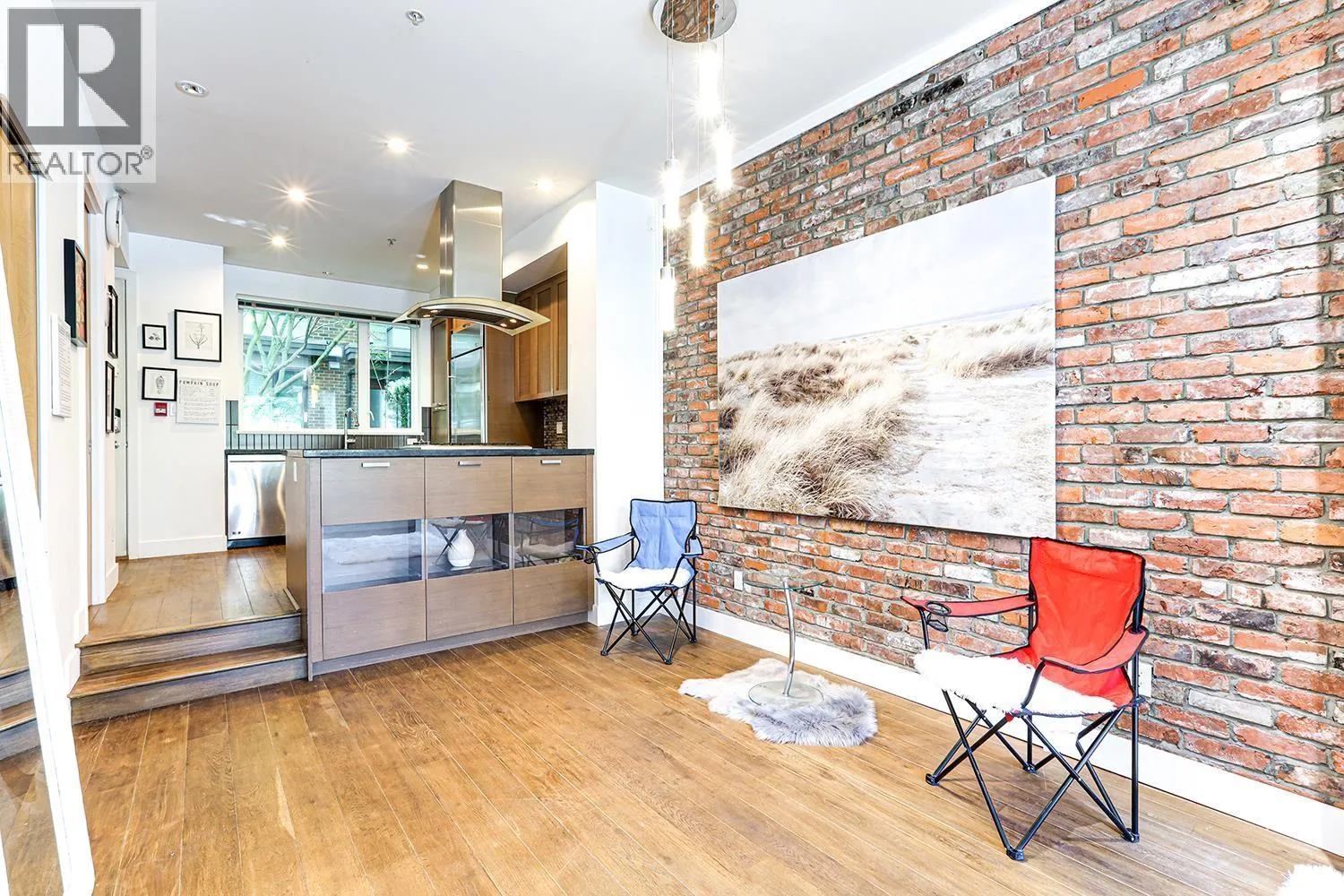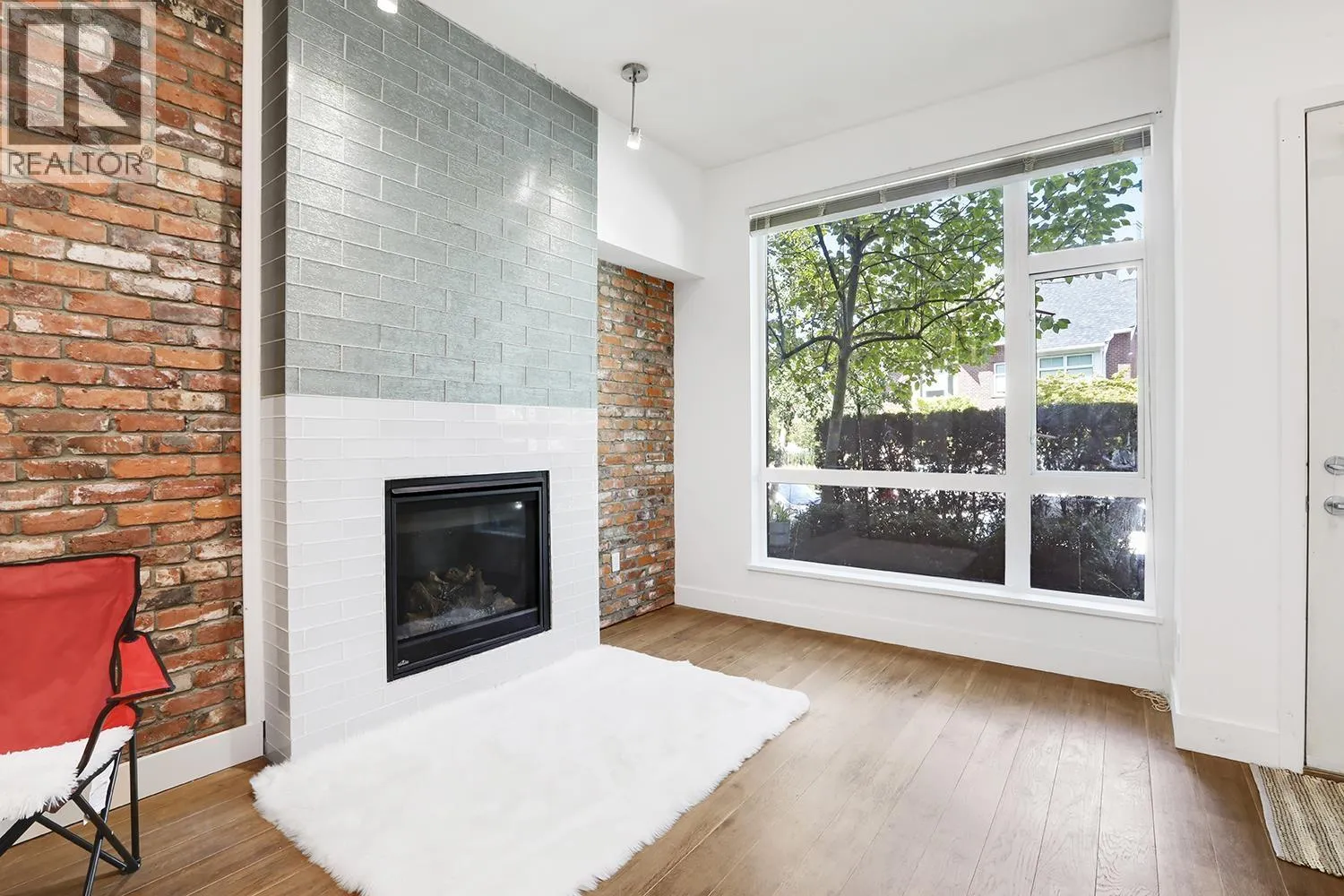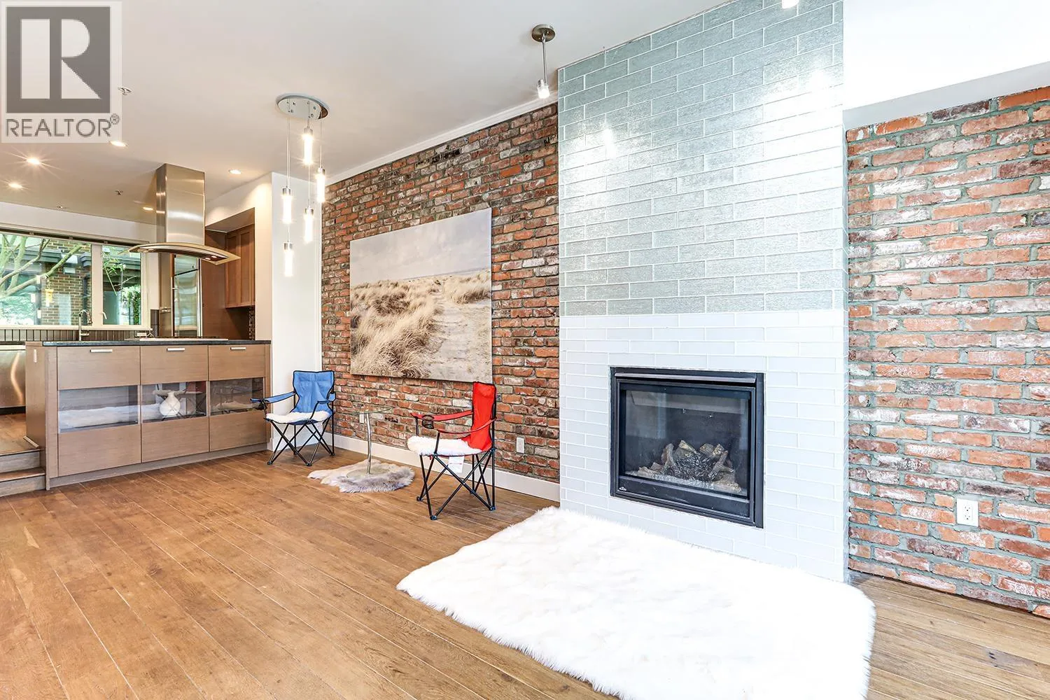Port Royal the place to be in Queensborough, this 3-storey waterfront townhouse features a stylish kitchen with 4 burner gas cooktop, built-in wine rack, hardwood floors, and carpeted bedrooms and stairs. The Living room & Dining room is separated by a couple of steps to the kitchen creating a nice divide between the spaces, and is featured with a gas fireplace with brick walls accents above the fireplace. The two bedrooms are spacious and can fit a queen size bed in it. While the master bedroom can fit a king size bed. The ensuite is a 4-piece bathroom contains a shower & soaker tub in it. To top it off, the townhouse has a roof top deck with a gas fired fireplace and views of the river, and the mountains. 2 Parking Stalls & 1 Storage Locker. (id:27476)
