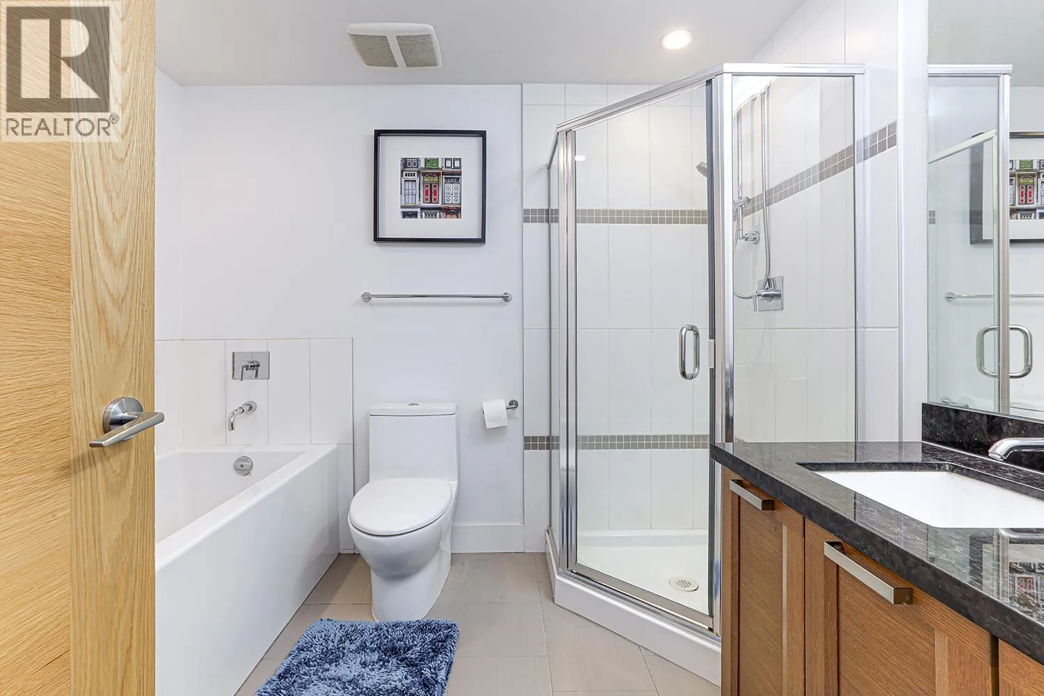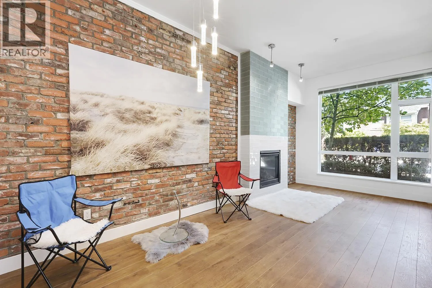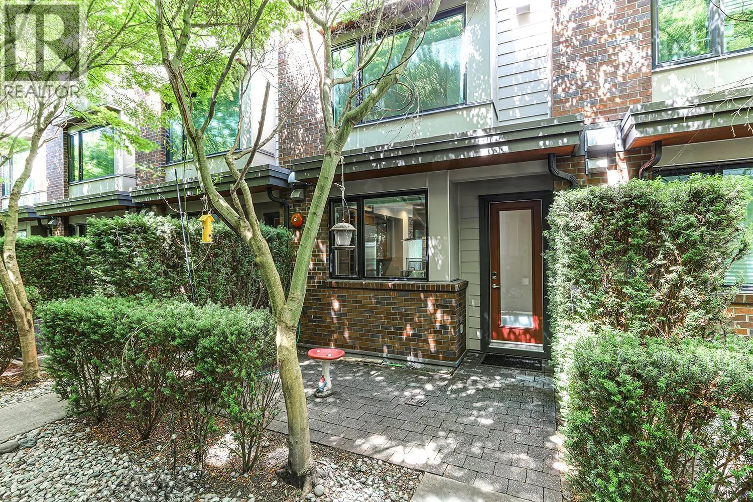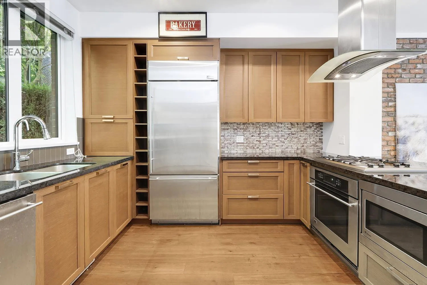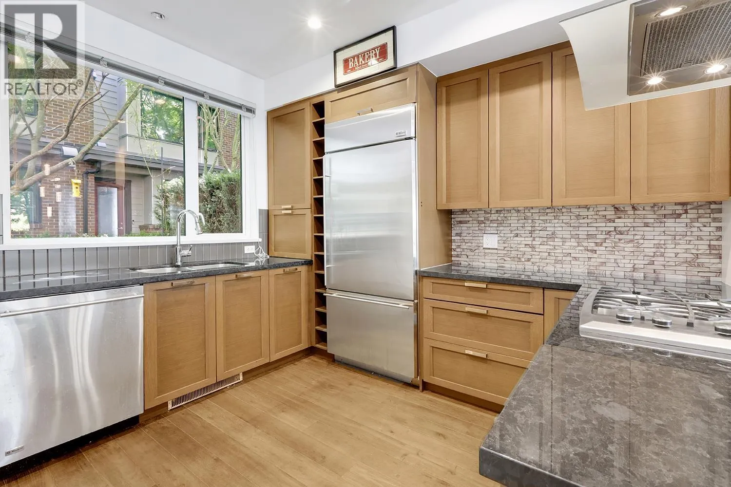 Port Royal the place to be in Queensborough, this 3-storey waterfront townhouse features a stylish kitchen with 4 burner gas cooktop, built-in wine rack, hardwood floors, and carpeted bedrooms and stairs. The Living room & Dining room is separated by a couple of steps to the kitchen creating a nice divide between the spaces, and is featured with a gas fireplace with brick walls accents above the fireplace. The two bedrooms are spacious and can fit a queen size bed in it. While the master bedroom can fit a king size bed. The ensuite is a 4-piece bathroom contains a shower & soaker tub in it. To top it off, the townhouse has a roof top deck with a gas fired fireplace and views of the river, and the mountains. 2 Parking Stalls & 1 Storage Locker. (id:27476)