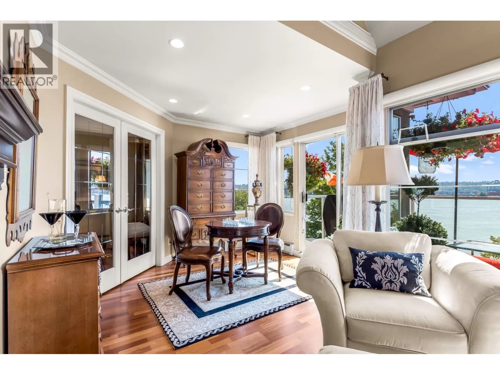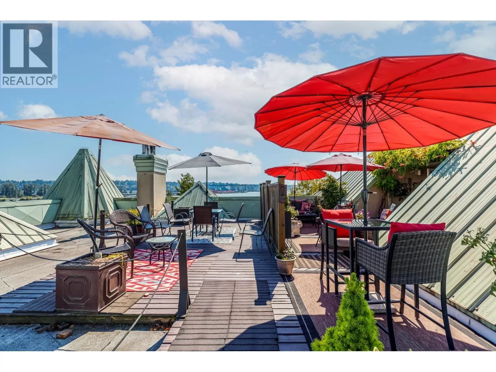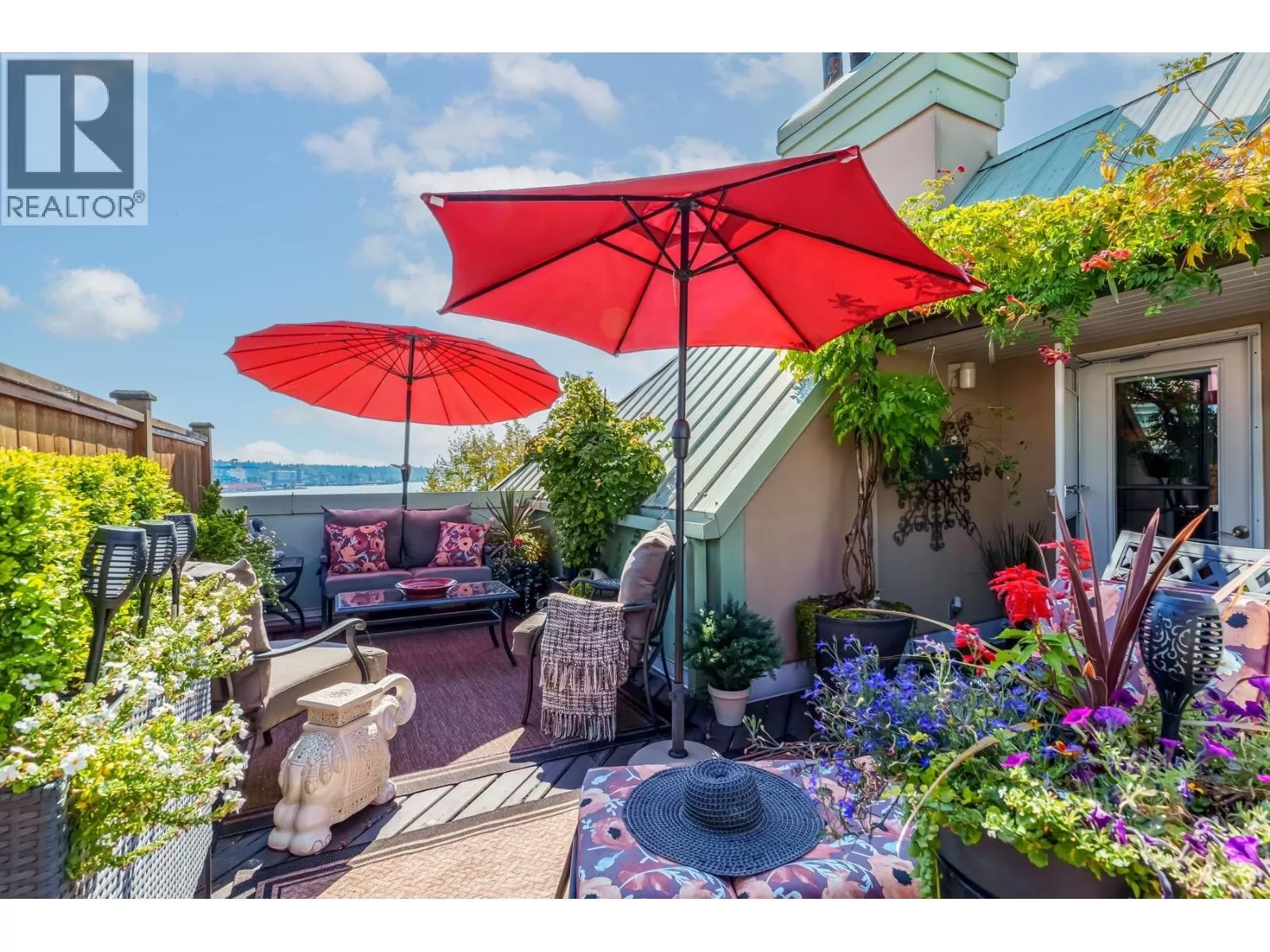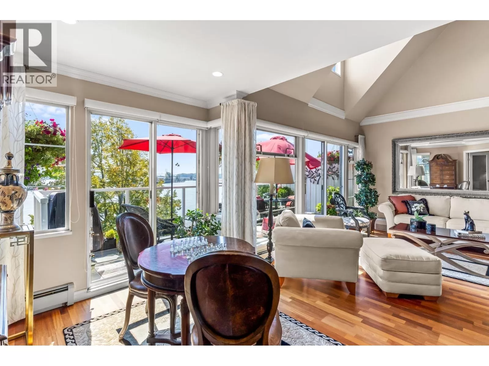Waterfront living at its best! This fully remodelled 2 level, 1400+ square ft home offers 2 bedrooms plus a den and an upper level family room. Features include Brazilian cherry hardwood floors on the main, a custom kitchen, gas fireplace in the living room (included in strata fees) and a primary bedroom with walk in closet and five piece ensuite. Enjoy fabulous water views from a large balcony off the living room or from the rooftop deck. 2 pets allowed. 1 parking stall and visitor parking. Common room with fitness equipment, pool table and sauna. Steps to cafes, restaurants, shops, River Market, Pier Park, Skytrain & downtown New West. (id:27476)