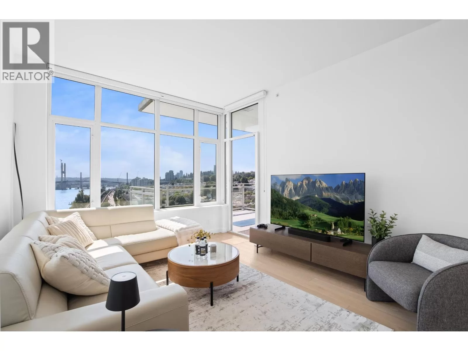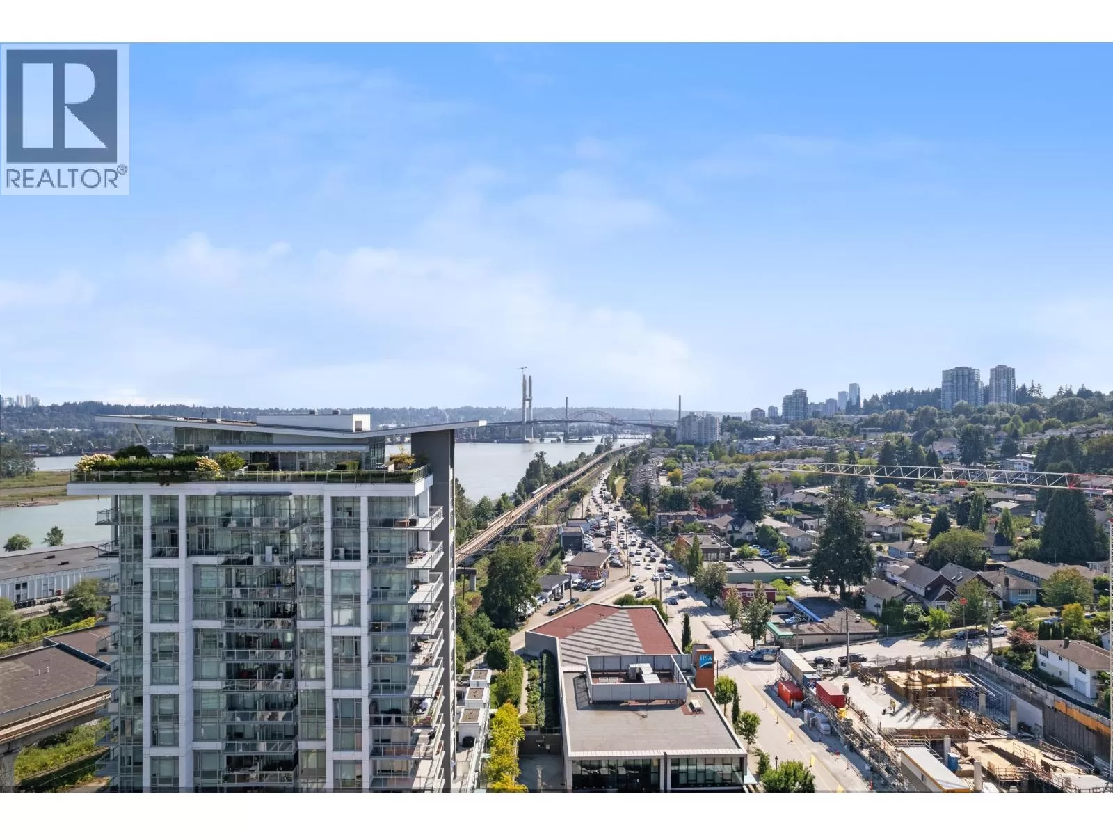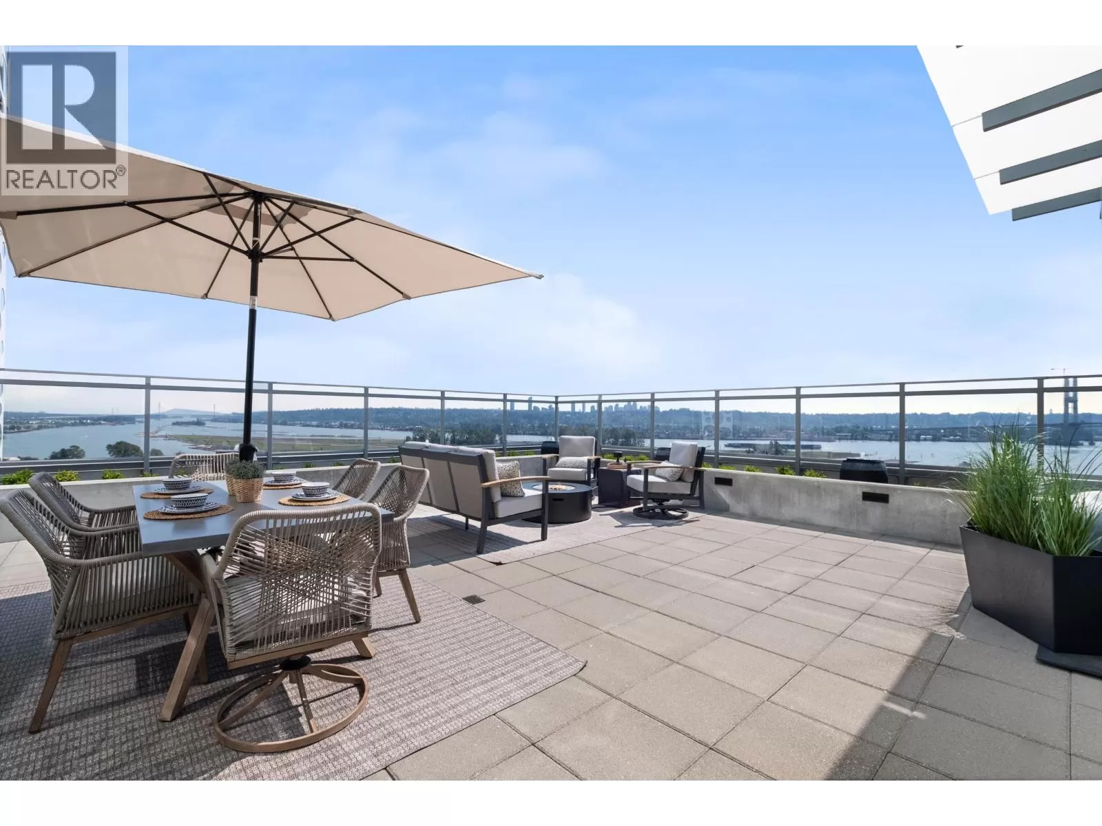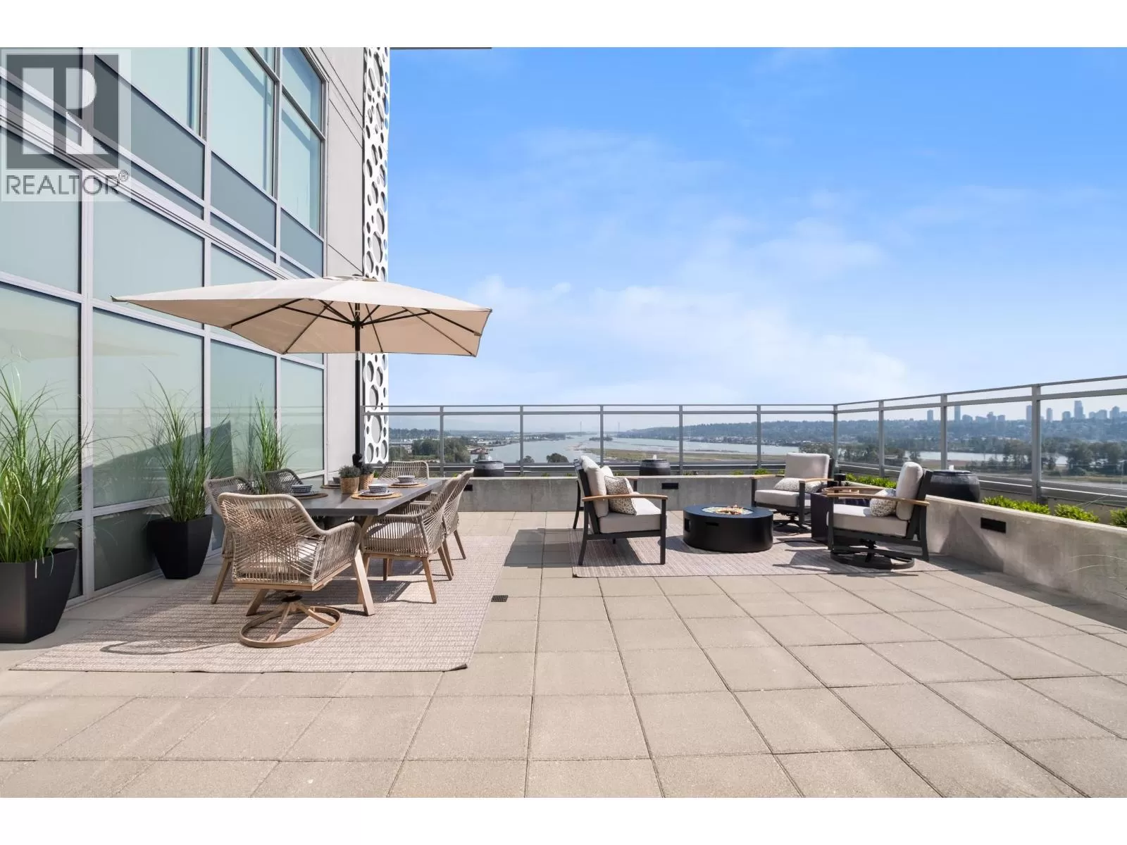 Rare sub-penthouse | 2 Bed, 2 Bath, 915 sq. ft. + 809 sq. ft. of outdoor living. A sexy, one-of-a-kind corner residence floating above the Fraser River with panoramic views of Mount Baker & Golden Ears. Featuring 9´ ceilings, floor-to-ceiling windows & $13K in luxury upgrades, this home flows seamlessly to 2 private patios - a 675 sq. ft. entertainer´s deck with hot tub, fire pit & gas/water hookups + a 134 sq. ft. retreat off the bedrooms. Resort-inspired living with a commercial gym, squash courts, yoga, steam, sauna & resident lounge. Includes 2 side-by-side parking + XL storage. Steps to SkyTrain, Royal Columbian Hospital, Save-On-Foods, Browns Socialhouse & Brunette Greenway. The Brewery District´s most exclusive lifestyle offering. (id:27476)
