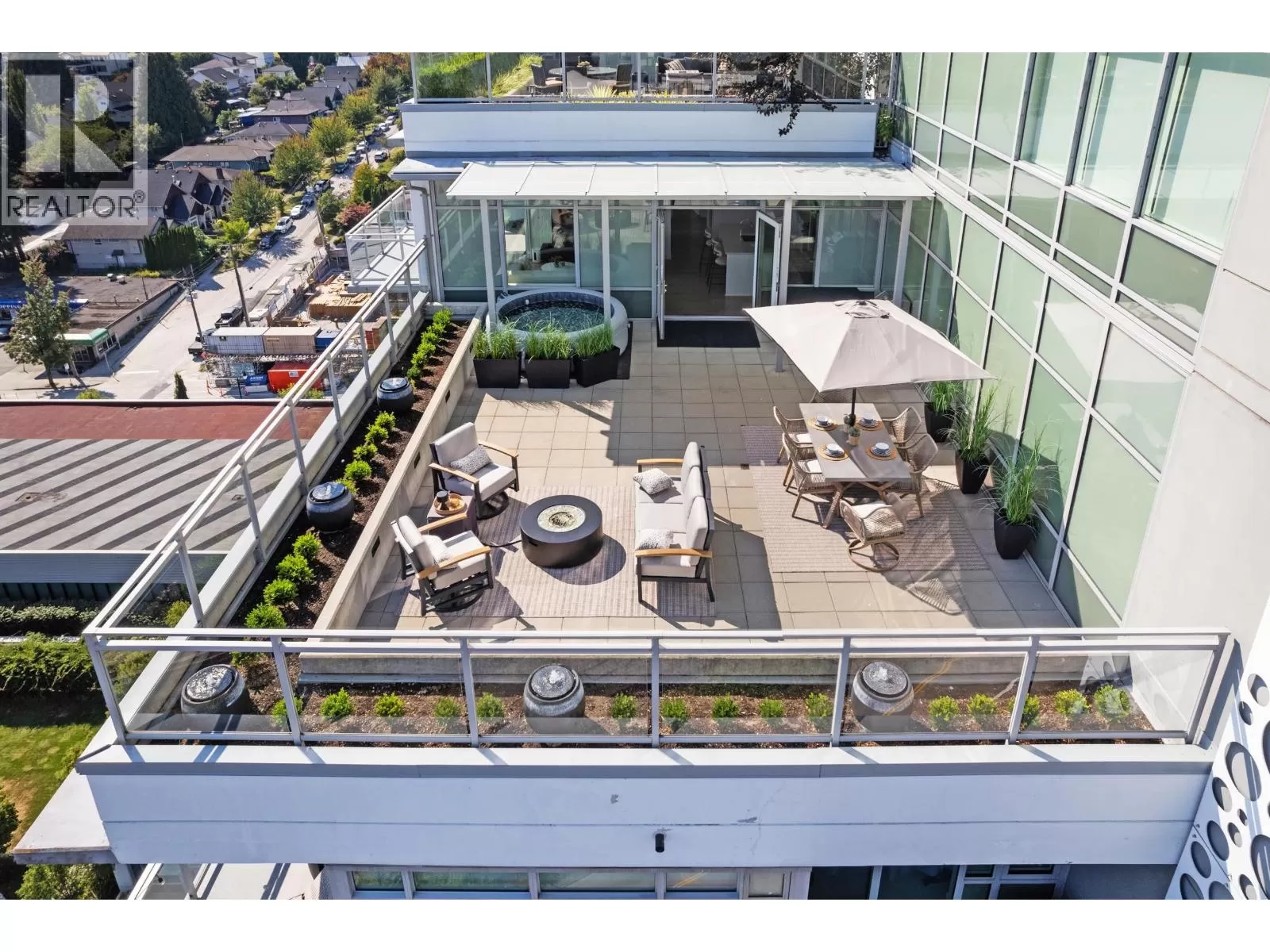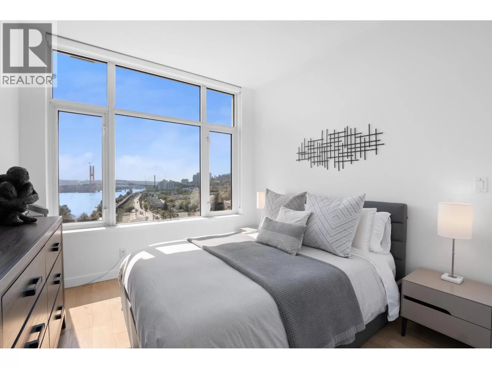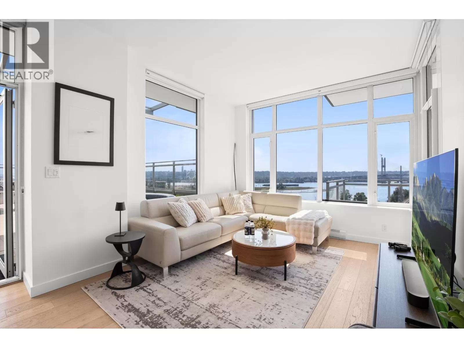 Rare sub-penthouse | 2 Bed, 2 Bath, 915 sq. ft. + 809 sq. ft. of outdoor living. A sexy, one-of-a-kind corner residence floating above the Fraser River with panoramic views of Mount Baker & Golden Ears. Featuring 9´ ceilings, floor-to-ceiling windows & $13K in luxury upgrades, this home flows seamlessly to 2 private patios - a 675 sq. ft. entertainer´s deck with hot tub, fire pit & gas/water hookups + a 134 sq. ft. retreat off the bedrooms. Resort-inspired living with a commercial gym, squash courts, yoga, steam, sauna & resident lounge. Includes 2 side-by-side parking + XL storage. Steps to SkyTrain, Royal Columbian Hospital, Save-On-Foods, Browns Socialhouse & Brunette Greenway. The Brewery District´s most exclusive lifestyle offering. (id:27476)