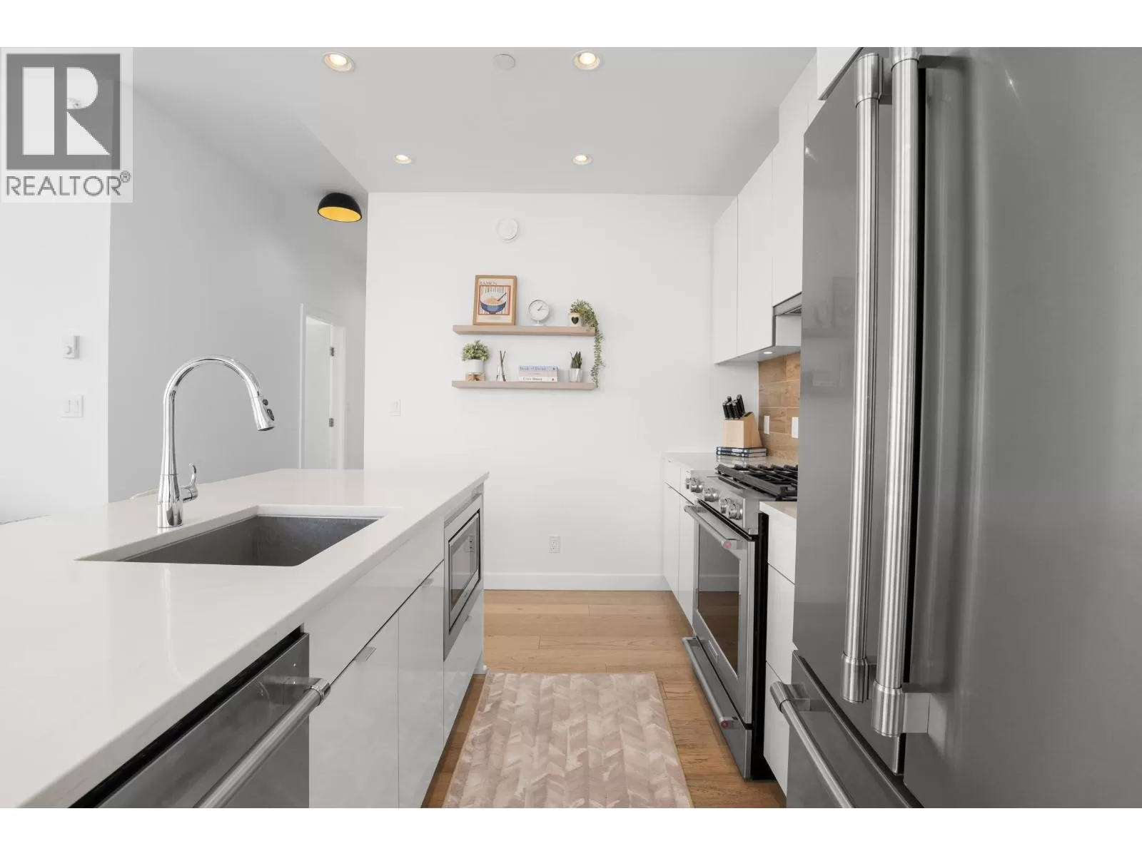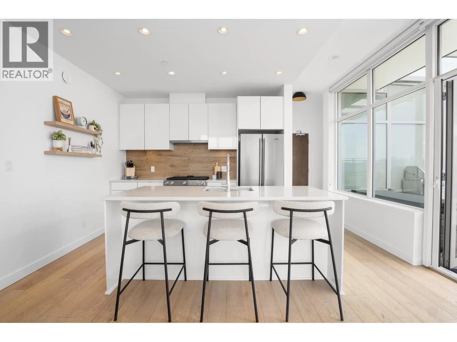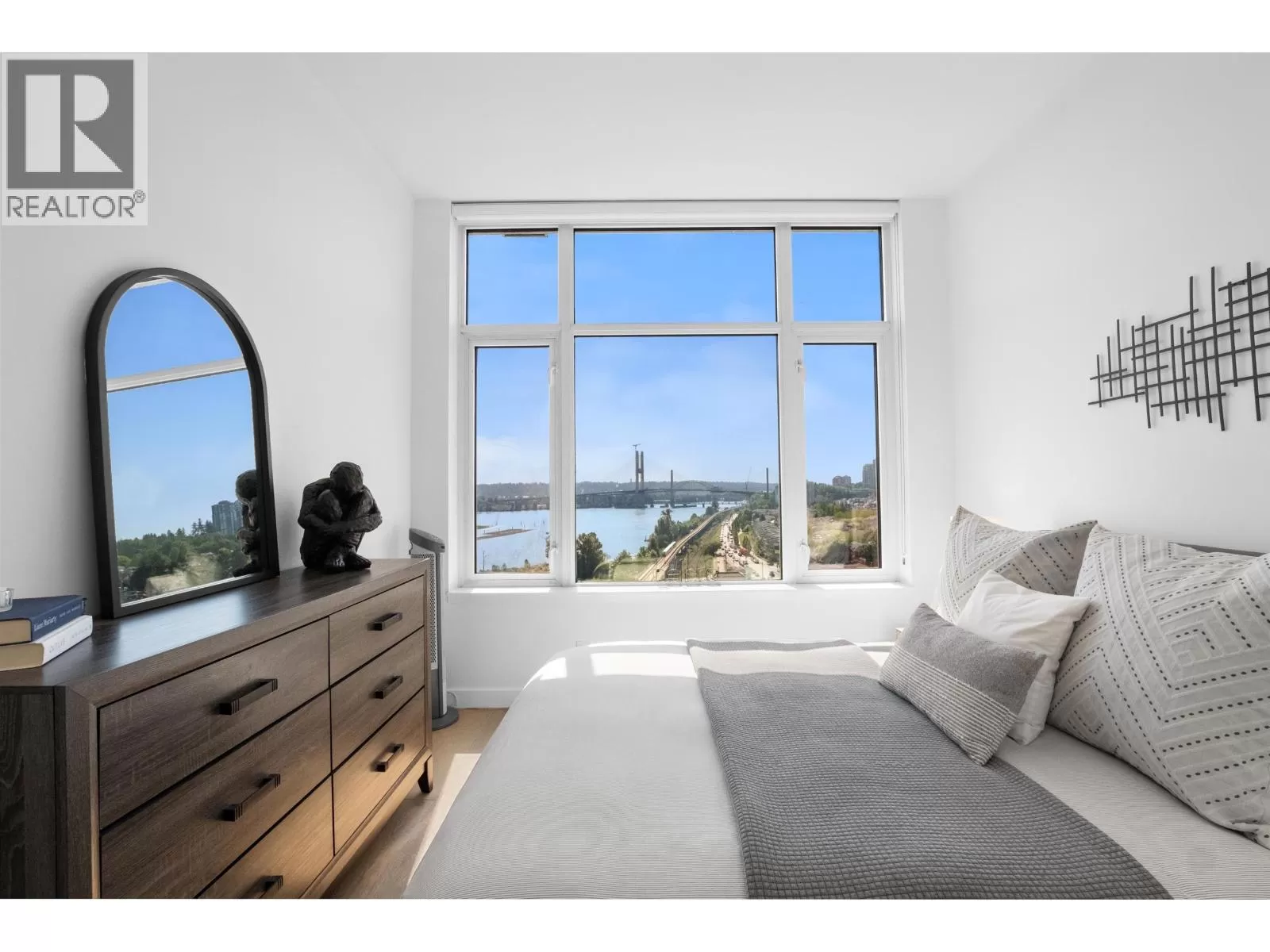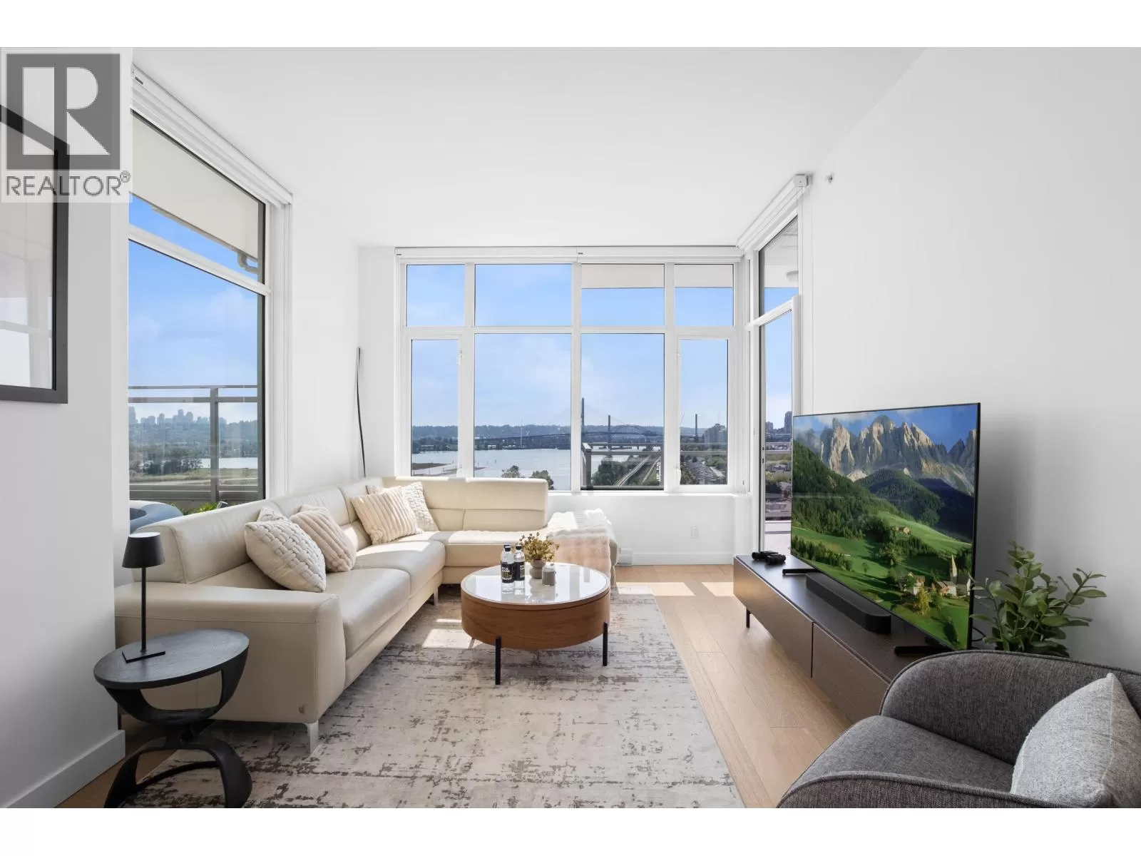 Rare sub-penthouse | 2 Bed, 2 Bath, 915 sq. ft. + 809 sq. ft. of outdoor living. A sexy, one-of-a-kind corner residence floating above the Fraser River with panoramic views of Mount Baker & Golden Ears. Featuring 9´ ceilings, floor-to-ceiling windows & $13K in luxury upgrades, this home flows seamlessly to 2 private patios - a 675 sq. ft. entertainer´s deck with hot tub, fire pit & gas/water hookups + a 134 sq. ft. retreat off the bedrooms. Resort-inspired living with a commercial gym, squash courts, yoga, steam, sauna & resident lounge. Includes 2 side-by-side parking + XL storage. Steps to SkyTrain, Royal Columbian Hospital, Save-On-Foods, Browns Socialhouse & Brunette Greenway. The Brewery District´s most exclusive lifestyle offering. (id:27476)