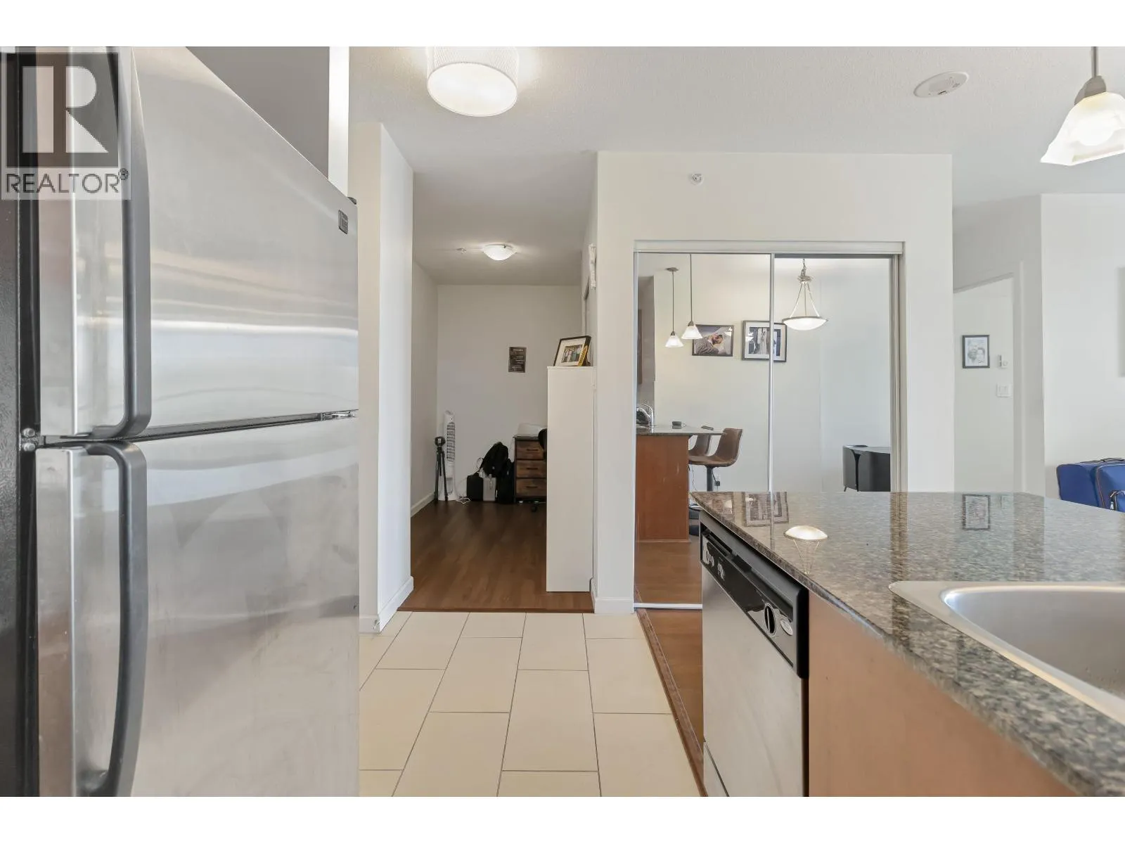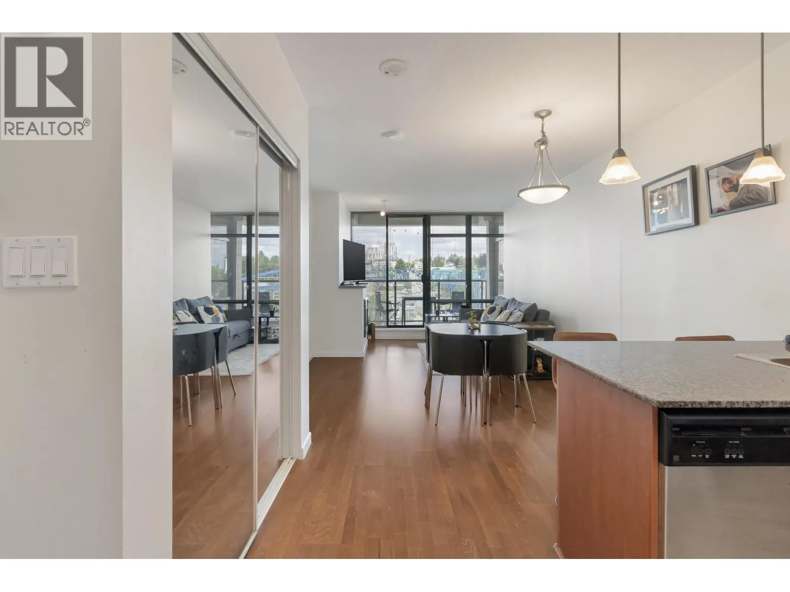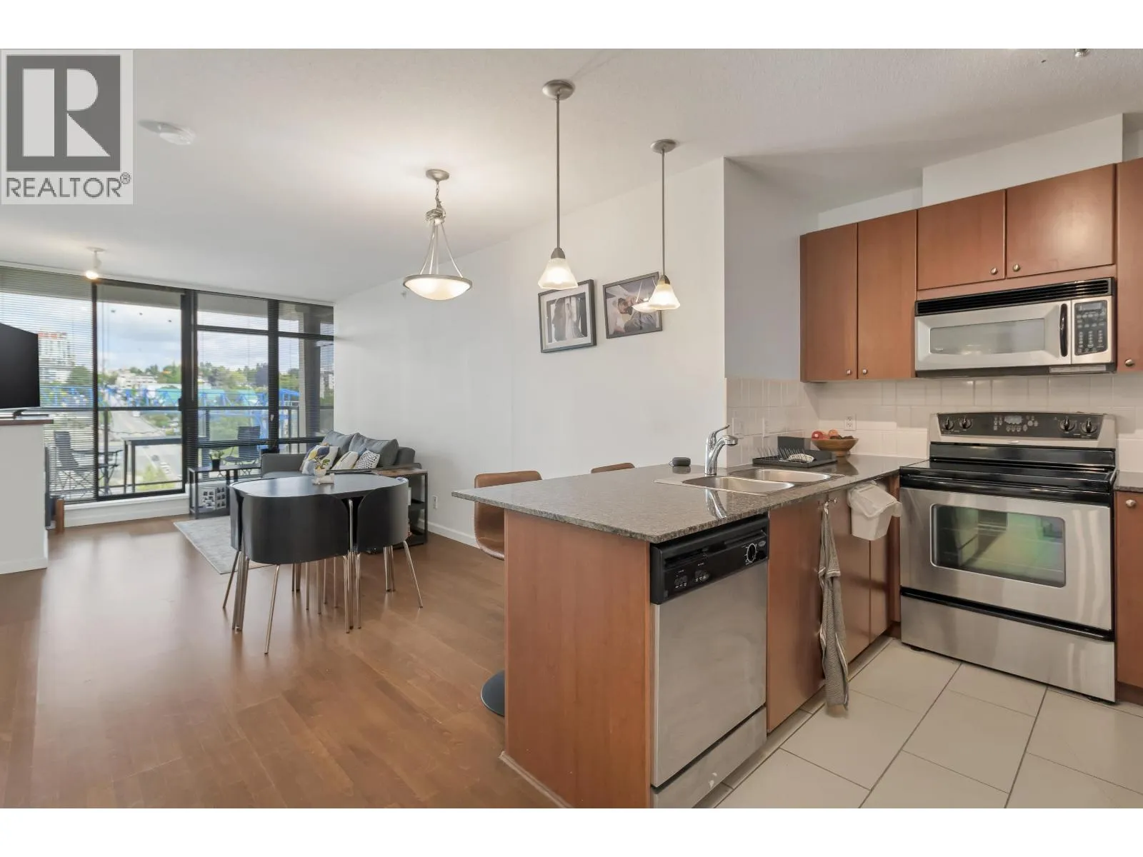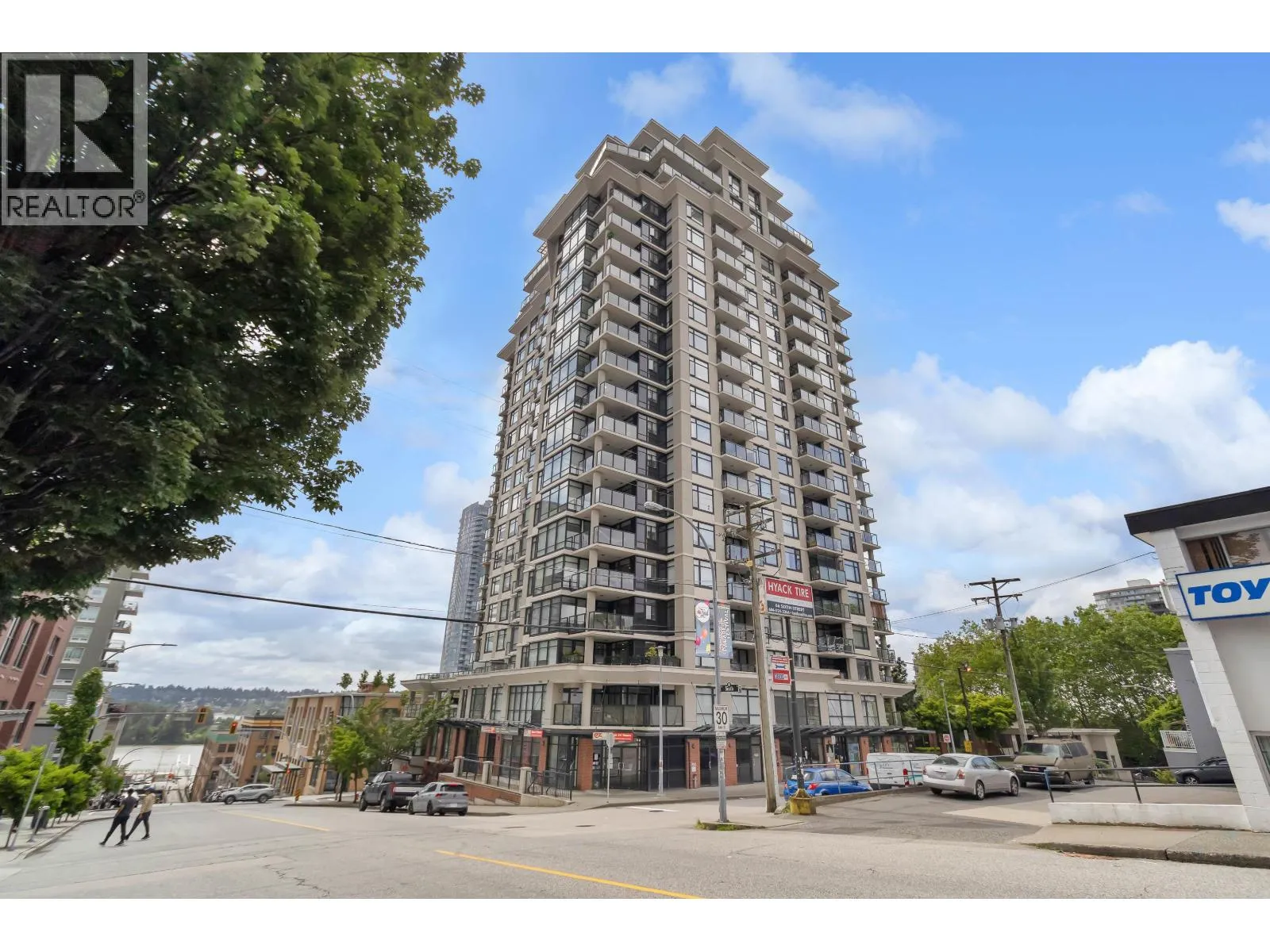 Opportunity knocks at "The Point", located in the vibrant Downtown New West! Welcome to this spacious 1 bed + den unit, featuring an ideal open concept layout, perfect for first-time buyers or savvy investors. Features include an open kitchen with granite counters, stainless steel appliances, a breakfast bar, and modern cabinetry. Relax in the deep soaker tub, laminate floors, in-suite laundry, one parking spot, and ample street parking. Building amenities include an indoor pool, hot tub, gym, media room, and lounge area. All this just steps from the SkyTrain, shops, restaurants, Pier Park, and the Quay. A smart start in a prime location! (id:27476)