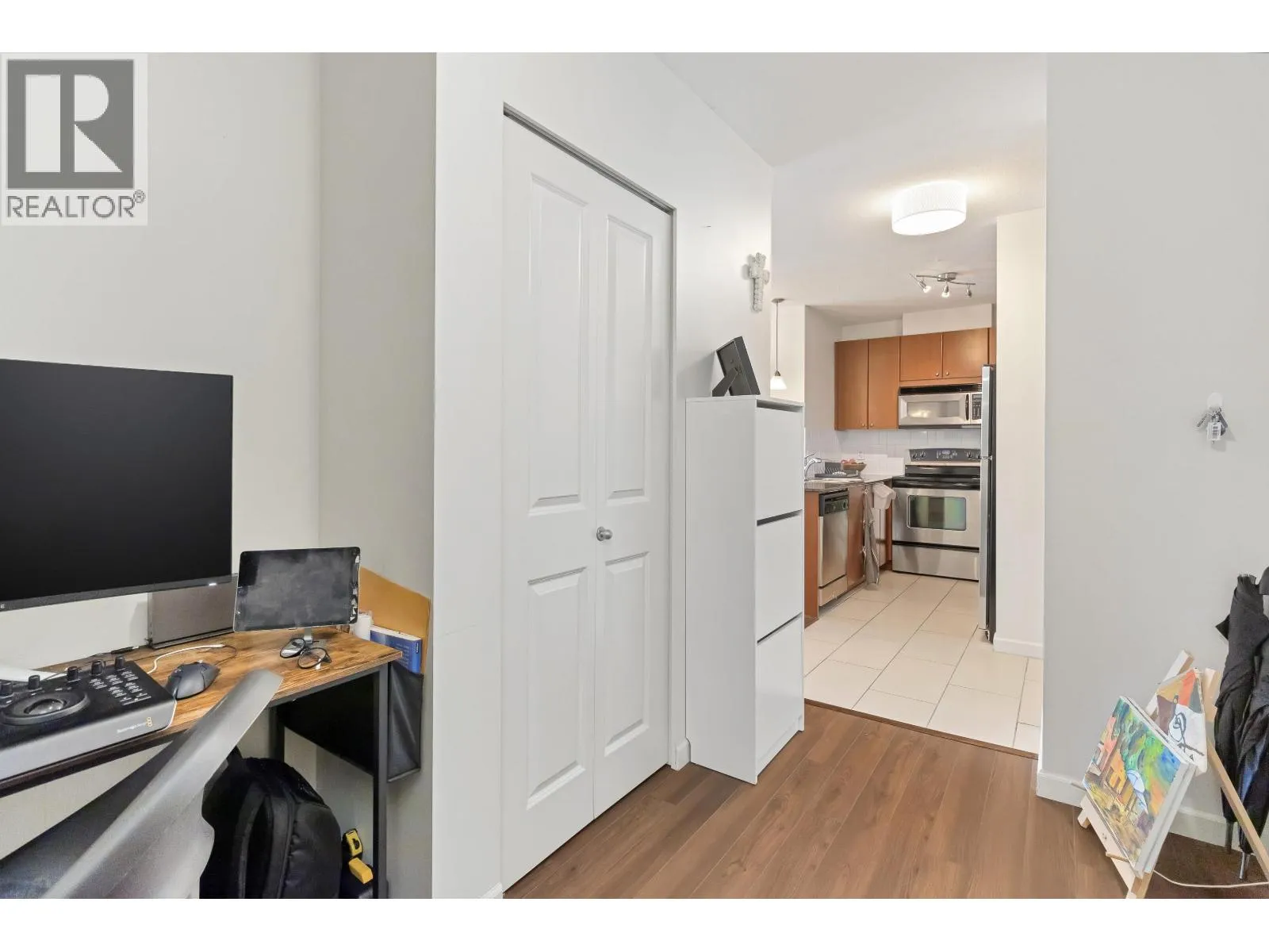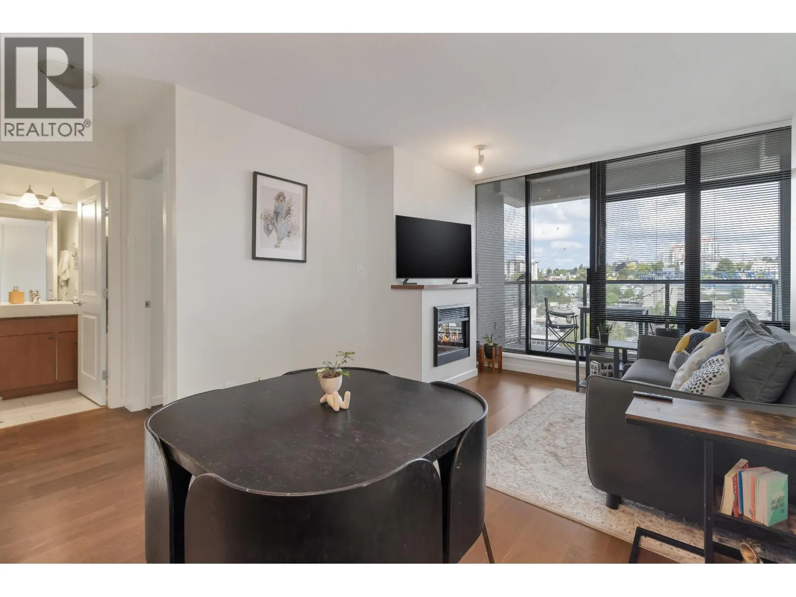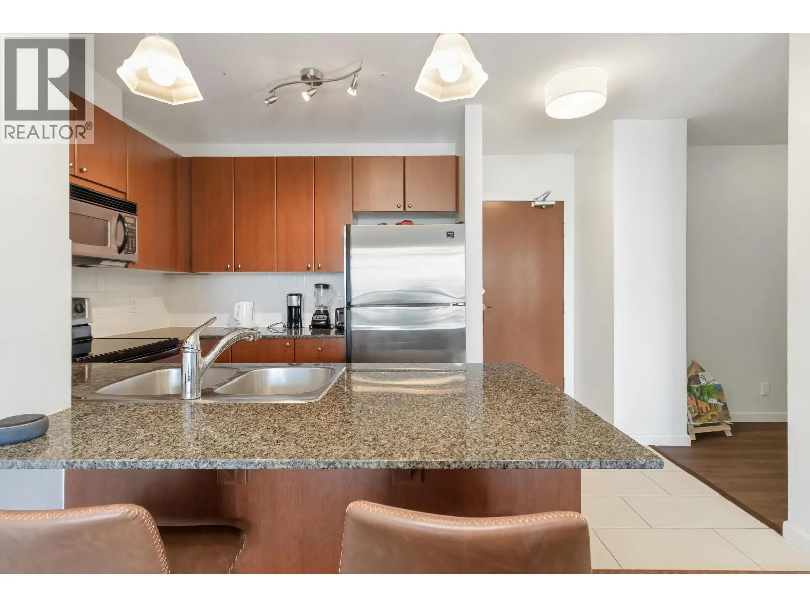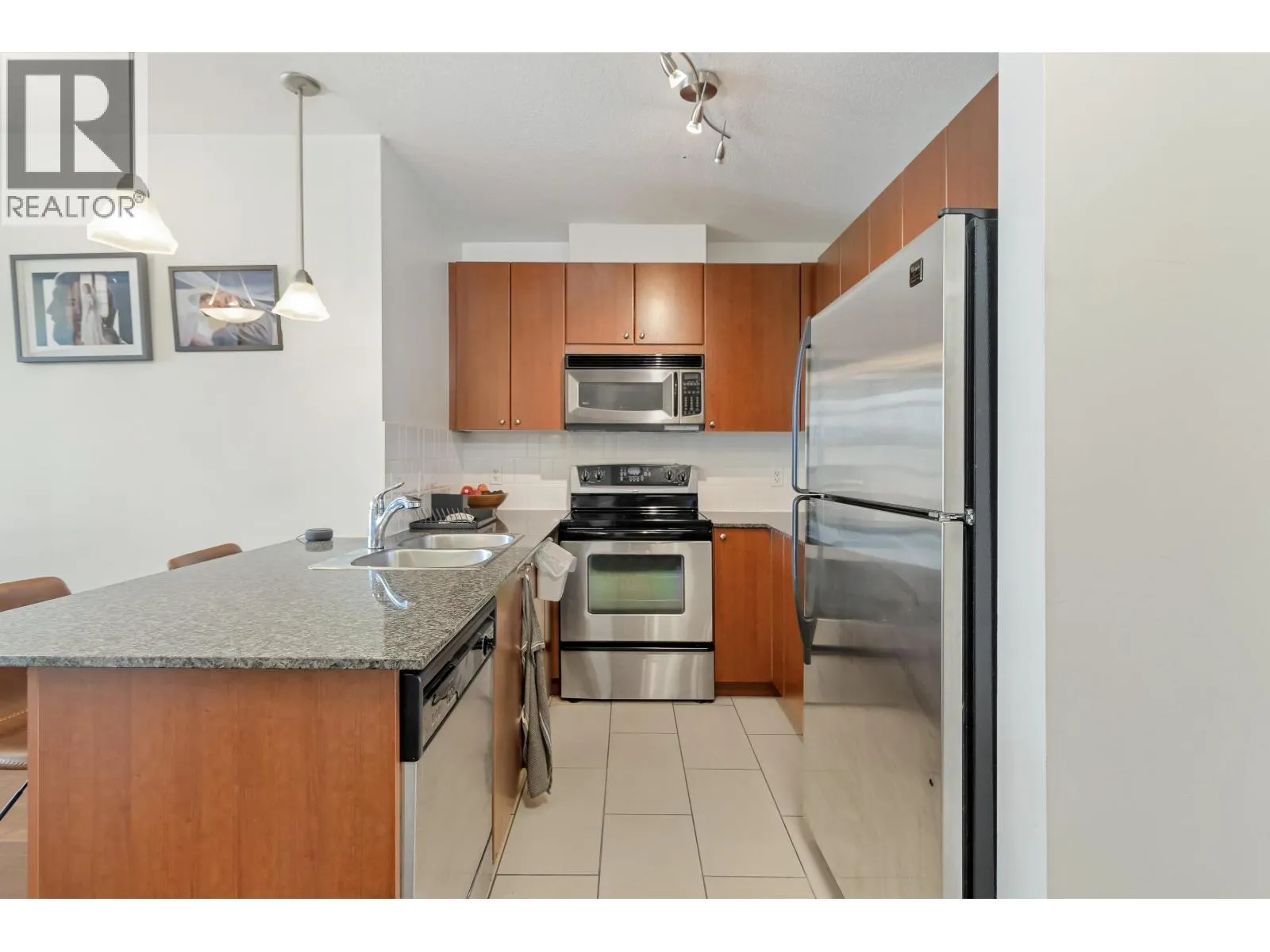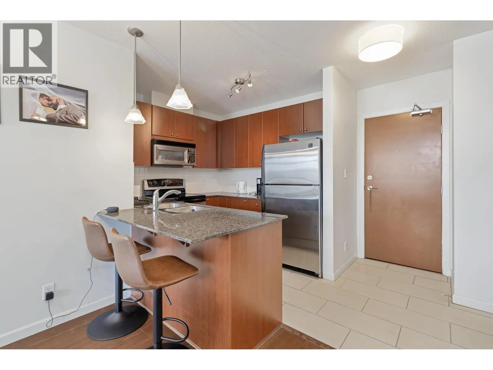 Opportunity knocks at "The Point", located in the vibrant Downtown New West! Welcome to this spacious 1 bed + den unit, featuring an ideal open concept layout, perfect for first-time buyers or savvy investors. Features include an open kitchen with granite counters, stainless steel appliances, a breakfast bar, and modern cabinetry. Relax in the deep soaker tub, laminate floors, in-suite laundry, one parking spot, and ample street parking. Building amenities include an indoor pool, hot tub, gym, media room, and lounge area. All this just steps from the SkyTrain, shops, restaurants, Pier Park, and the Quay. A smart start in a prime location! (id:27476)