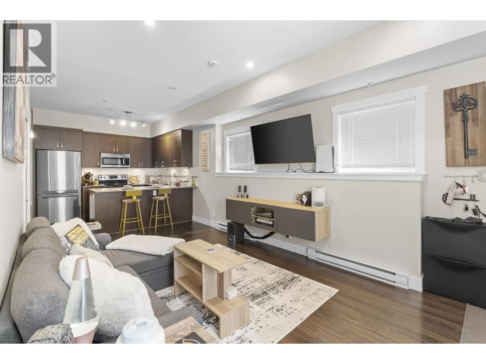 ** OPEN HOUSE SATURDAY NOV 1st 3 - 4:30pm ** Immaculate 2 Bed+ Den, 2 Bath townhome at Brickstone Walk 2 - a boutique, heritage-style community in the heart of Downtown New West. The large Den can easily serve as a 3rd bedroom or office. Enjoy open-concept living, a spacious chef's kitchen with bar, and 2 large patios overlooking a quiet, landscaped courtyard in a secure gated complex. Features: fresh paint, SS appliances, stone counters, parking, bike locker. Pets and rentals allowed. Walk to the River Market, Steel & Oak, shops, parks, schools, and more. Steps to SkyTrain - just 25 mins to Downtown Vancouver. Urban convenience at a great value! (id:27476)