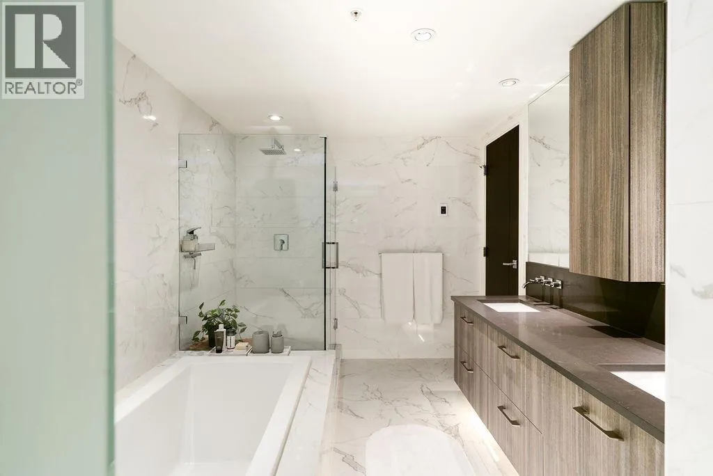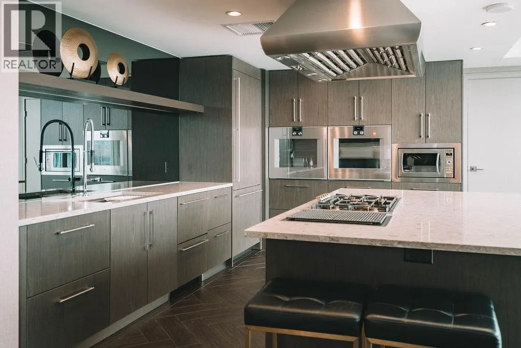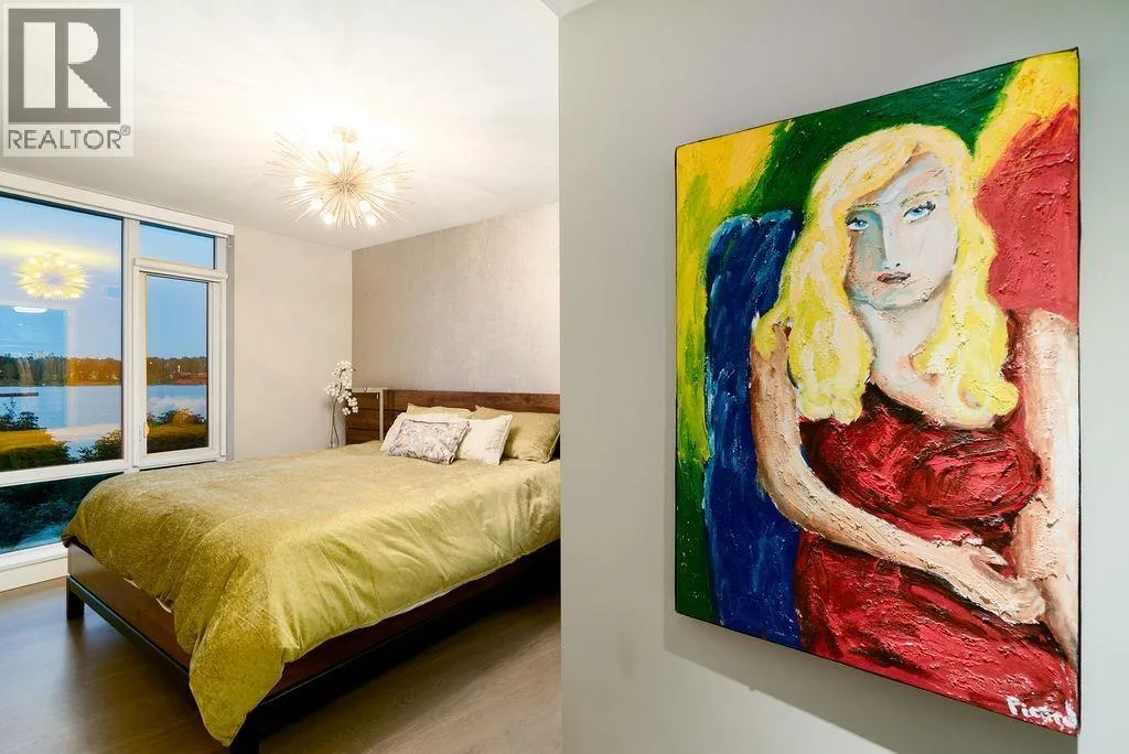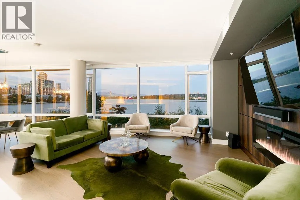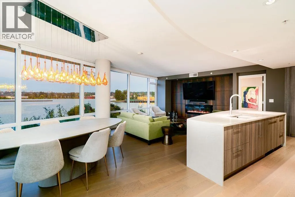 WATERFRONT HOME at one of New West's most luxurious residences, The Peninsula in Port Royal. 2 bedroom 2 bathroom corner home boasts floor to ceiling windows with expansive Fraser River sunrise and garden views from every room. In-suite storage/den, walk-in laundry room, and ample entertaining space. Open-concept chef´s kitchen with flawless quartz waterfall counters and soft-close Italian cabinetry, fully equipped with premium Gaggenau appliances. The primary bedroom offers a walk-in closet and spa-inspired ensuite with double vanities, soaker tub, separate shower and heated floors. Second bedroom with built in murphy bed! Geothermal heating and AC, engineered hardwood floors. Ideally located minutes from Hwy 91, Marine Dr, Queensborough Landing, waterfront trails, parks and transit. The best amenities in the city! 2 parking, storage locker, pets allowed, guest suite available, fitness centre, stunning party room w/fully equipped kitchen & sundeck with hot tub! Q2Q steps away! (id:27476)