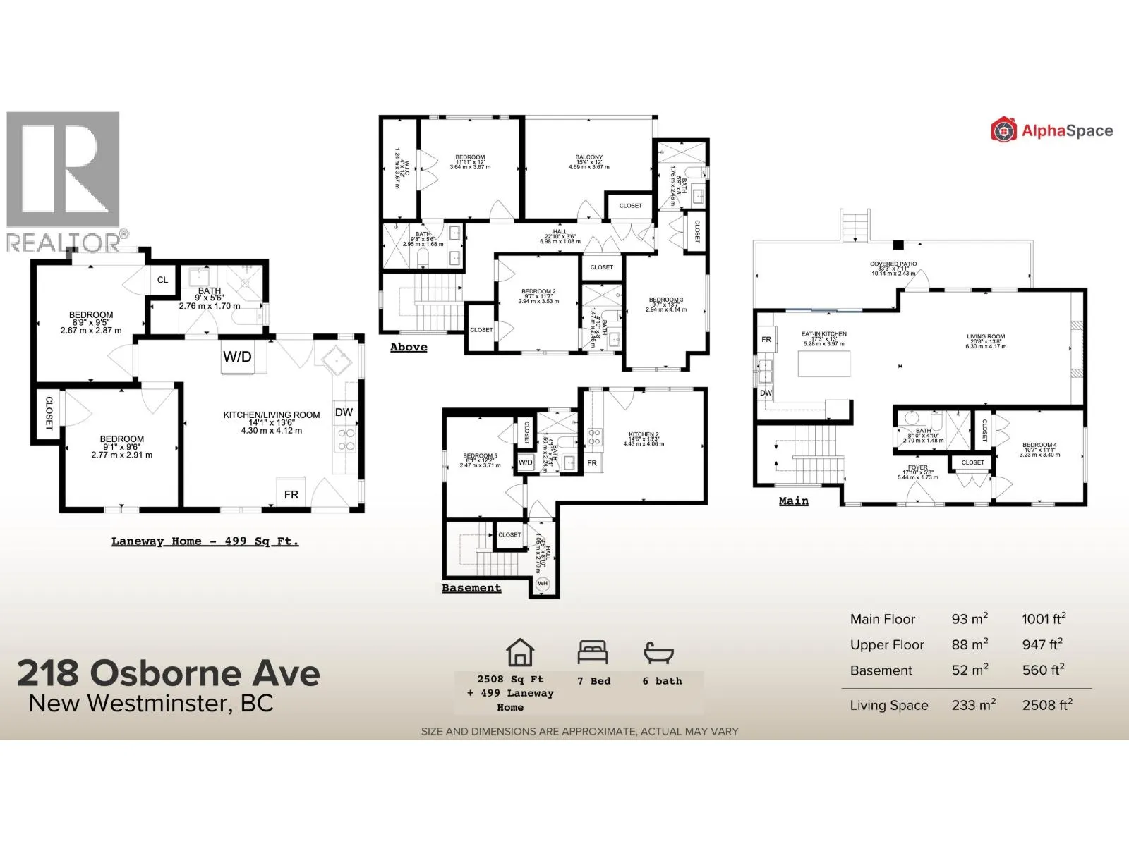 Welcome to this exceptional 7-bedroom, 6-bathroom custom-built home in New Westminster, designed for true multi-generational living. This rare opportunity includes a fully self-contained 2-bedroom, 1-bath laneway house & 1-bedroom legal suite, essentially two homes on one lot. Situated on a quiet cherry tree-lined street with ample parking, the home features high-end finishings throughout, radiant in-floor heating, central A/C, and top-of-the-line appliances. Located in a prime, walkable neighbourhood close to top-ranked schools, recreation, and transit. Whether you're accommodating extended family or looking for great rental potential, this home offers unmatched flexibility. Includes 2-5-10 year warranty. (id:27476)