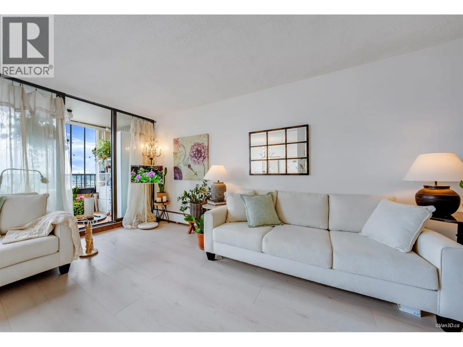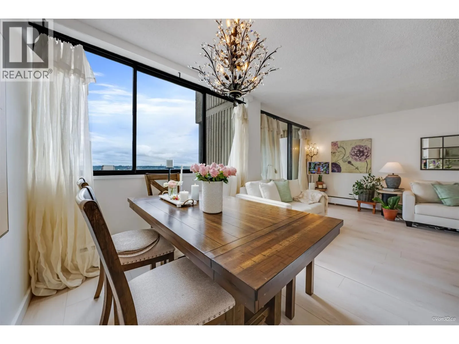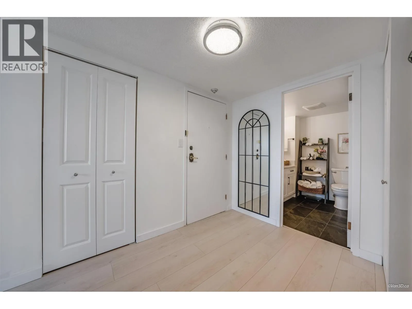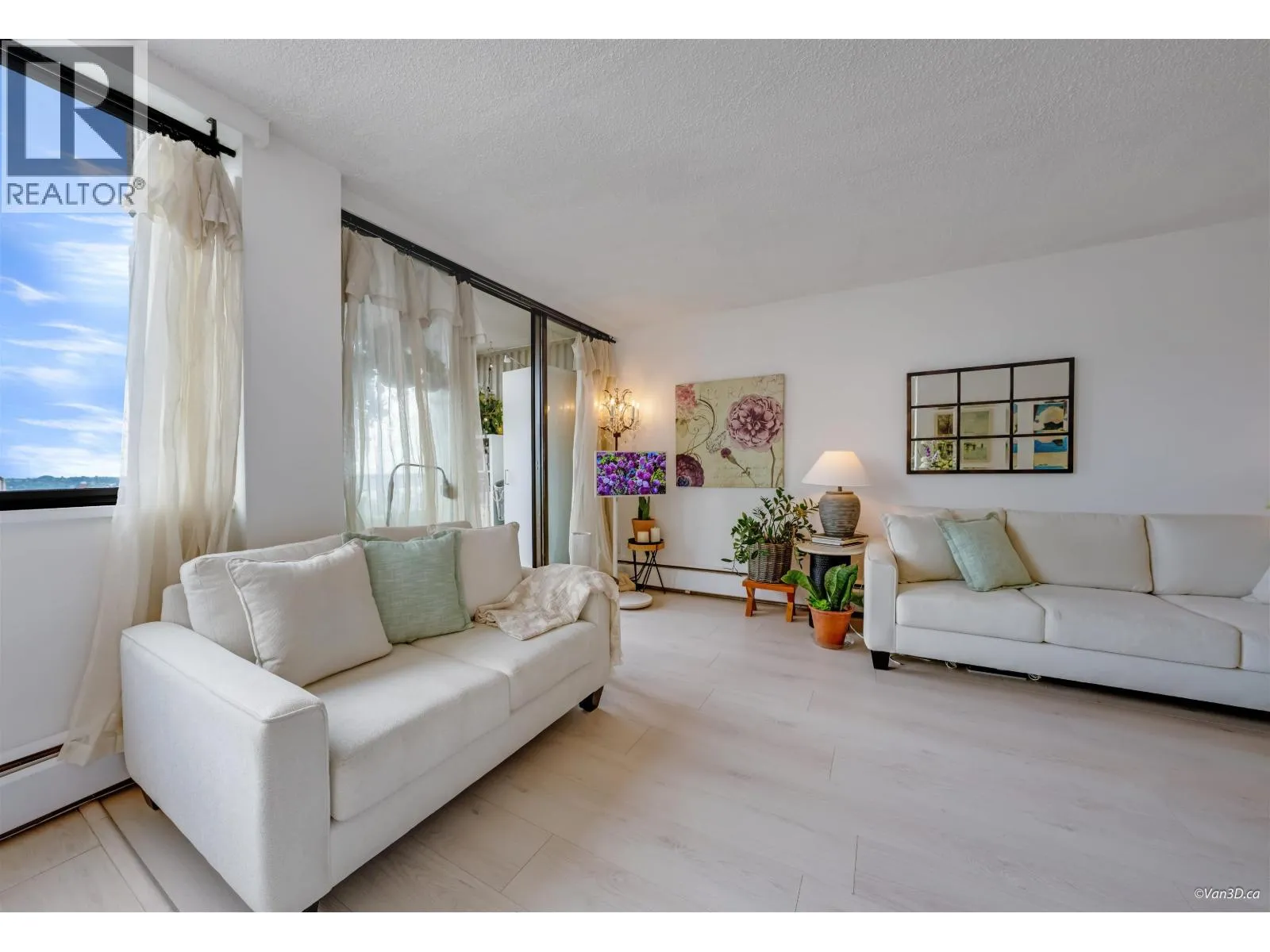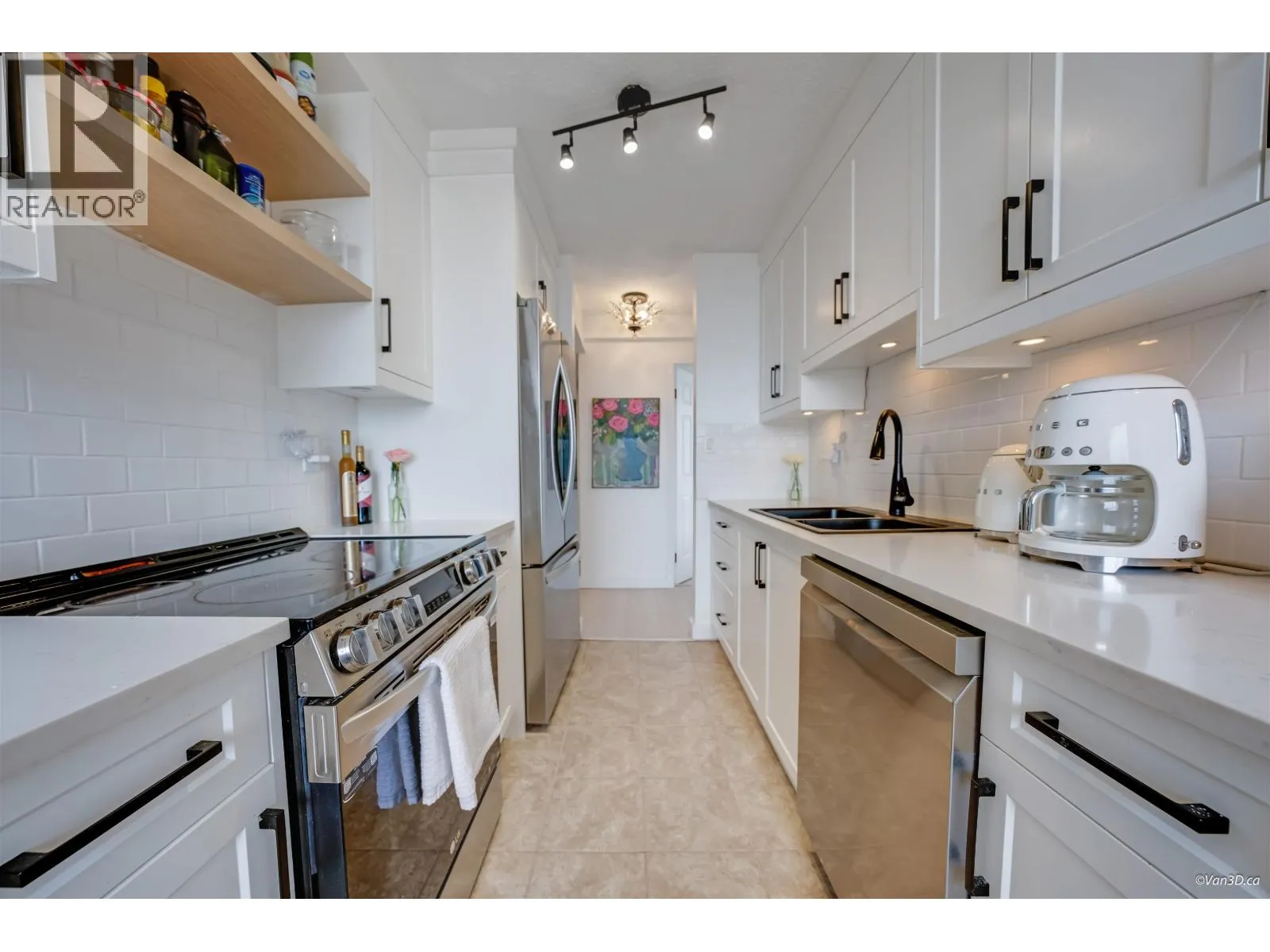 The New Westminster penthouse you have been waiting for! Over 900 SF of immaculate living space when including then enclosed balcony. Bright Southeast-facing top-floor corner unit in vibrant Uptown. Fully renovated with new kitchen, bathroom, floors, paint, quartz countertops, and complete with new stainless steel appliances. Spacious open-concept layout with large windows, abundant natural light and sweeping views. 2 generous bedrooms. Walk to Royal City Centre, Moody Park, groceries, restaurants. School catchment: Lord Kelvin Elementary and New Westminster Secondary. Owner-occupied. Quick possession possible. Includes 1 gated parking and 1 storage locker. Rentals allowed. Pets not permitted. Maintenance fees include heat and hot water. (id:27476)