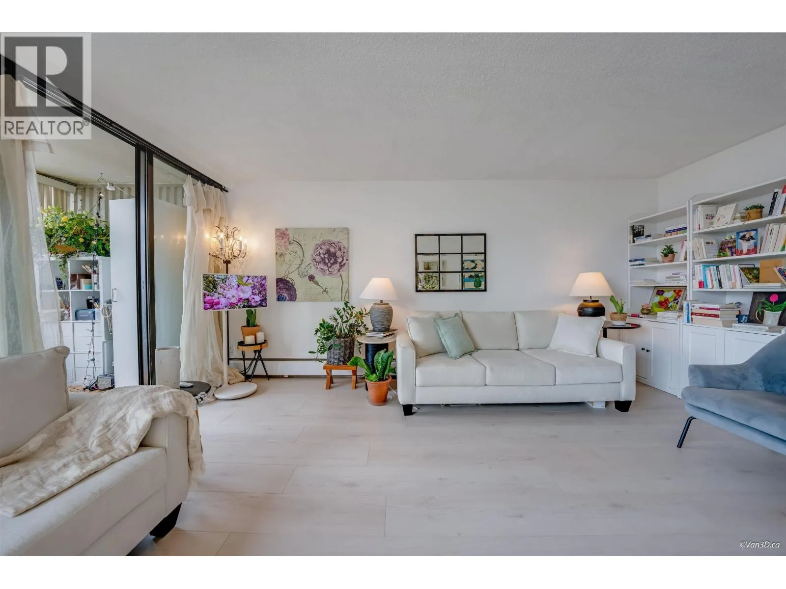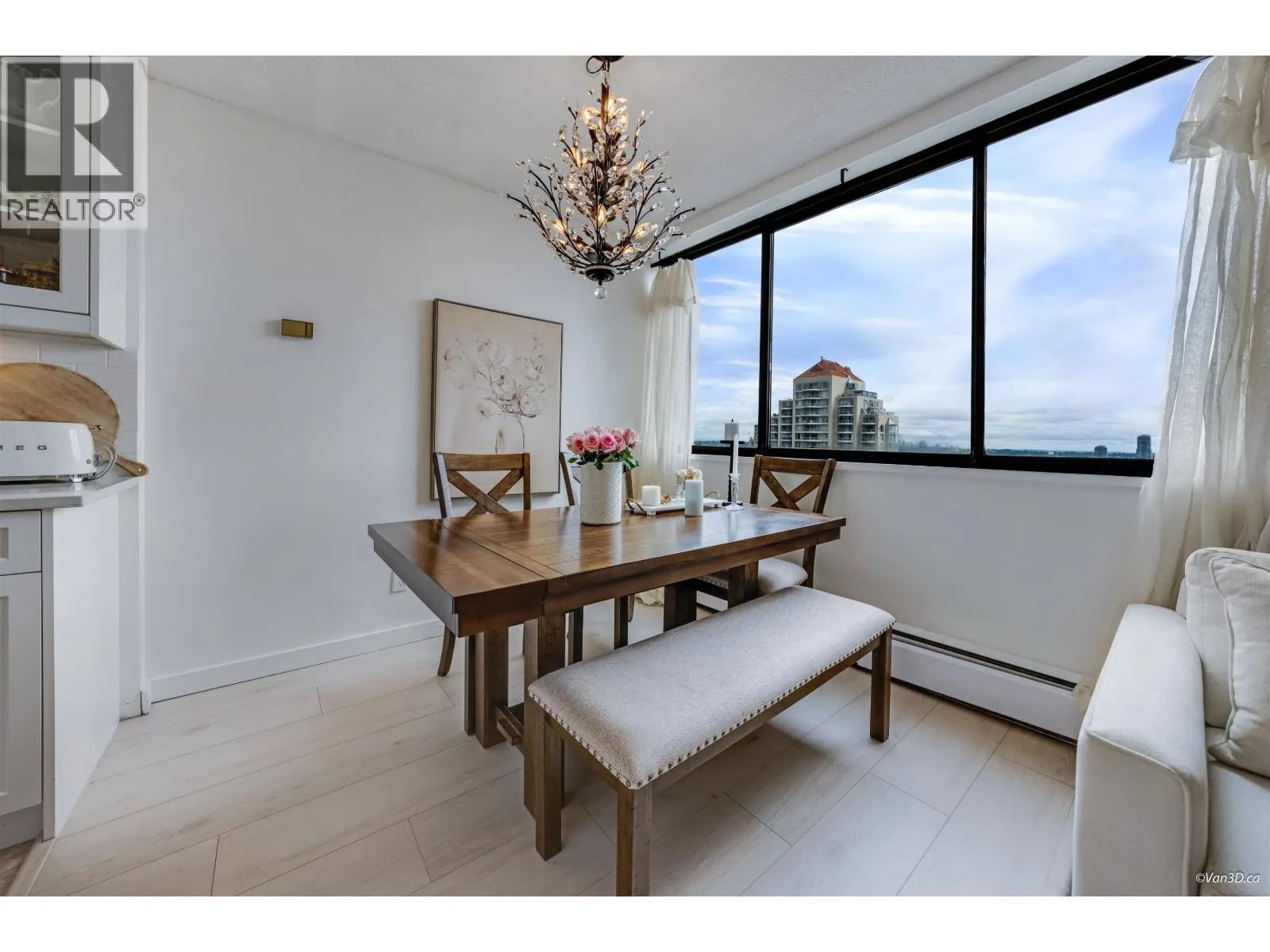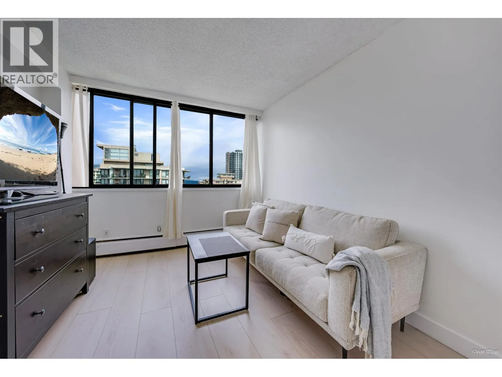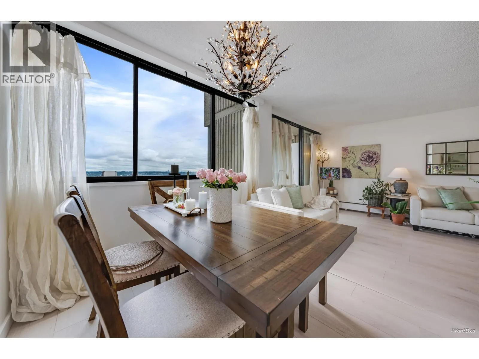 The New Westminster penthouse you have been waiting for! Over 900 SF of immaculate living space when including then enclosed balcony. Bright Southeast-facing top-floor corner unit in vibrant Uptown. Fully renovated with new kitchen, bathroom, floors, paint, quartz countertops, and complete with new stainless steel appliances. Spacious open-concept layout with large windows, abundant natural light and sweeping views. 2 generous bedrooms. Walk to Royal City Centre, Moody Park, groceries, restaurants. School catchment: Lord Kelvin Elementary and New Westminster Secondary. Owner-occupied. Quick possession possible. Includes 1 gated parking and 1 storage locker. Rentals allowed. Pets not permitted. Maintenance fees include heat and hot water. (id:27476)