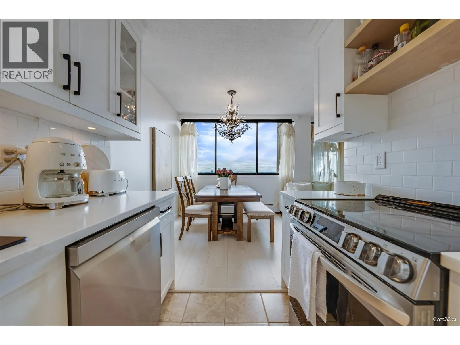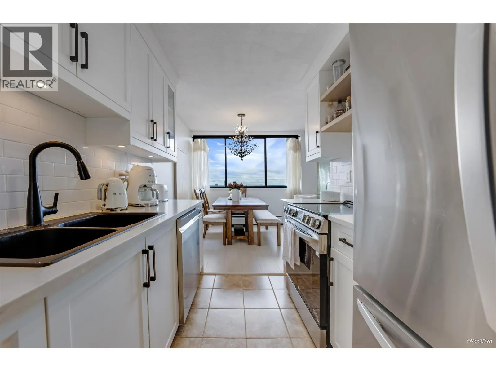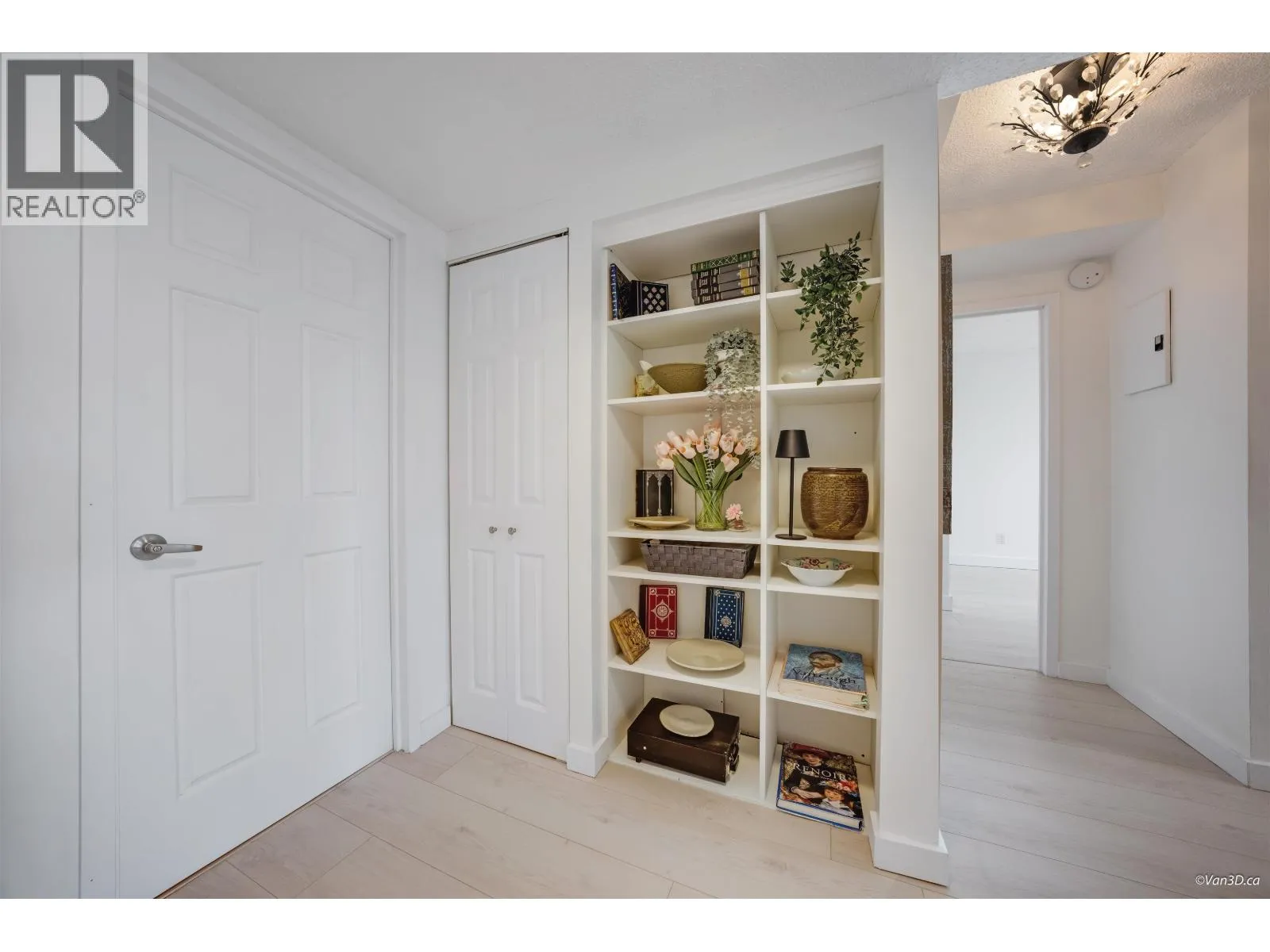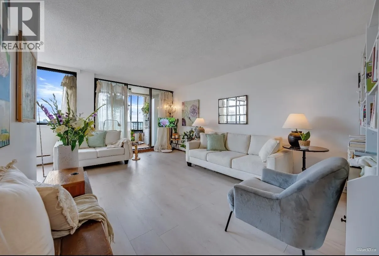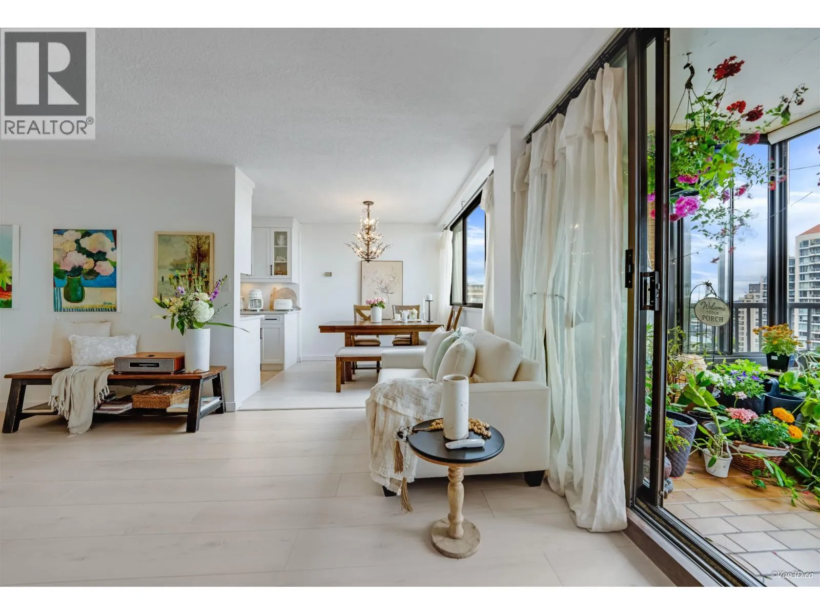 The New Westminster penthouse you have been waiting for! Over 900 SF of immaculate living space when including then enclosed balcony. Bright Southeast-facing top-floor corner unit in vibrant Uptown. Fully renovated with new kitchen, bathroom, floors, paint, quartz countertops, and complete with new stainless steel appliances. Spacious open-concept layout with large windows, abundant natural light and sweeping views. 2 generous bedrooms. Walk to Royal City Centre, Moody Park, groceries, restaurants. School catchment: Lord Kelvin Elementary and New Westminster Secondary. Owner-occupied. Quick possession possible. Includes 1 gated parking and 1 storage locker. Rentals allowed. Pets not permitted. Maintenance fees include heat and hot water. (id:27476)