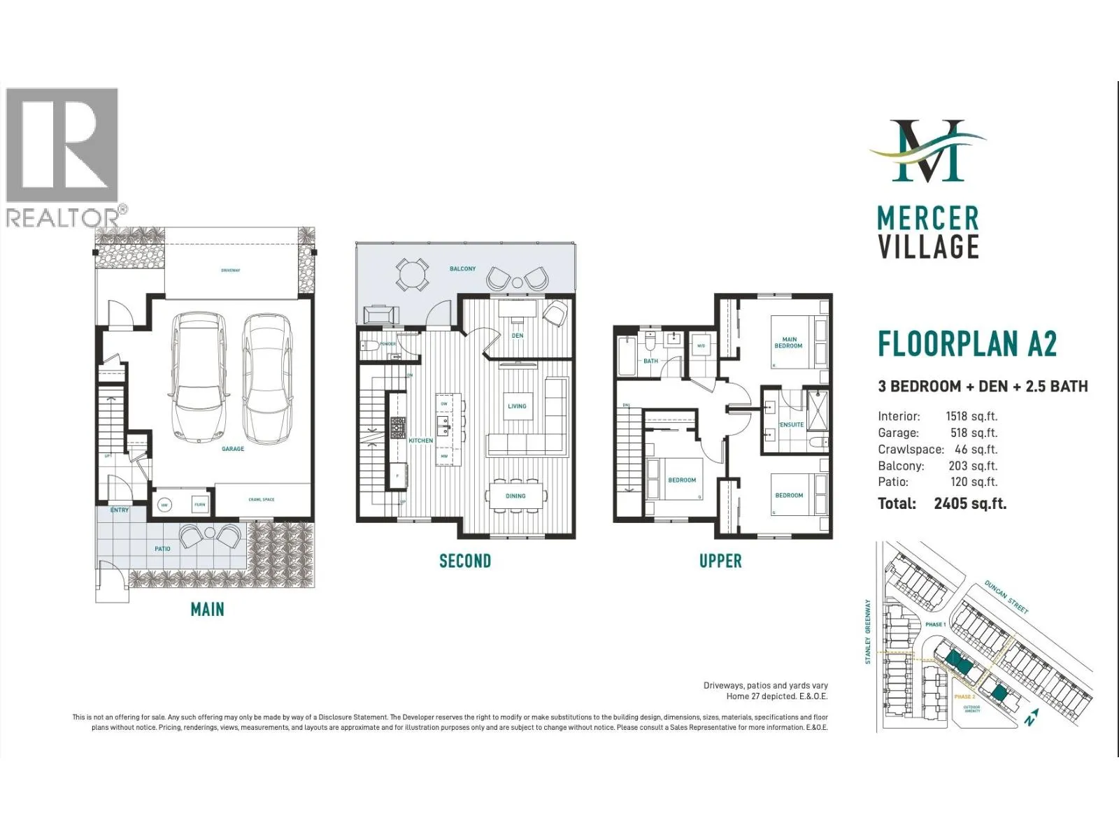 Welcome to Mercer Village, New Westminster's most anticipated master-planned community. This 3 Bed + Den home backs onto our park amenity space & is designed for functionality & family-living. Features incl: central A/C (furnace heating), main floor powder bath, large balcony off kitchen with BBQ outlet, dbl 2-car garage (side-by-side) with lvl 2 EV outlet, 9' ceilings with pot lights, luxury vinyl plank flooring & large island for entertaining. Full-size 36" fridge with 5-burner gas stove, wall oven & 3-rack dishwasher. Upstairs offers 3 bedrooms & 2 spa-inspired baths with floating vanities & terrazzo tile. Central A/C incl + 10% deposits for a limited time. Low strata fees + pet friendly. Est. completion Oct 2025. Contact Presentation Centre to book your tour. (id:27476)