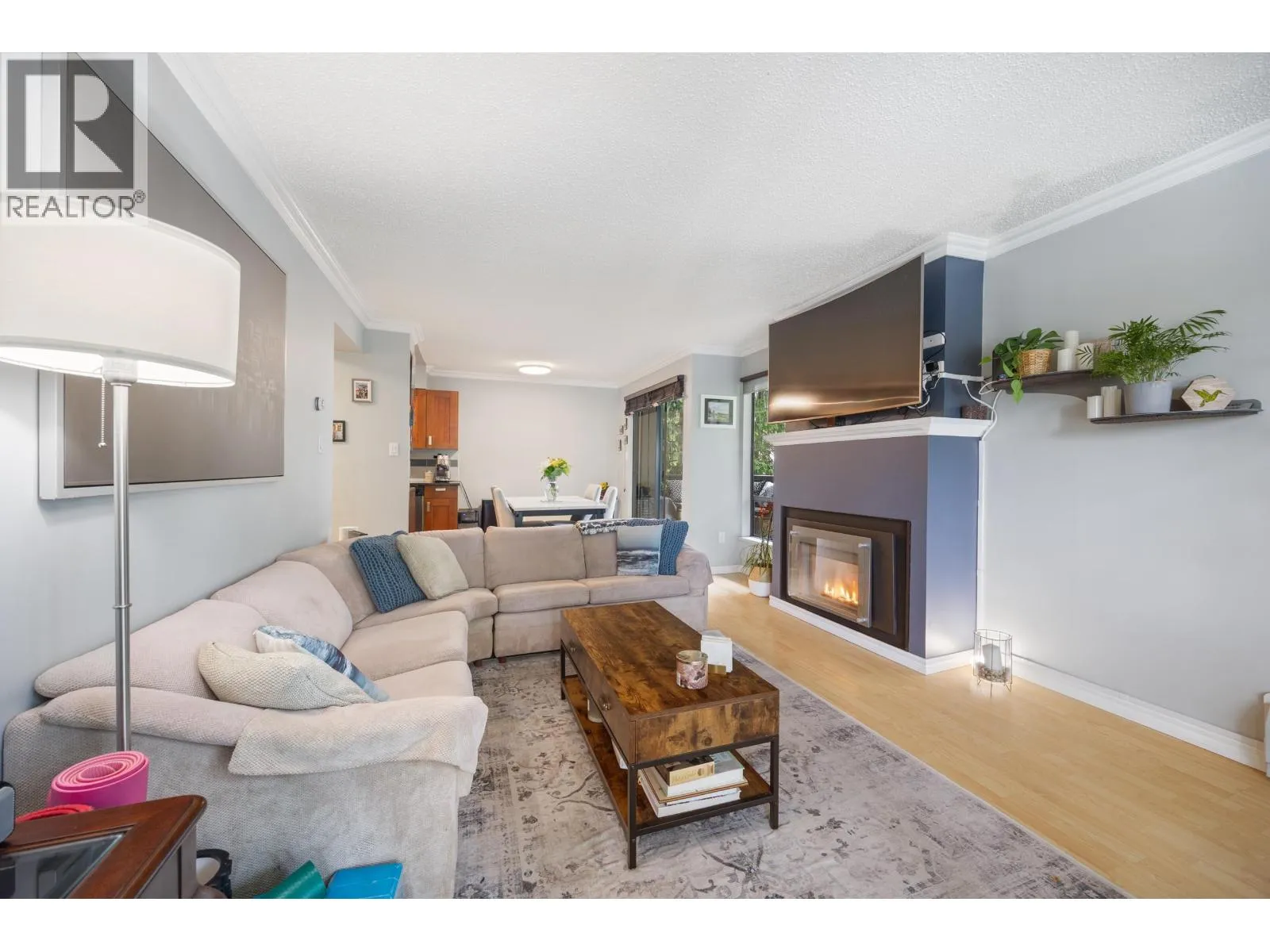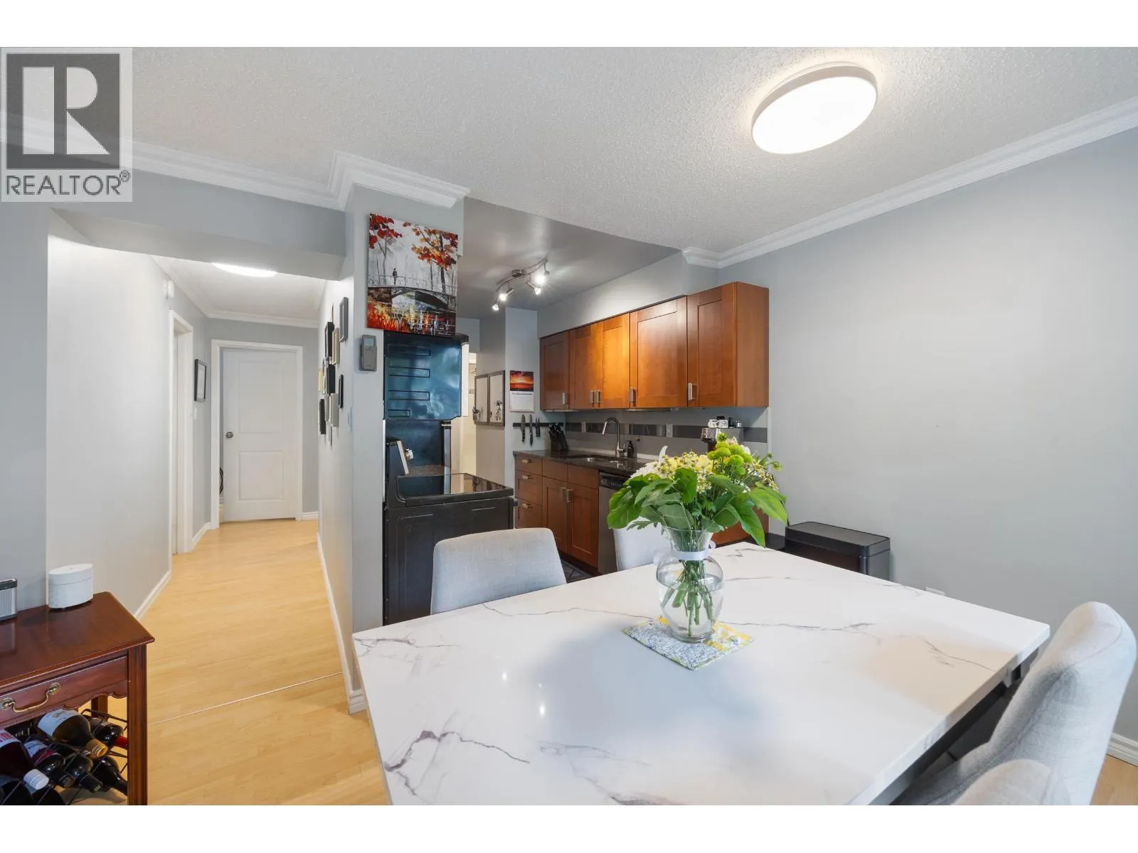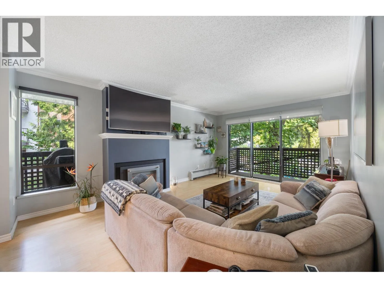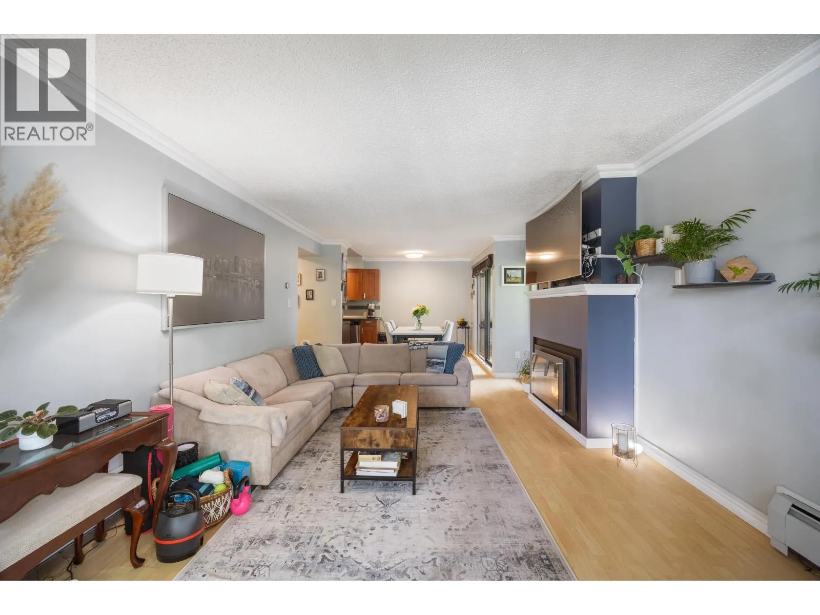2-Bedroom Corner Unit - 905 sq ft. 8ft Ceilings. Updated bright corner suite with in-suite laundry! Enjoy a modern kitchen with updated appliances, a renovated bathroom featuring a custom glass rain shower, laminate flooring, crown mouldings, cozy gas fireplace. Two balconies offer great outdoor space: 31´6" x 3´11" and 11´8" x 5´10", complete with a custom storage bench. Recent building updates include plumbing (2007), roof (2008), and balconies (East 2023, North 2024). Maintenance fees cover heat, hot water, gas & water. Includes 1 parking stall and storage. Pets welcome! Conveniently located 10-min walk to SkyTrain, near bus transit, New Westminster Quay, Royal City Centre, Queenspark, Douglas College, and close to highways. Perfect for first-time buyers, downsizers, or investors. (id:27476)