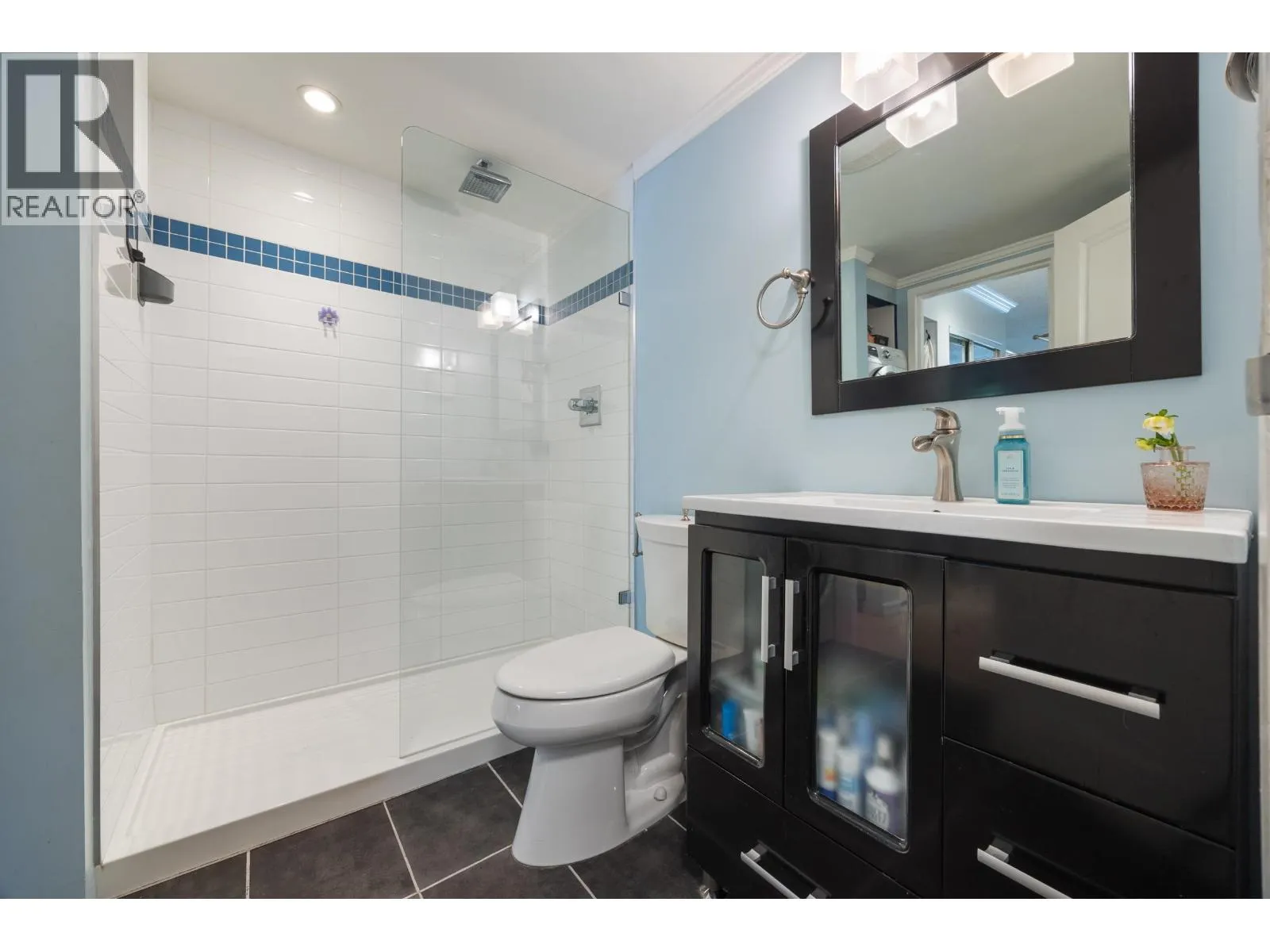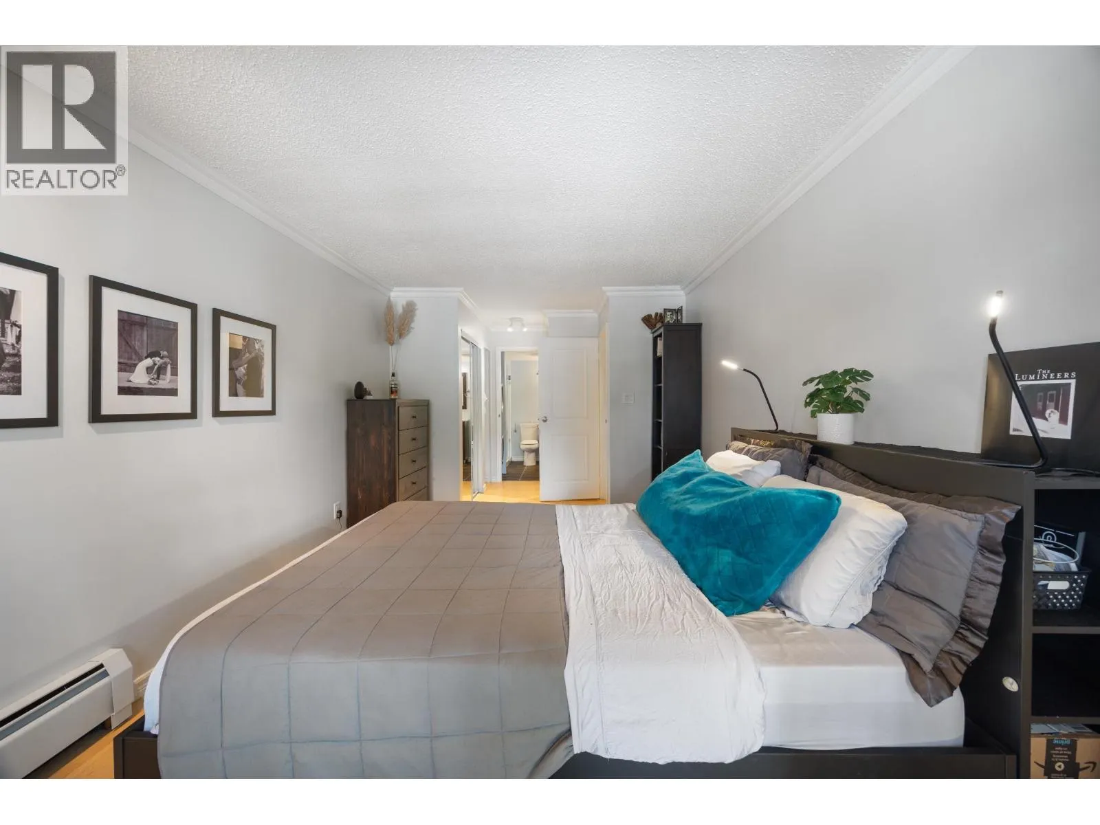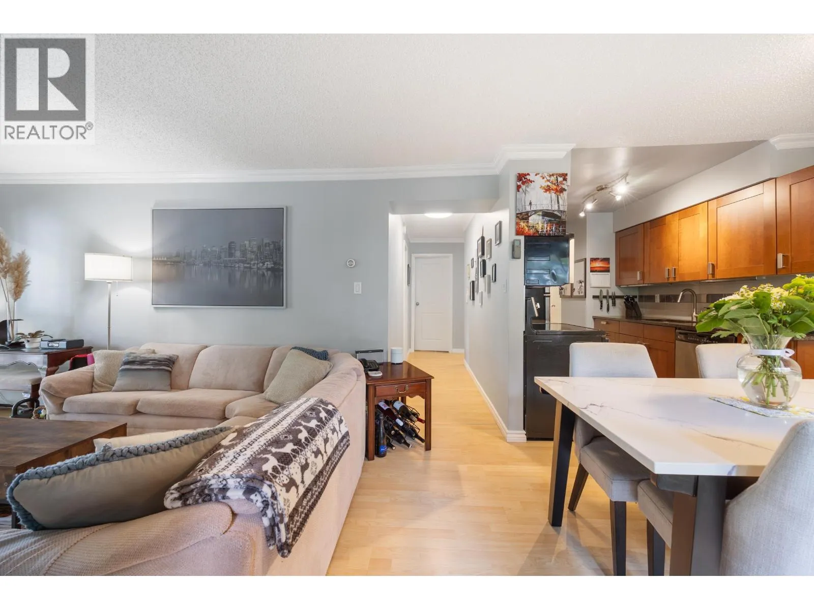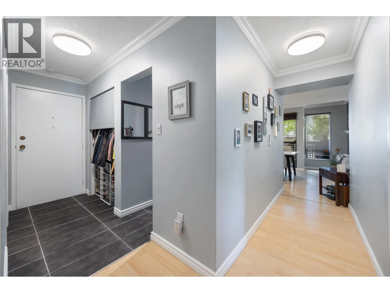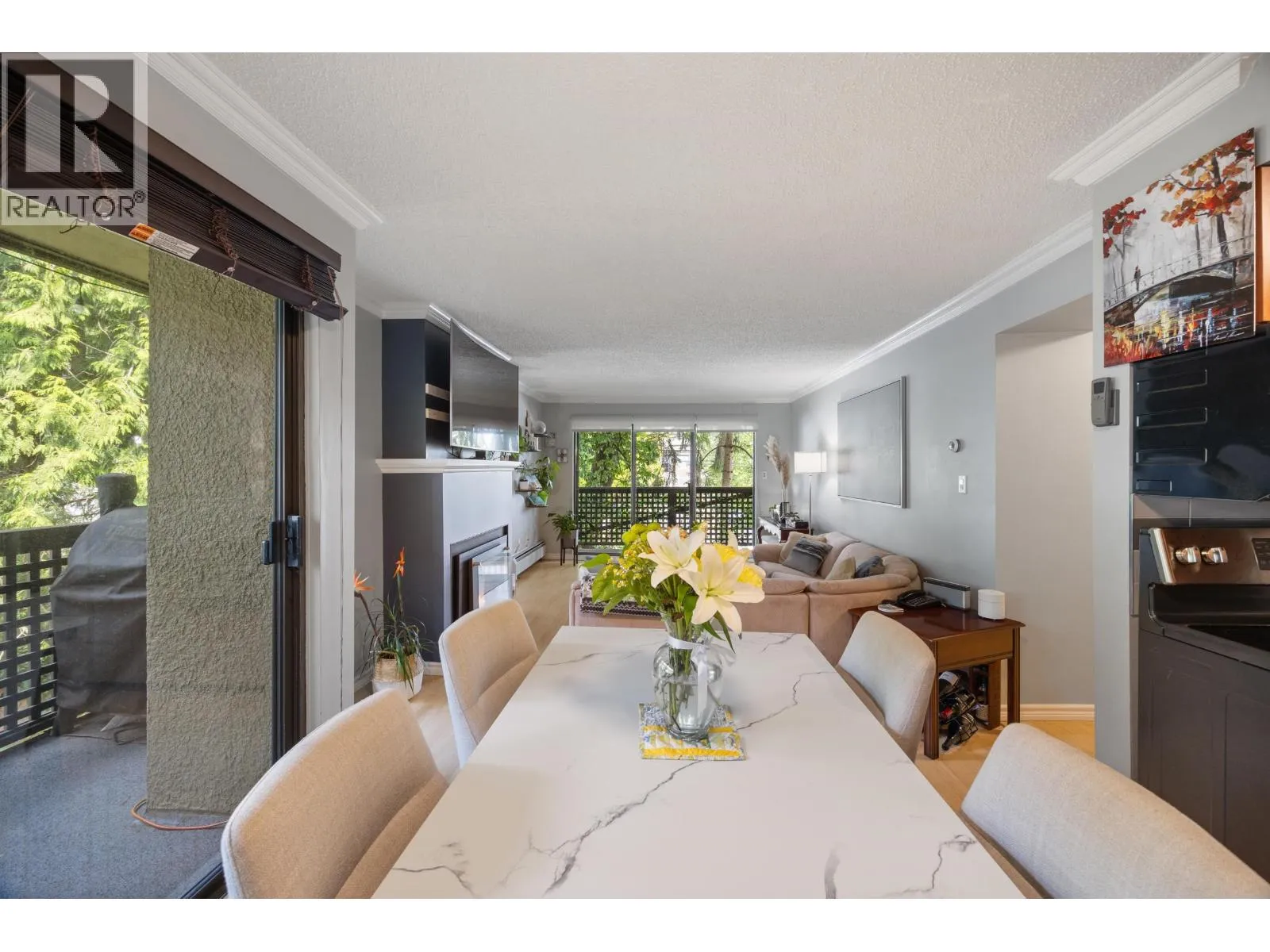 2-Bedroom Corner Unit - 905 sq ft. 8ft Ceilings. Updated bright corner suite with in-suite laundry! Enjoy a modern kitchen with updated appliances, a renovated bathroom featuring a custom glass rain shower, laminate flooring, crown mouldings, cozy gas fireplace. Two balconies offer great outdoor space: 31´6" x 3´11" and 11´8" x 5´10", complete with a custom storage bench. Recent building updates include plumbing (2007), roof (2008), and balconies (East 2023, North 2024). Maintenance fees cover heat, hot water, gas & water. Includes 1 parking stall and storage. Pets welcome! Conveniently located 10-min walk to SkyTrain, near bus transit, New Westminster Quay, Royal City Centre, Queenspark, Douglas College, and close to highways. Perfect for first-time buyers, downsizers, or investors. (id:27476)