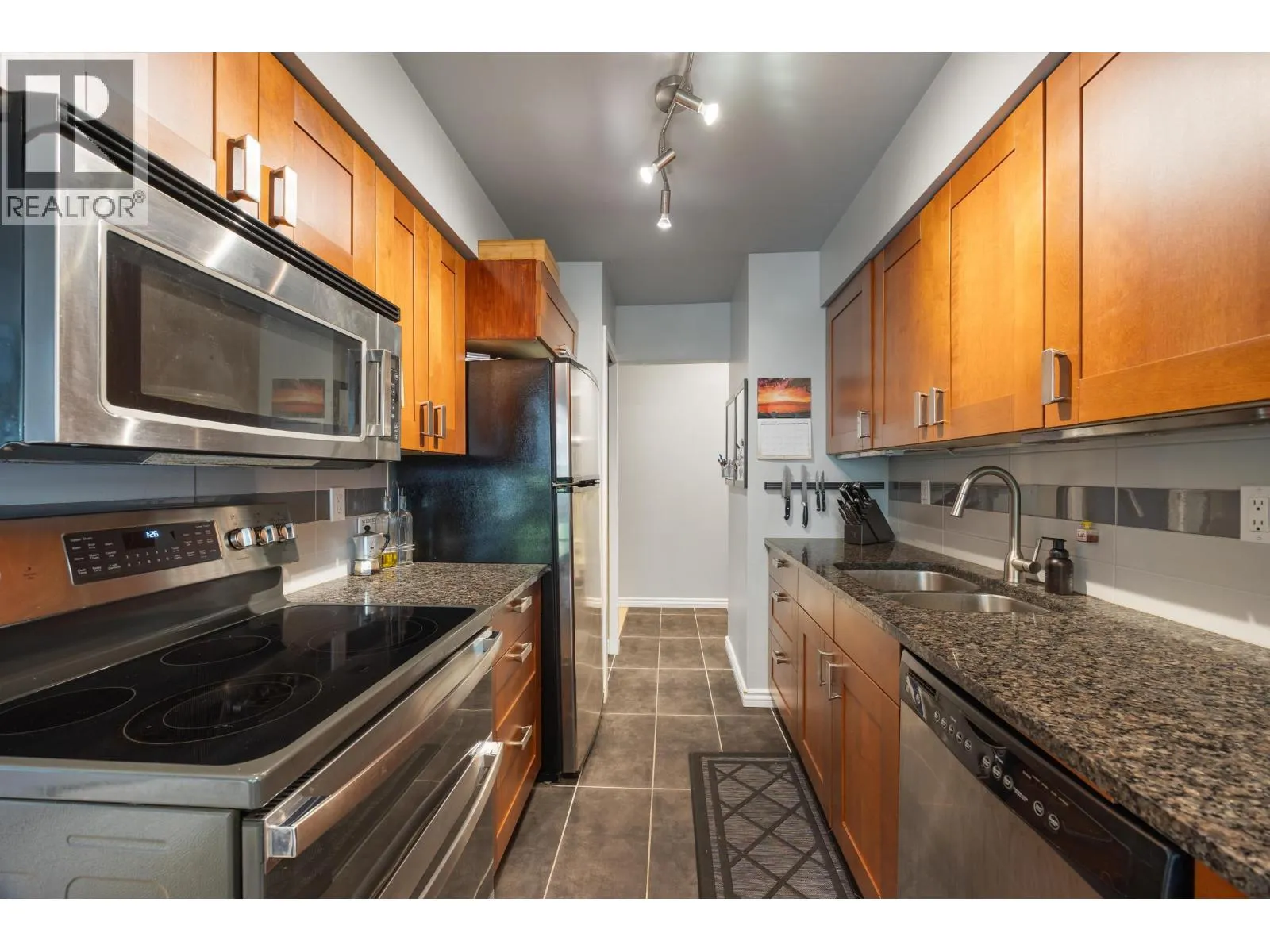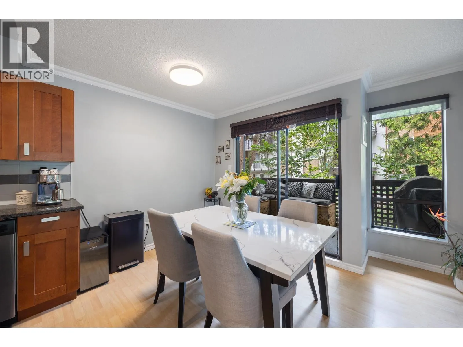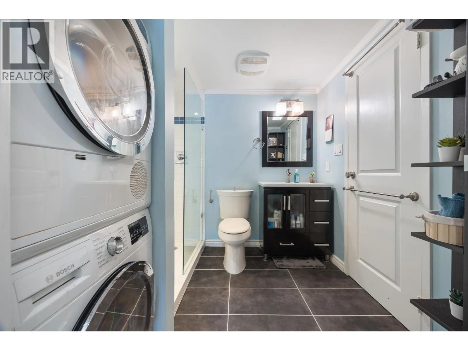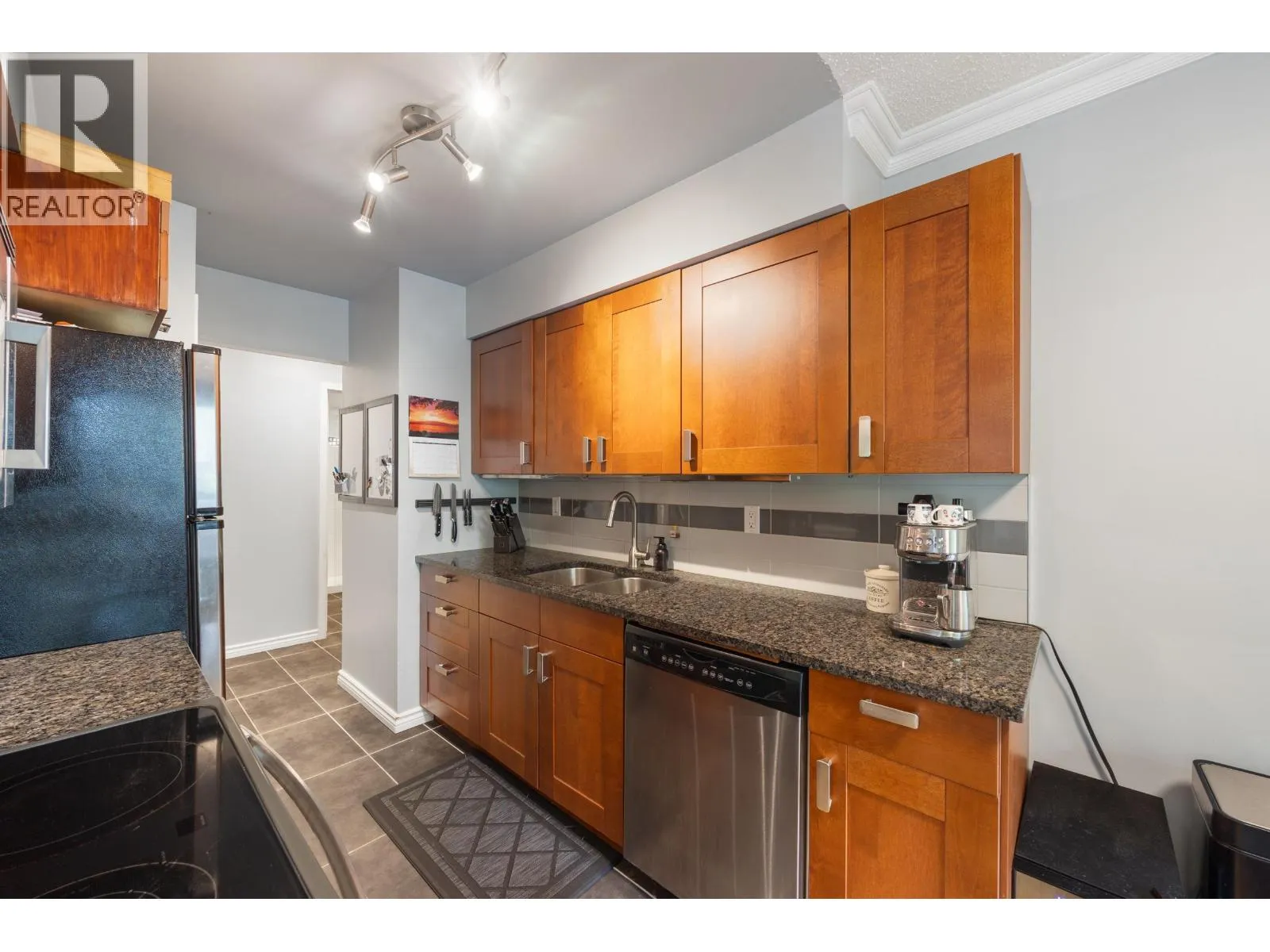 2-Bedroom Corner Unit - 905 sq ft. 8ft Ceilings. Updated bright corner suite with in-suite laundry! Enjoy a modern kitchen with updated appliances, a renovated bathroom featuring a custom glass rain shower, laminate flooring, crown mouldings, cozy gas fireplace. Two balconies offer great outdoor space: 31´6" x 3´11" and 11´8" x 5´10", complete with a custom storage bench. Recent building updates include plumbing (2007), roof (2008), and balconies (East 2023, North 2024). Maintenance fees cover heat, hot water, gas & water. Includes 1 parking stall and storage. Pets welcome! Conveniently located 10-min walk to SkyTrain, near bus transit, New Westminster Quay, Royal City Centre, Queenspark, Douglas College, and close to highways. Perfect for first-time buyers, downsizers, or investors. (id:27476)