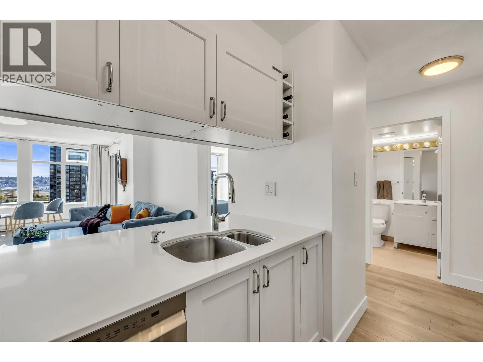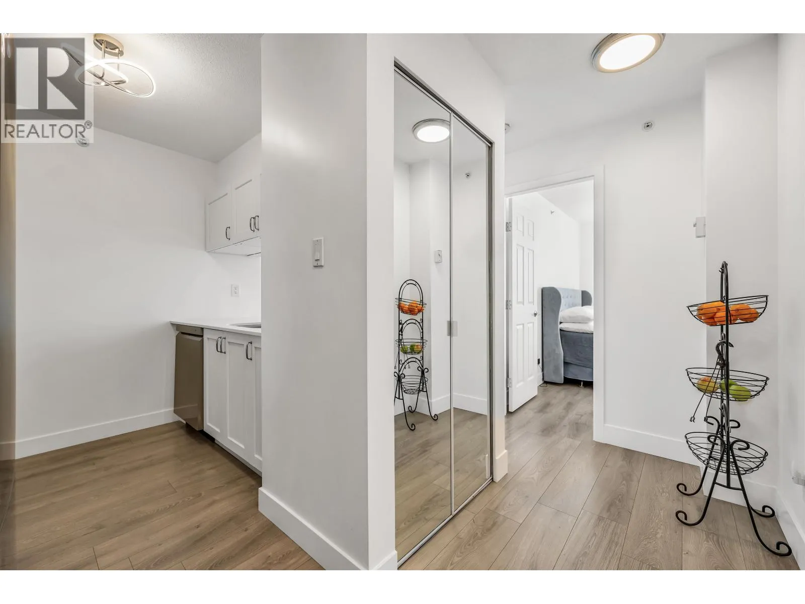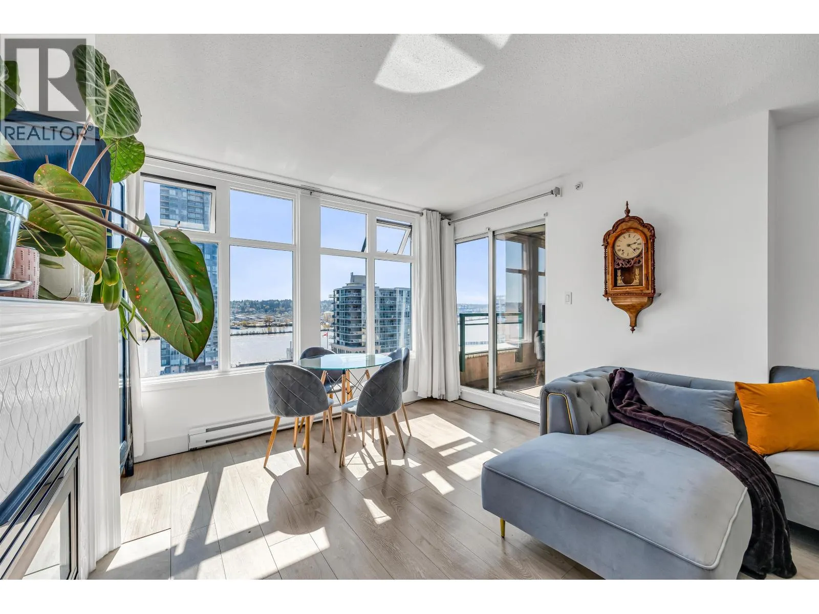 Welcome to Carnarvon Towers, a proactive well run strata in the heart of DT New West! Outstanding location with a 99 walking score. Literally steps to The Quay, Landmark Cinemas, Skytrain, Douglas College, Save On and an eclectic array of shops and eateries right at your doorstep. The home itself offers large windows to take advantage of the BREATHTAKING VIEW OF THE FRASER RIVER and has been FULLY RENOVATED from top to bottom including complete paint, white shaker cabinets, quartz counters with overhang for stools, SS appliances, new bathroom, wide plank high-end laminate flooring and a built-in Murphy bed for visitors. Truly nothing to do but move in and enjoy! Book your private viewing today! (id:27476)