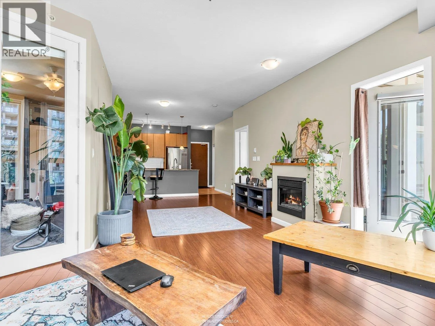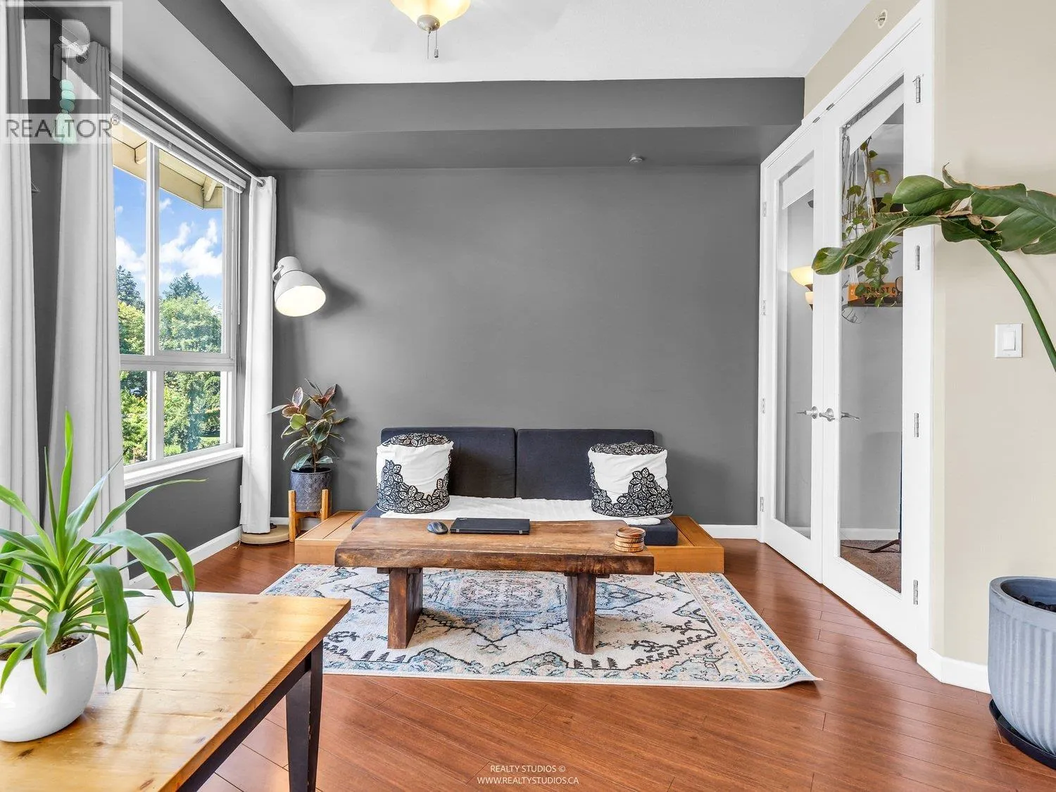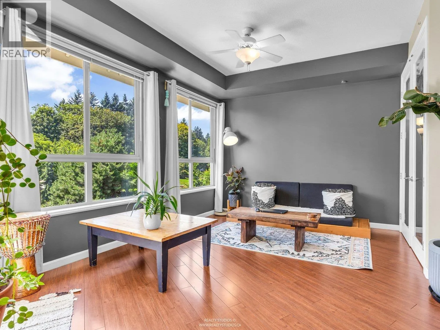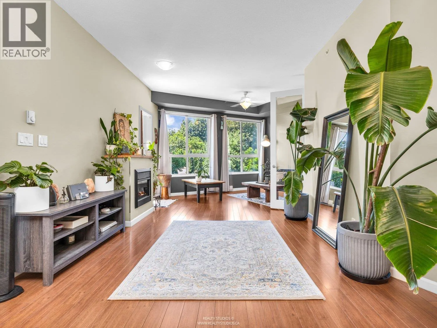Remarkable 2 bedroom, 2 bathroom suite in "The Grove", a luxurious lowrise in Onni's lush, park-like Victoria Hill community. This stunning top floor suite features a unique open concept floorplan with 9' ceilings, wide plank laminate floors + berber carpets in bedrms, elec. fireplace, lrg balcony, large LR + DR complete w offset corner den, & amazing entertainment size kitchen w granite counters, breakfast bar, SS KitchenAid appliances, and over-height cabinets. Relax in the spacious master w walk-in closet or the fantastic 2nd bedroom w beautiful French doors. Frontload washer/dryer, 1 parking, amazing amenities: lounge w kitchen, games area, media room, gym, outdoor basketball court. (id:27476)