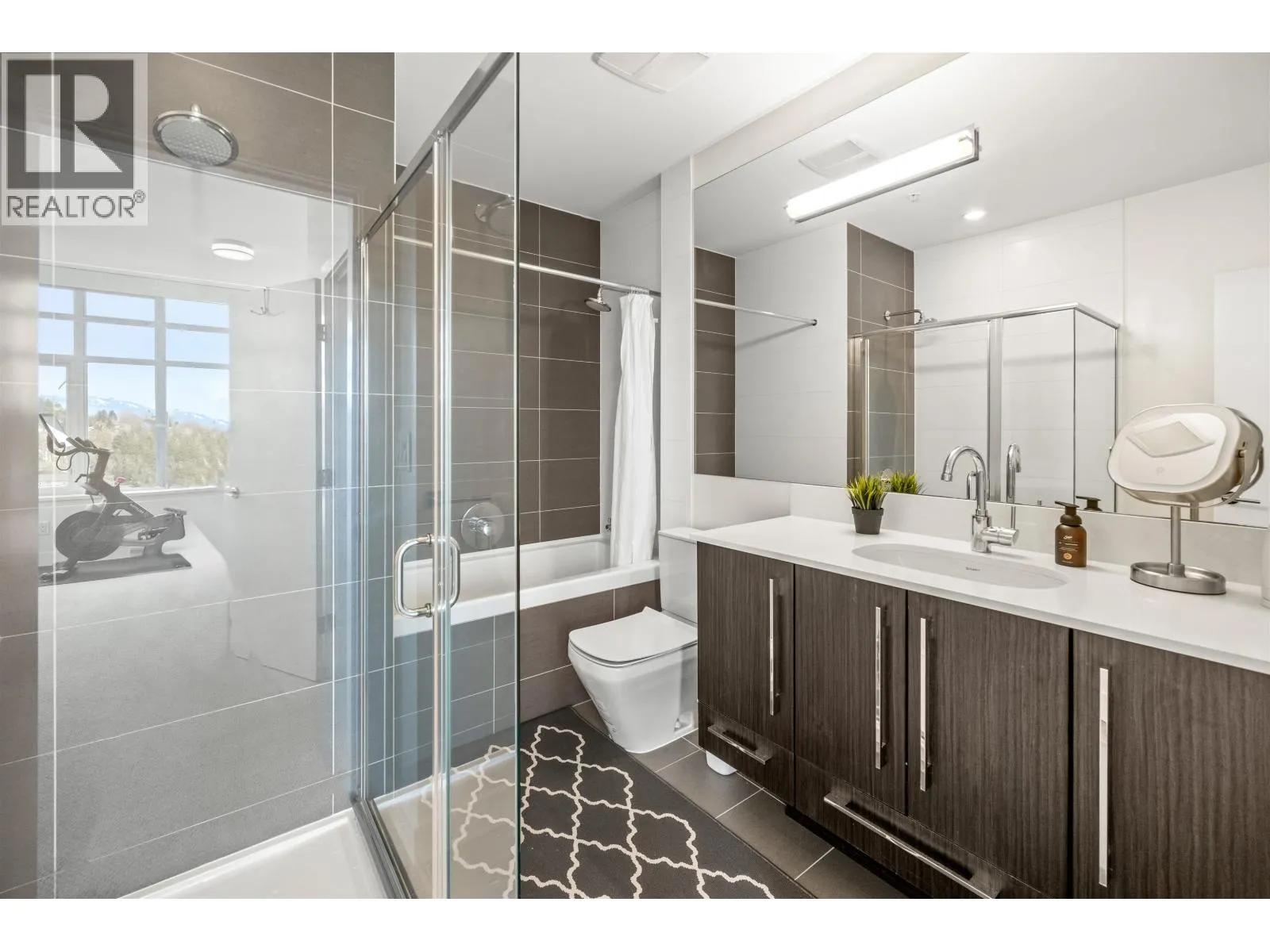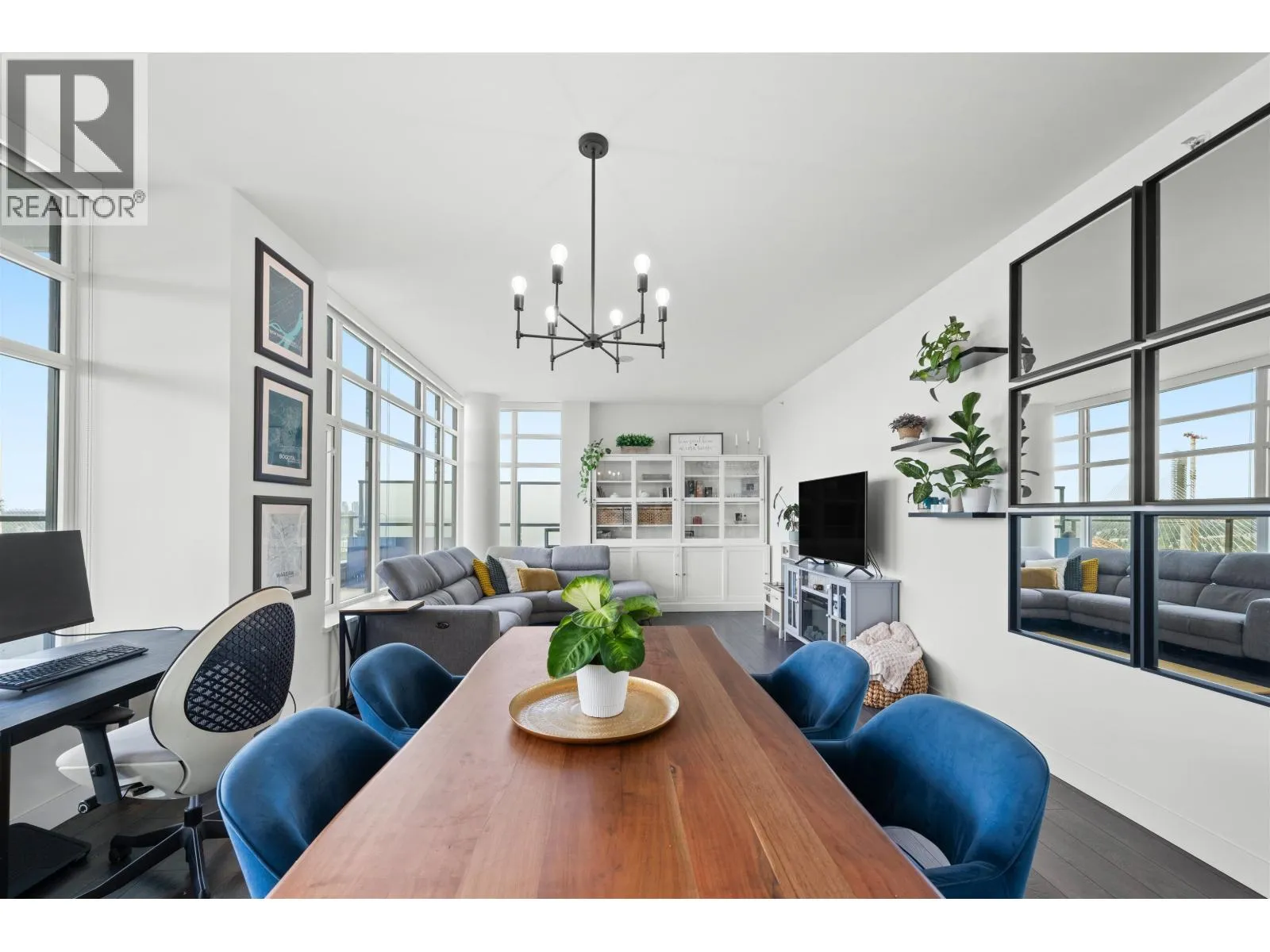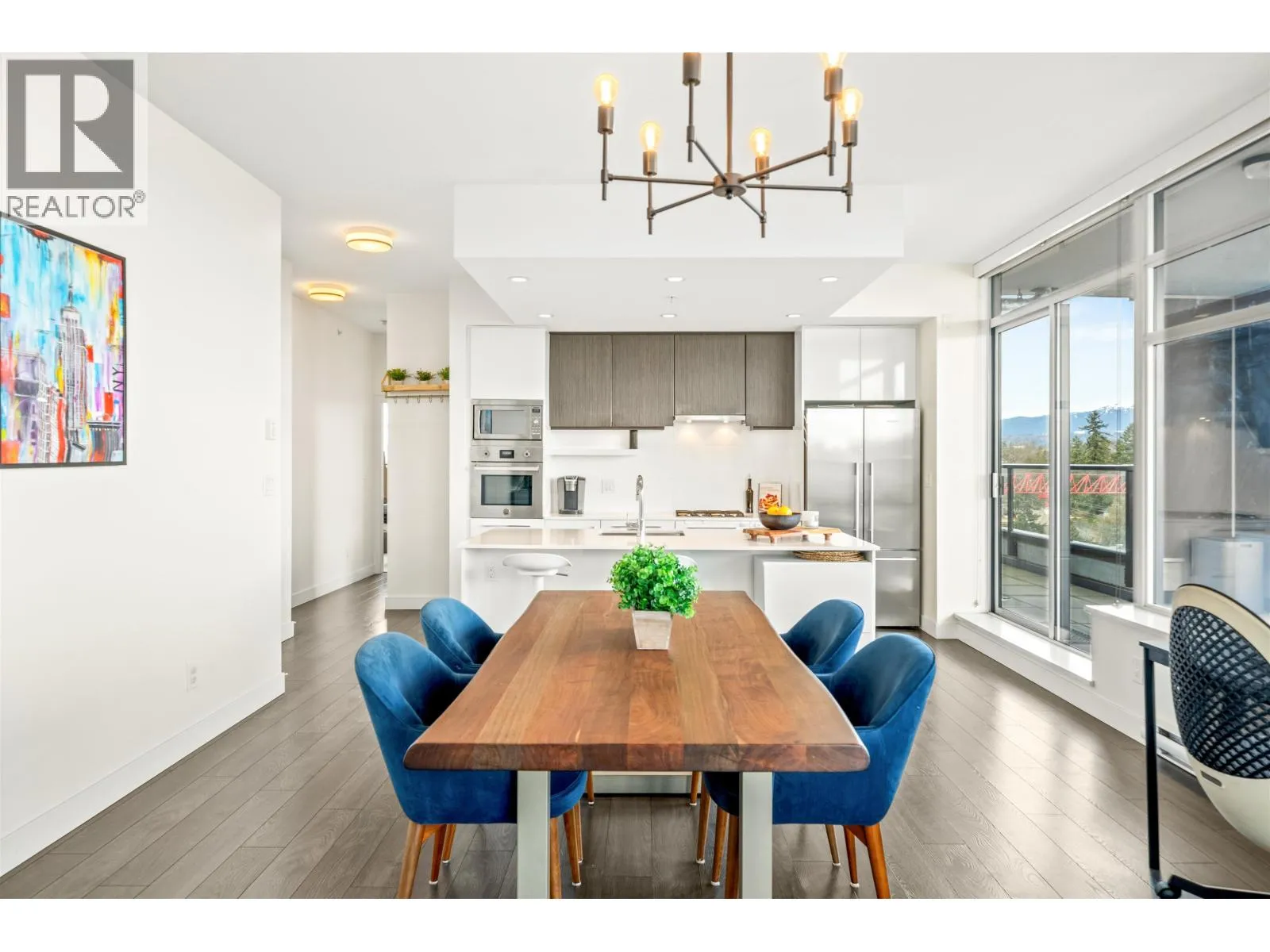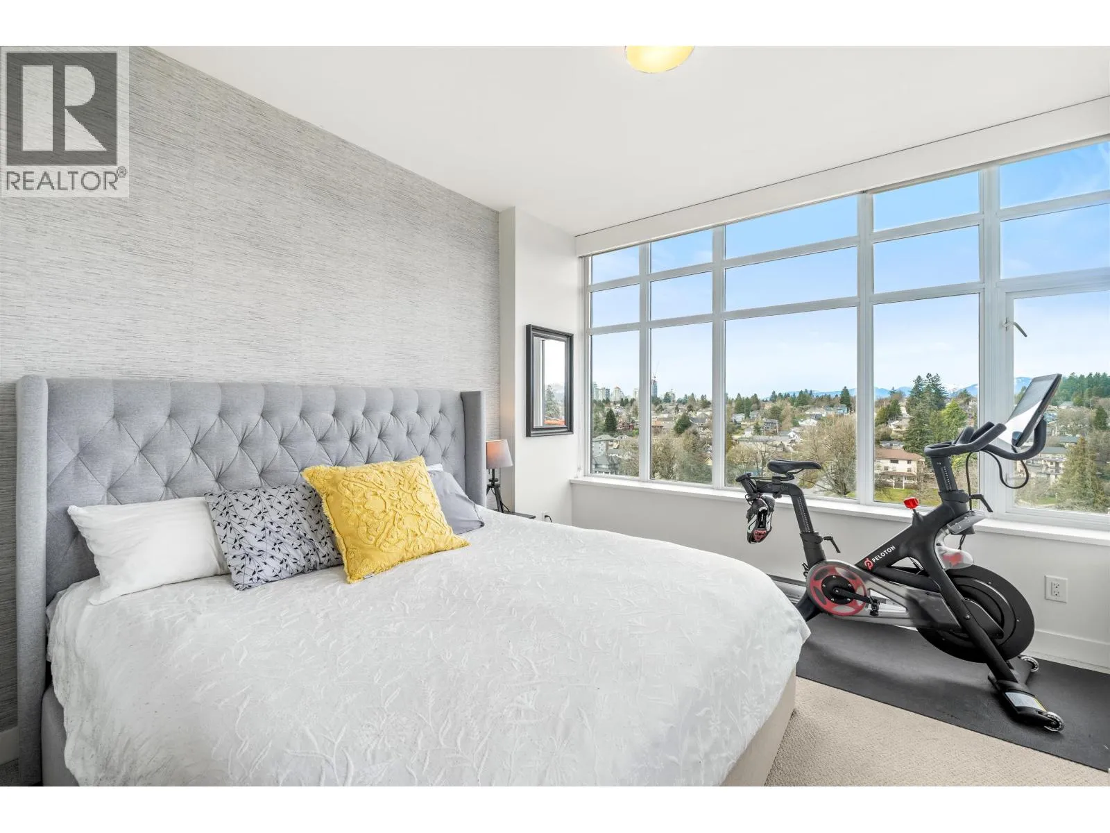 Stunning sub-penthouse high above downtown New West, this corner unit at Elliot Street offers panoramic views from the North Shore mountains, to the Fraser River & Mt Baker. Huge wrap around semi-covered patio, great for entertaining, over 300sf, enjoy morning sunsets & north, east & south facing views! Open floor plan, 1,154sf of living space, with 2 bedrooms, 2 bathrooms, open-concept living/dining/kitchen area with 10´ ceilings, large kitchen with island, high-end European appliances, gas range, and modern cabinetry. Located on the east side of Downtown New West, backing onto Albert Crescent park, tucked away from city noise and a close walk to Columbia Skytrain, Restaurants, Shopping and Pier Park. Includes 1 parking & 1 storage. (id:27476)