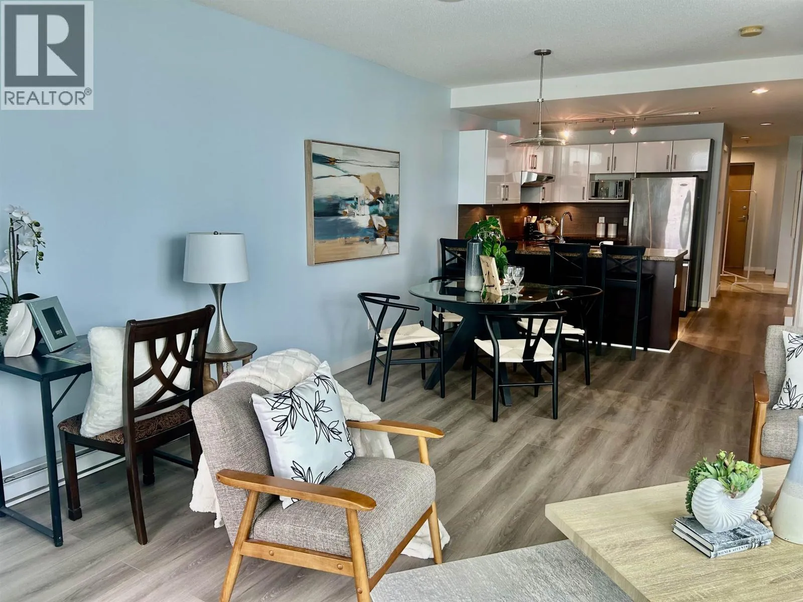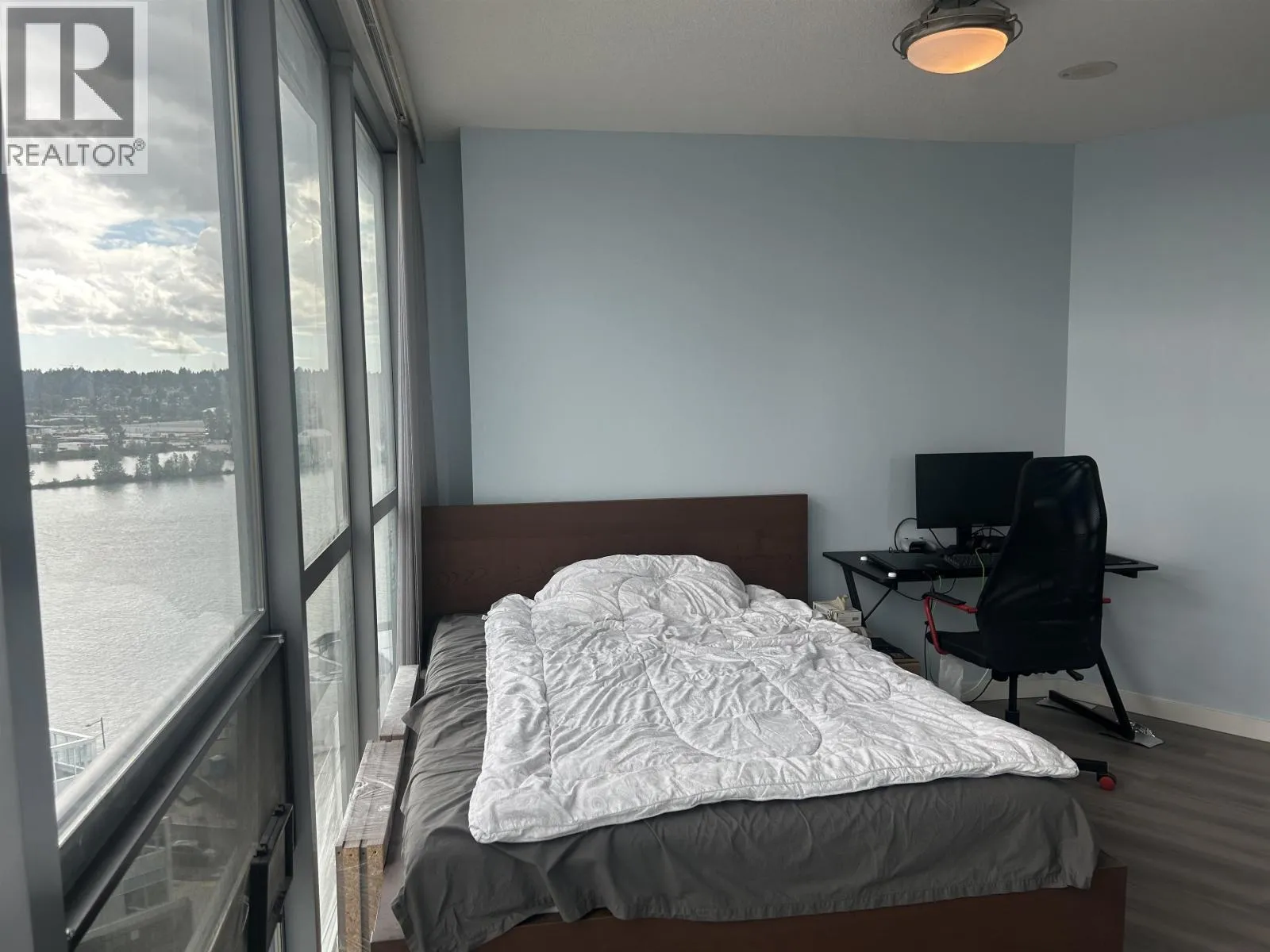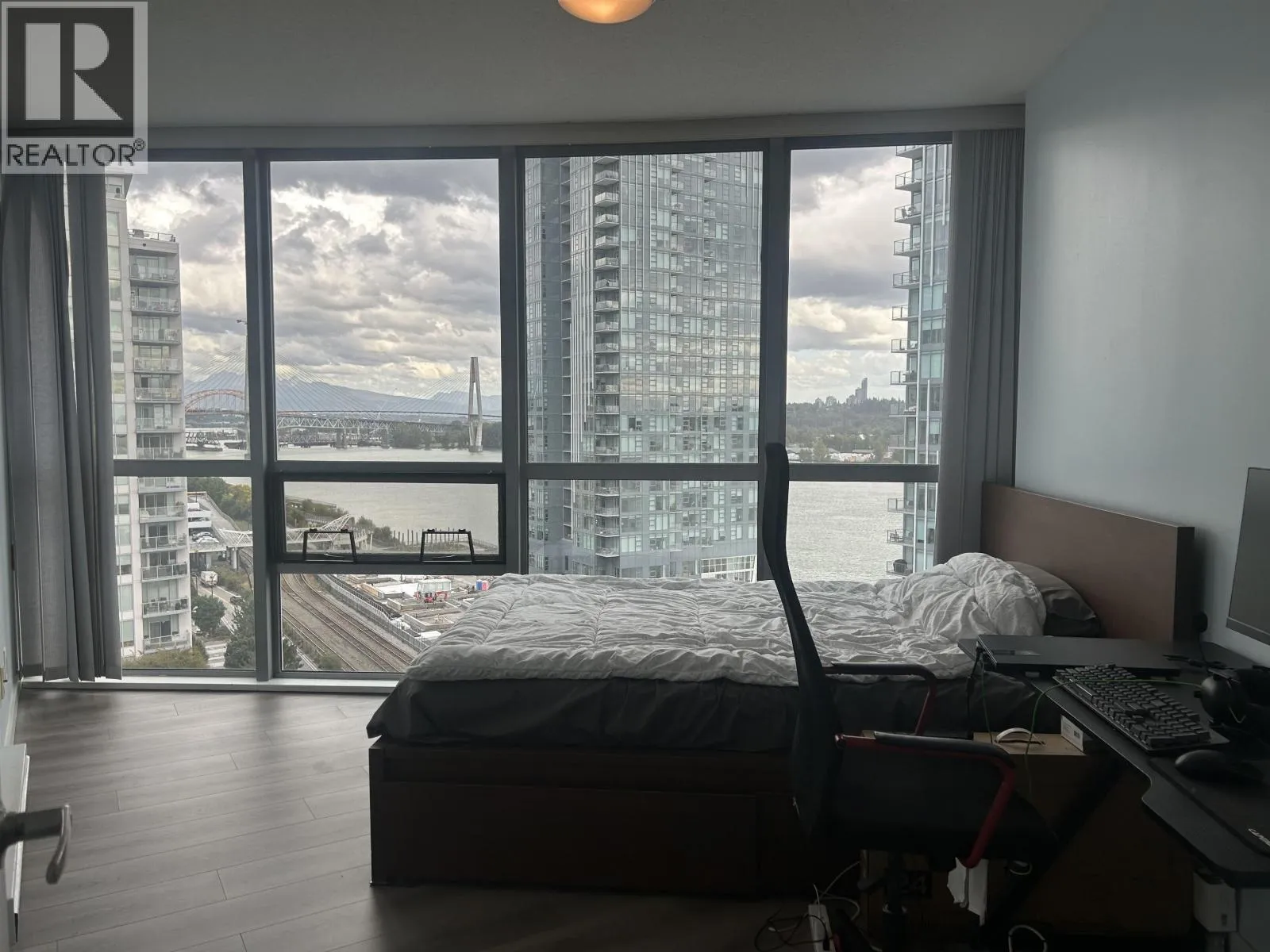 Gorgeous full waterfront south views from this 15th floor corner unit, bright and clean two bedroom, two bath, 1000 sf, freshly painted & brand new laminate floors. open and spacious floor plan, luxurious features such as gourmet kitchen, under mounted double sinks, double nosed granite counter tops, s/s appliances, in-suite laundry, a large in-suite storage area, floor to ceiling windows with a peaceful city & river view from the large COVERED BALCONY. Steps to skytrain, shopping, recreation, and parks. One cat or one non-vicious dog allowed. a secure underground parking spot. (id:27476)