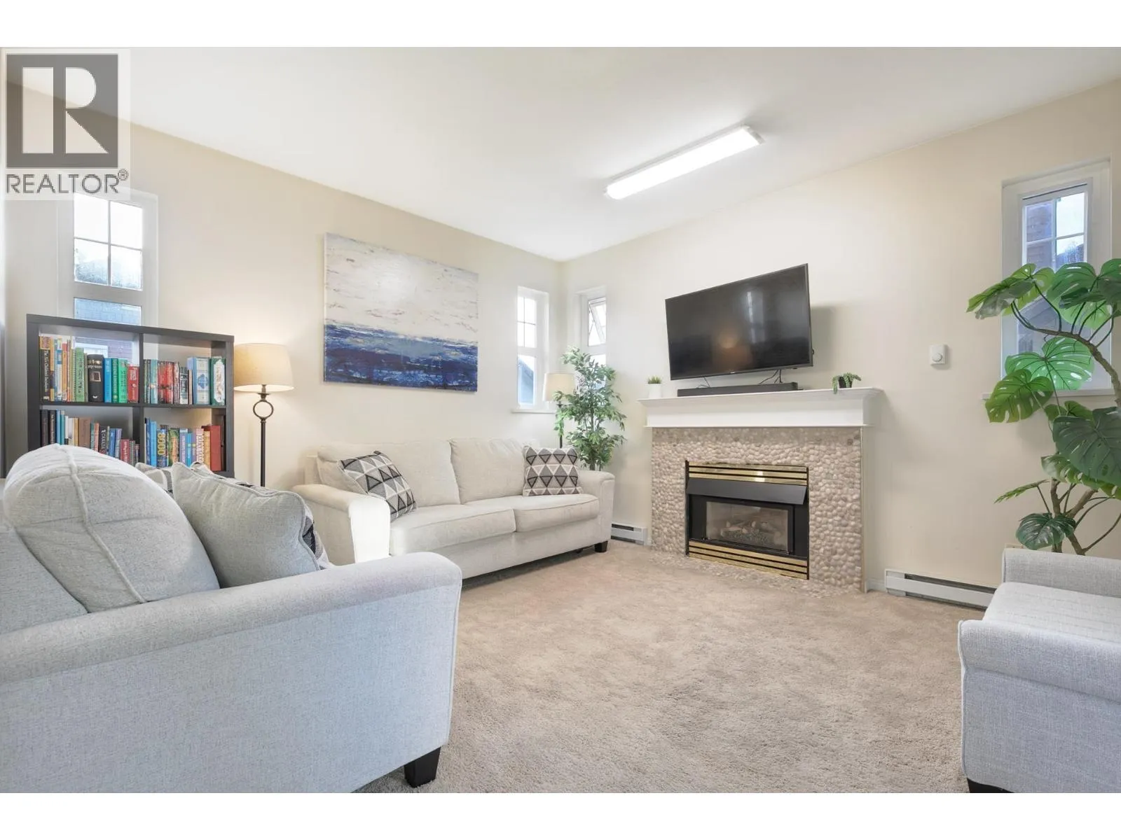2-BDR Corner Unit at Residences by the River! This spacious street-level home features an open kitchen concept, lots of natural light & large windows, a cozy gas fireplace, and a private covered patio. Enjoy peaceful river views to the north, the building's landscaped garden, and a vibrant community garden just across the street. Great distribution and floorplan, with 9 ft tall ceilings and bedrooms on opposite sides for added privacy. Secure u/g parking with shared Car Wash station for residents. Located steps from scenic trails, Port Royal Park, the Q2Q ferry, & charming local shops. Only one block from transit - close enough for convenience, yet tucked into a quiet, low-traffic residential pocket. Includes 1 parking and storage. (id:27476)