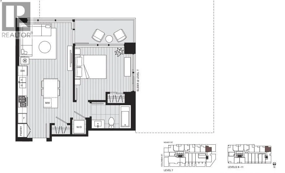 Water view, corner 1 bedroom under construction at The Keary in Sapperton's Brewery District. This assignment of contract is your opportunity to own in the sold out development which is the last phase in the Brewery District master plan and the highest quality finishes. This home sits on the top floor of the building podium section offering direct water views from the living room and bedroom and no interior unit above you. One of the most sought after floor plans in the development which sold out in just a few days. (id:27476)