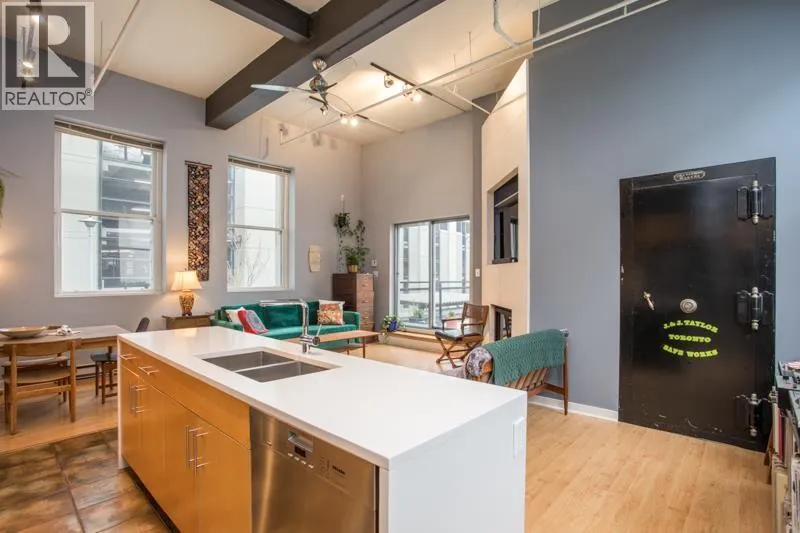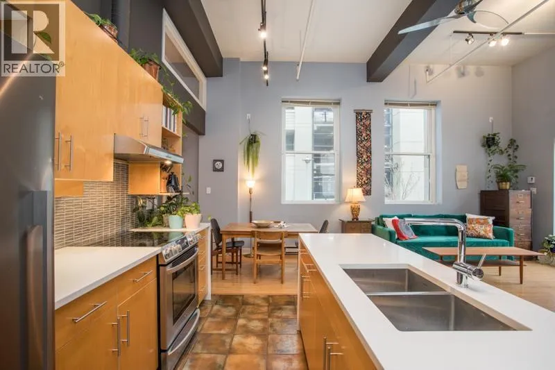 Industrial Conversion in the former New Westminster Post Office. Authentic to the core, you feel the exclusivity, history and energy reaching out to you from every room. Secluded at the back of the building, surrounded on three sides by wood-frame sash windows that stretch up the 12 foot ceilings. Inspiring, unique architecture that is truly one of a kind - especially with the original post office vault. Converted to residences in 2002, C2C Lofts was fully retrofitted and modernized. Each unit is unique and this one is the stand out. Extended like a peninsula, reaching across 1,241 square feet and leading you to the roof top deck. Take in the morning sun, step out your door for a coffee, a bite to eat and a short walk to the Skytrain. (id:27476)