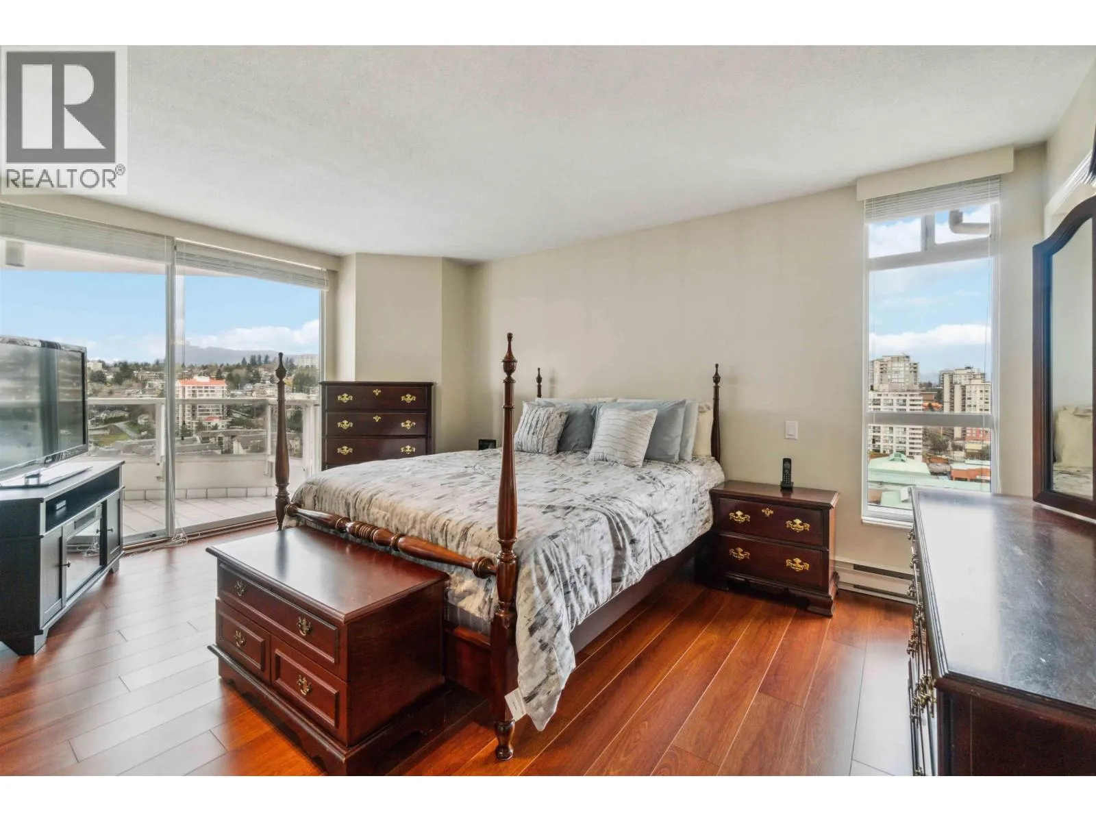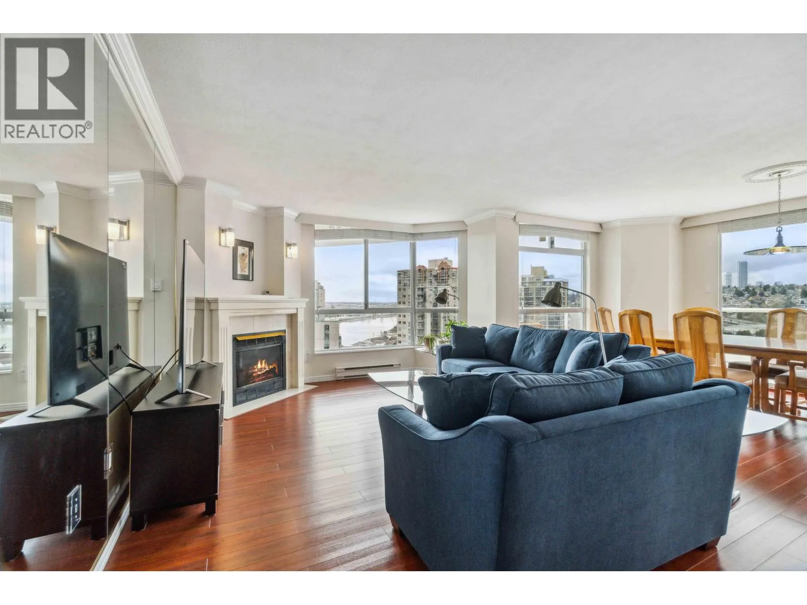 Welcome to The Riviera on the New Westminster Quay! This rare semi-penthouse corner residence showcases sweeping 180 degree views of the Fraser River and city skyline, enjoyed from an expansive wraparound balcony. With two bedrooms, each offering its own ensuite, this home provides the perfect blend of comfort, privacy, and functionality. Natural light fills the open living and dining areas, while the kitchen features stainless steel appliances for everyday ease and entertaining. Complete with two secure parking stalls, this home also offers access to premium amenities including an indoor pool, hot tub, fitness center, games room, library, and guest suite. An exceptional opportunity for downsizers or professionals seeking a vibrant waterfront lifestyle. (id:27476)