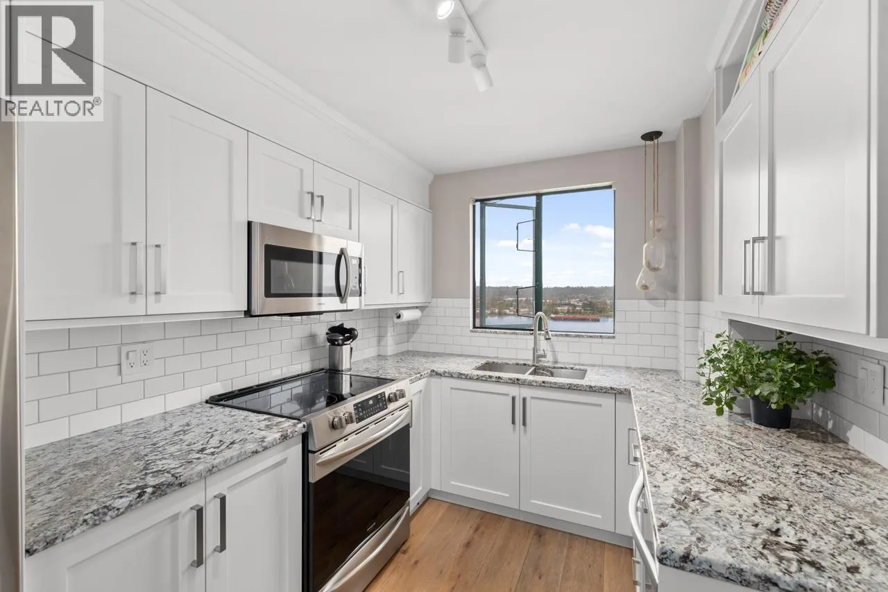 Come home to incredible river views from this COMPLETELY RENOVATED 2 bed + 2 bath corner unit. Nothing to do but move in and enjoy! Extensive updates include a new kitchen and bathrooms, beautiful engineered hardwood flooring, gorgeous built in cabinets, updated doors on all rooms and closets, smooth ceiling and fresh paint. All new appliances including new fireplace! You'll love the view and beautiful sunlight from your large private patio. Enjoy direct access to Columbia Sky Train station! Close to Douglas College + New West Quay. Buy with confidence in this well managed strata. Pet friendly+ In-suite laundry and secure underground parking. Amenities include exercise room, indoor pool and hot tub. Come and see for yourself! (id:27476)