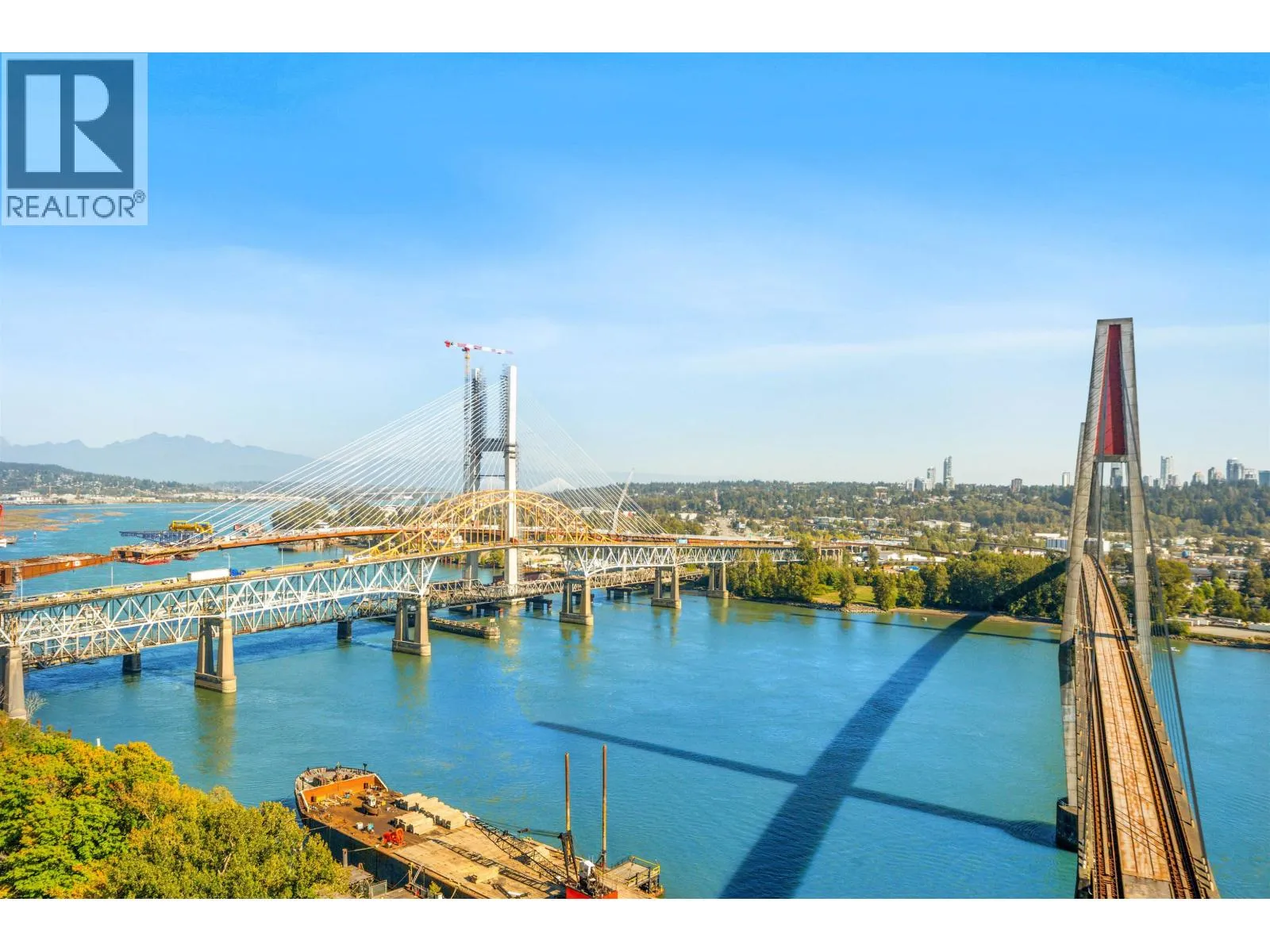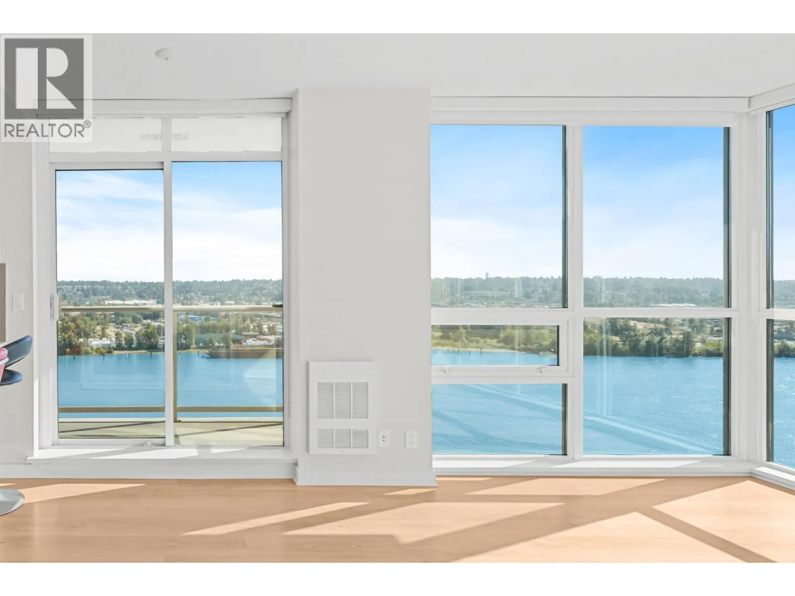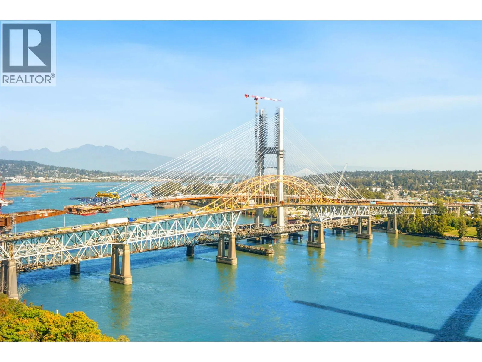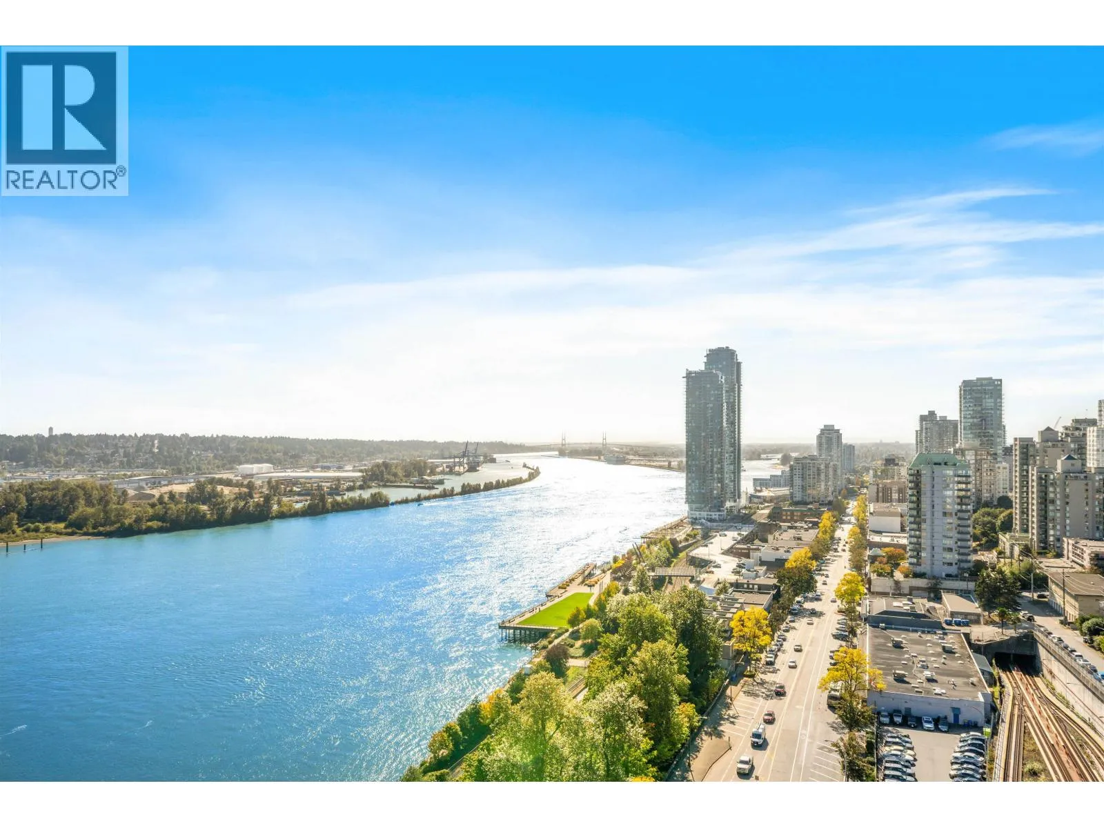 STUNNING PANORAMIC VIEWS from every room! Southwest 2 Bed, 2 Bath, Corner unit at Northbank with a spacious balcony & unobstructed views of the Fraser River and Downtown New West. Modern deisgn, Kitchen features quartz countertops, contemporary soft-close cabinets, plenty of storage/pantry space, stainless steel appliances (new fridge & microwave). Located next to Albert Crescent Park and just steps to Pier Park/waterfront, and skytrain. Convenient access to shops and restaurants in downtown New West. Storage locker can be rented from the strata for $10 a month. 1 Parking included. (id:27476)