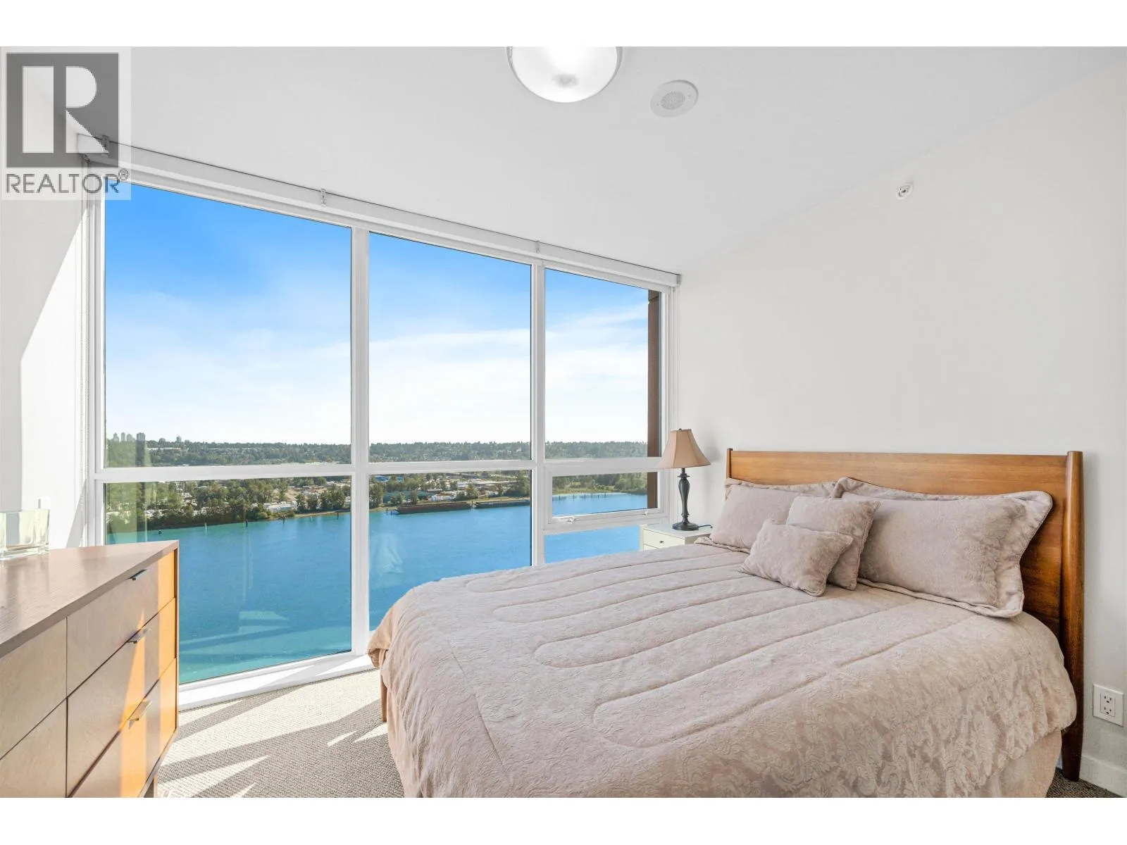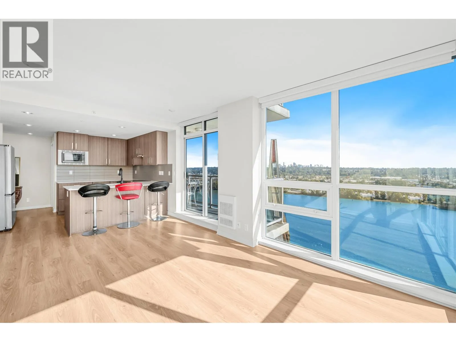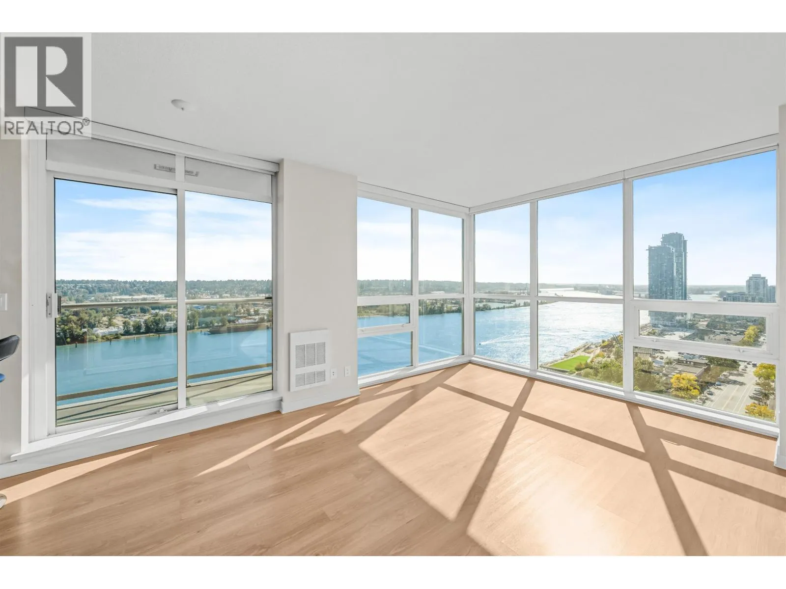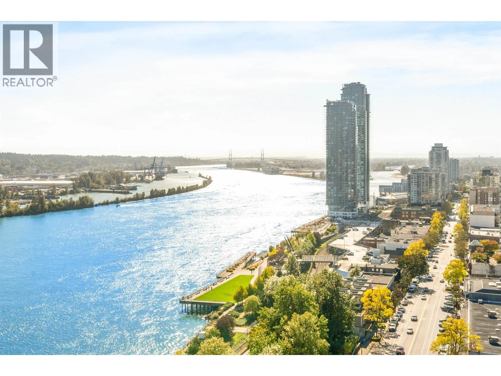 STUNNING PANORAMIC VIEWS from every room! Southwest 2 Bed, 2 Bath, Corner unit at Northbank with a spacious balcony & unobstructed views of the Fraser River and Downtown New West. Modern deisgn, Kitchen features quartz countertops, contemporary soft-close cabinets, plenty of storage/pantry space, stainless steel appliances (new fridge & microwave). Located next to Albert Crescent Park and just steps to Pier Park/waterfront, and skytrain. Convenient access to shops and restaurants in downtown New West. Storage locker can be rented from the strata for $10 a month. 1 Parking included. (id:27476)