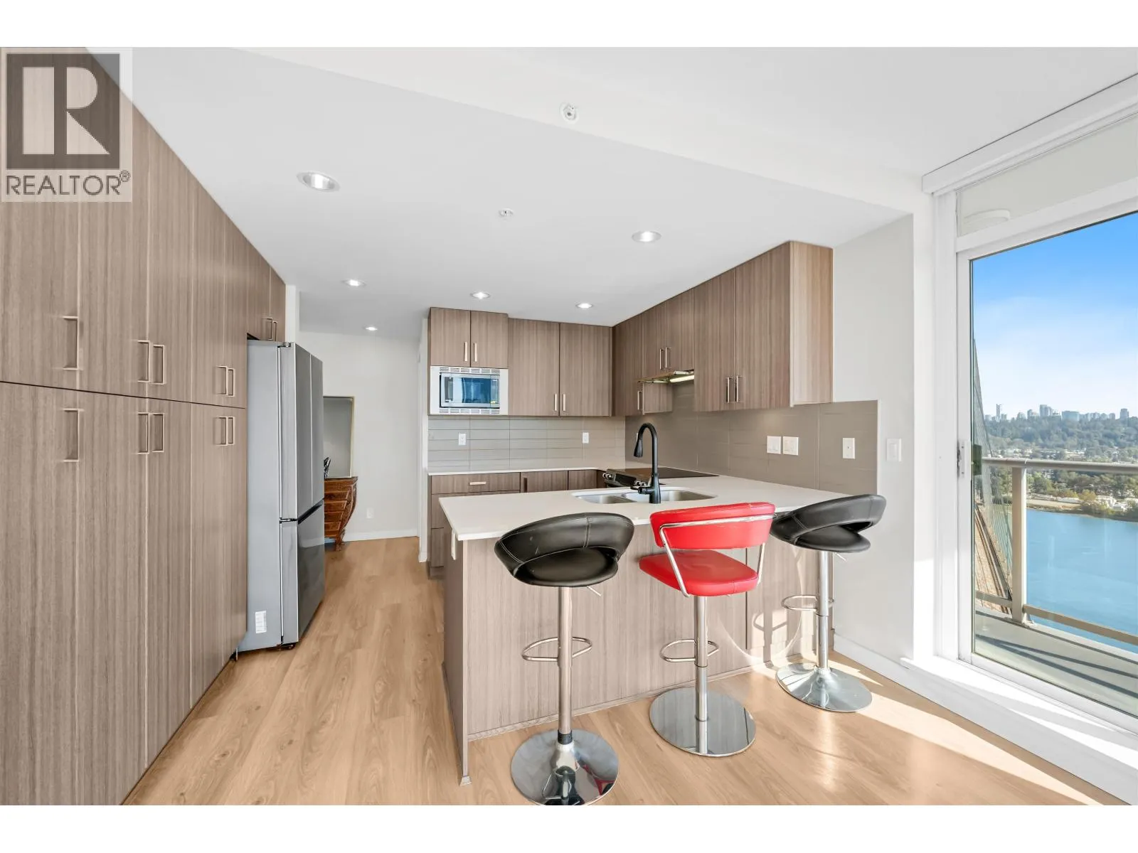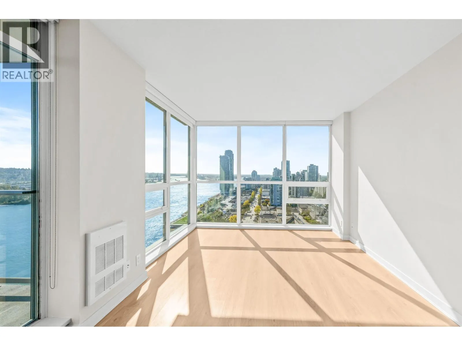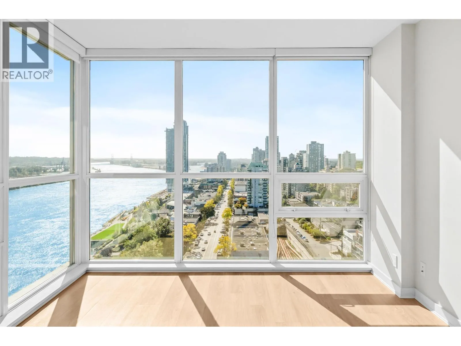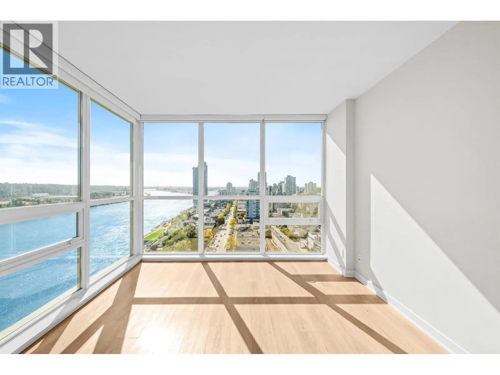 STUNNING PANORAMIC VIEWS from every room! Southwest 2 Bed, 2 Bath, Corner unit at Northbank with a spacious balcony & unobstructed views of the Fraser River and Downtown New West. Modern deisgn, Kitchen features quartz countertops, contemporary soft-close cabinets, plenty of storage/pantry space, stainless steel appliances (new fridge & microwave). Located next to Albert Crescent Park and just steps to Pier Park/waterfront, and skytrain. Convenient access to shops and restaurants in downtown New West. Storage locker can be rented from the strata for $10 a month. 1 Parking included. (id:27476)