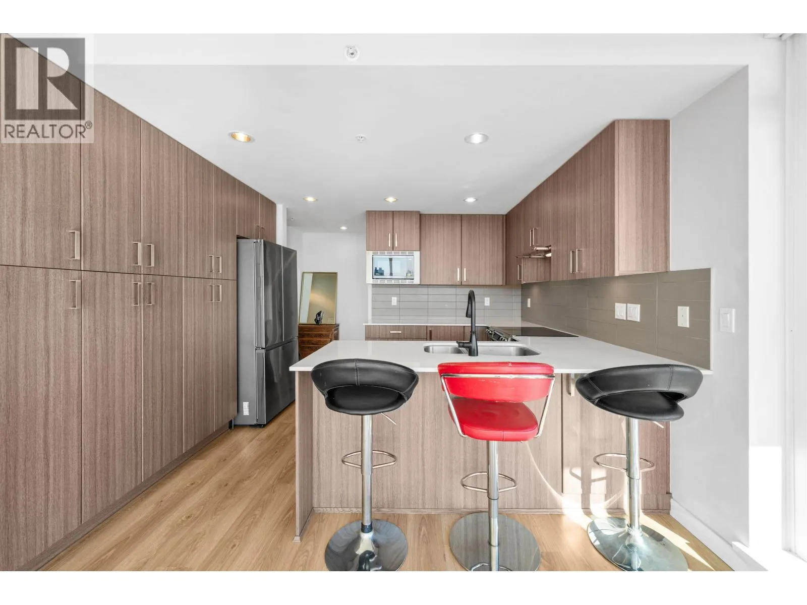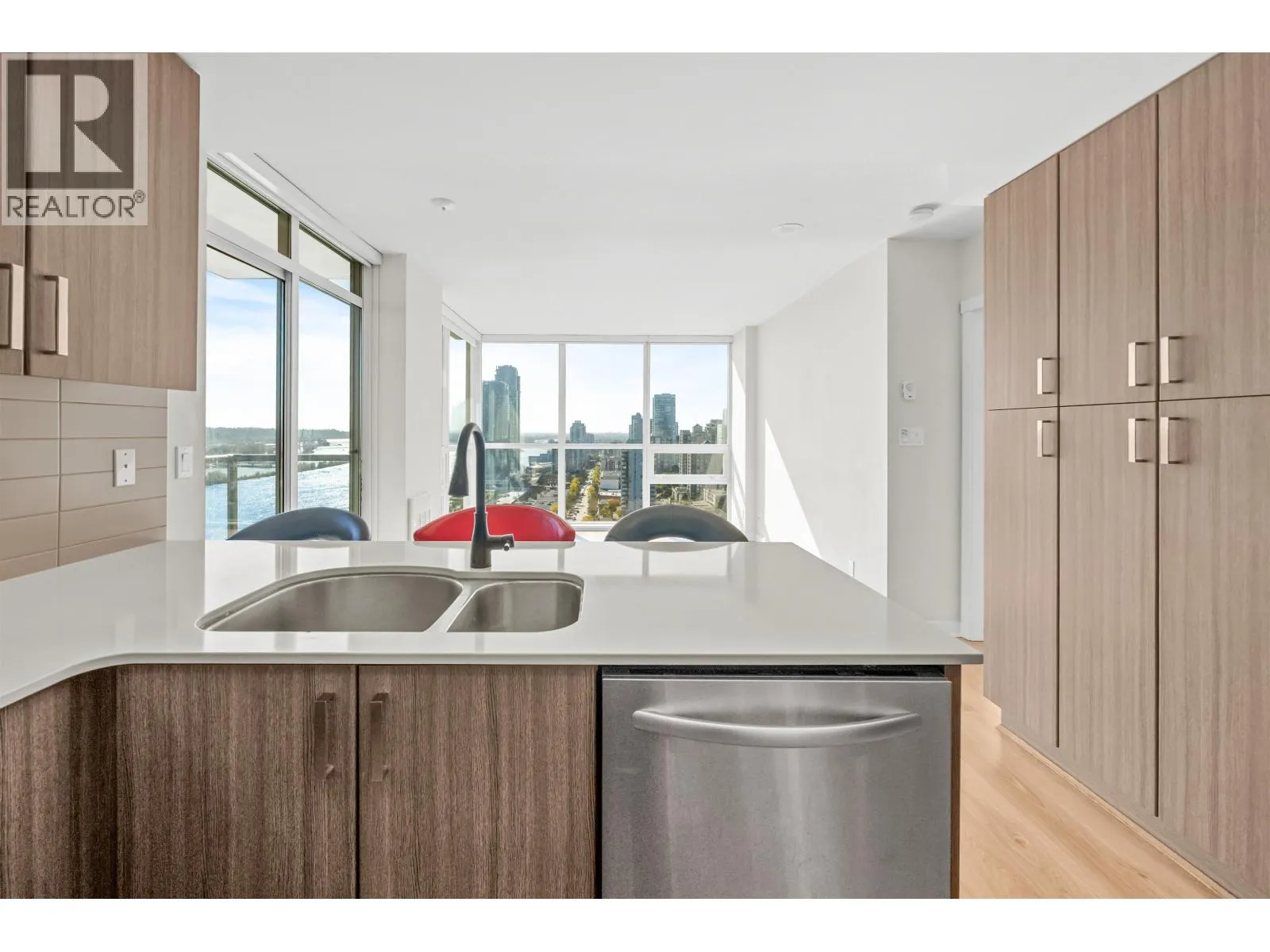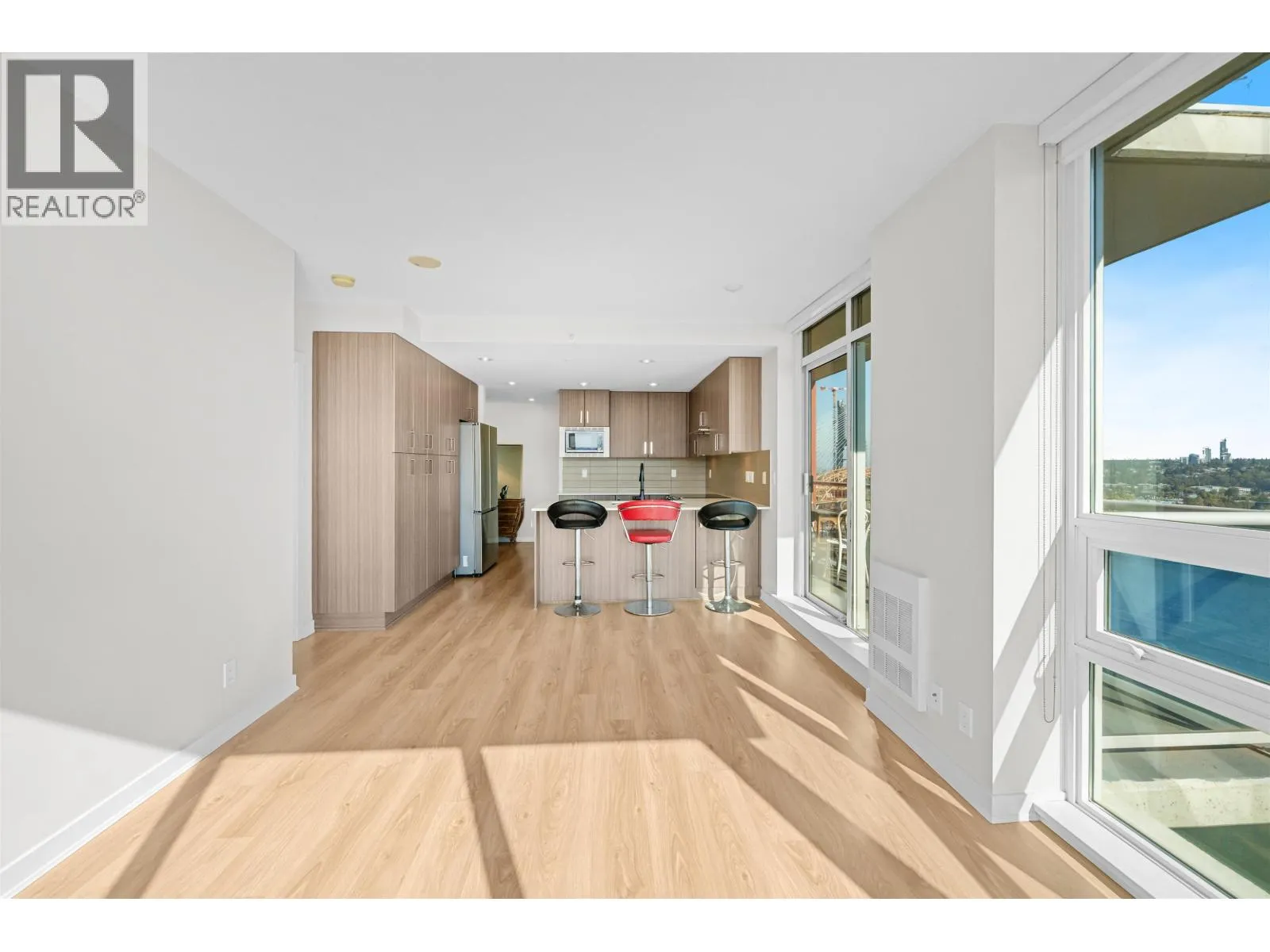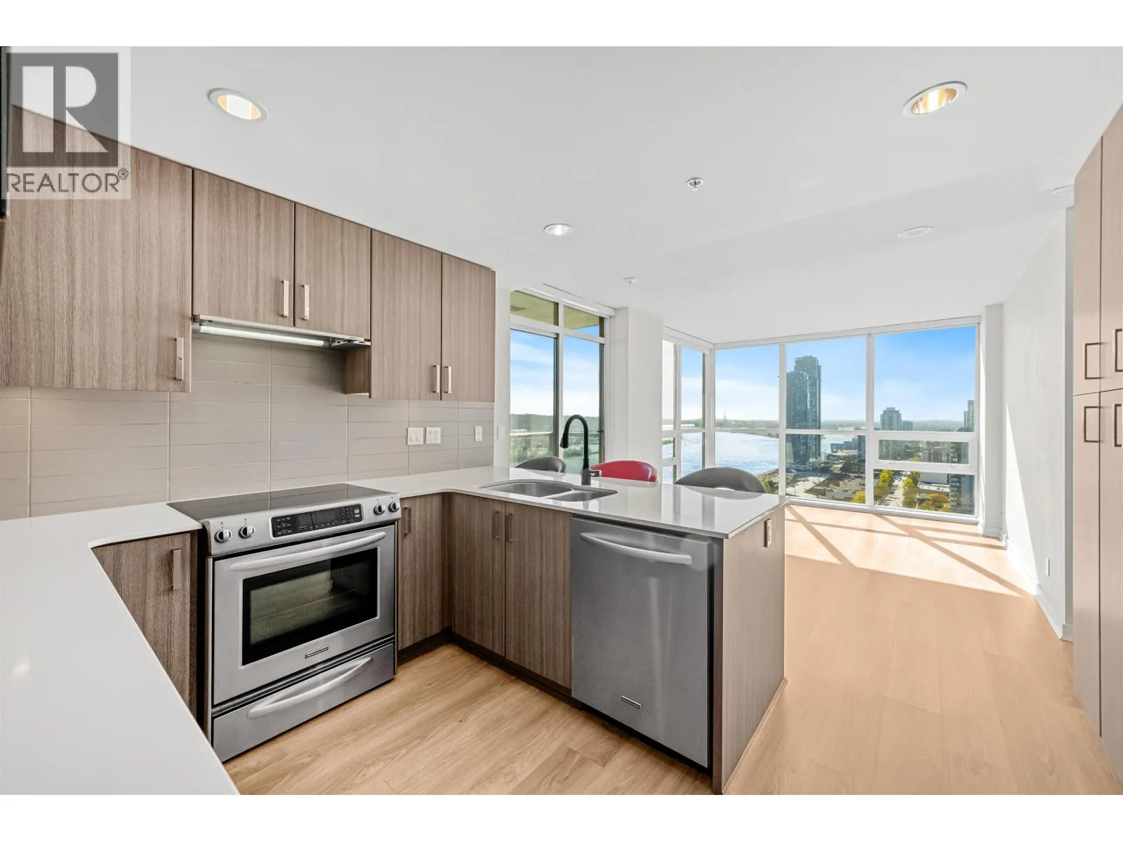 STUNNING PANORAMIC VIEWS from every room! Southwest 2 Bed, 2 Bath, Corner unit at Northbank with a spacious balcony & unobstructed views of the Fraser River and Downtown New West. Modern deisgn, Kitchen features quartz countertops, contemporary soft-close cabinets, plenty of storage/pantry space, stainless steel appliances (new fridge & microwave). Located next to Albert Crescent Park and just steps to Pier Park/waterfront, and skytrain. Convenient access to shops and restaurants in downtown New West. Storage locker can be rented from the strata for $10 a month. 1 Parking included. (id:27476)
