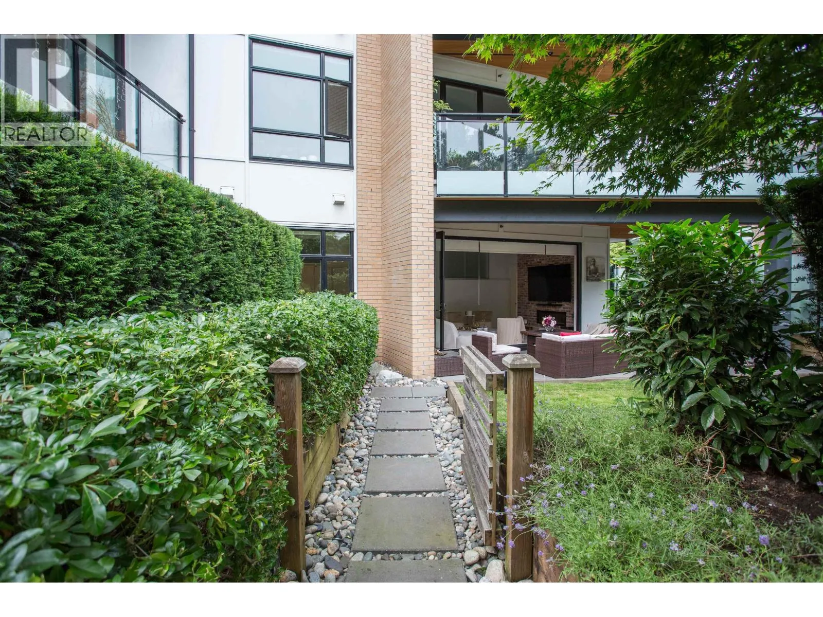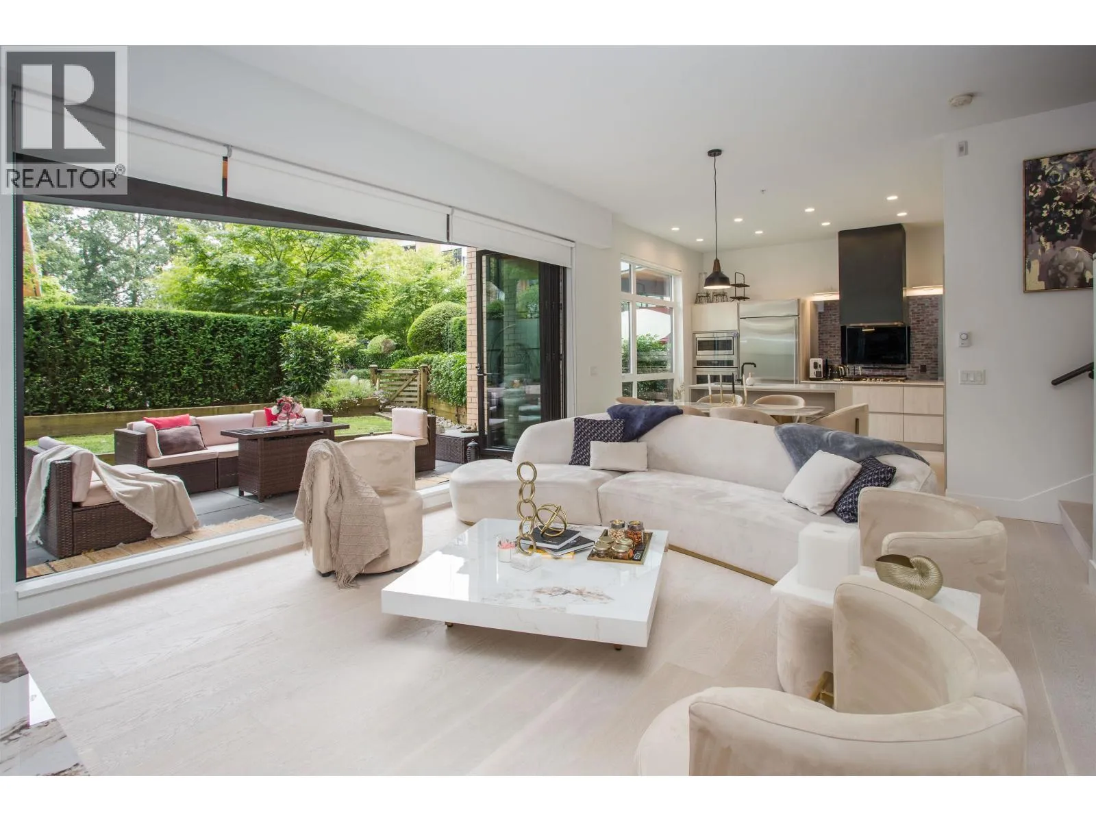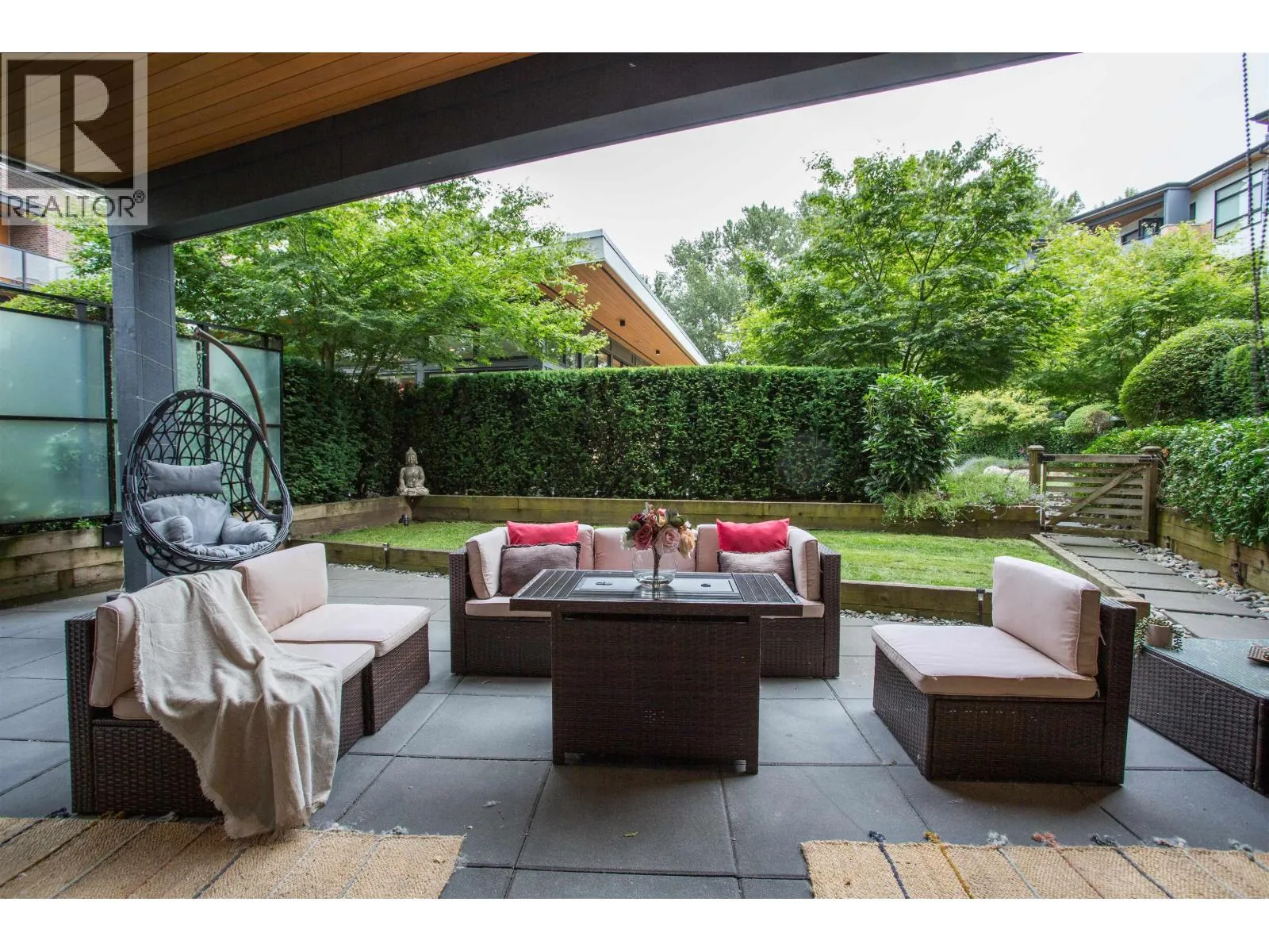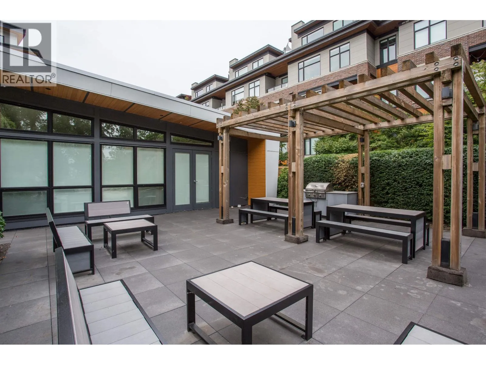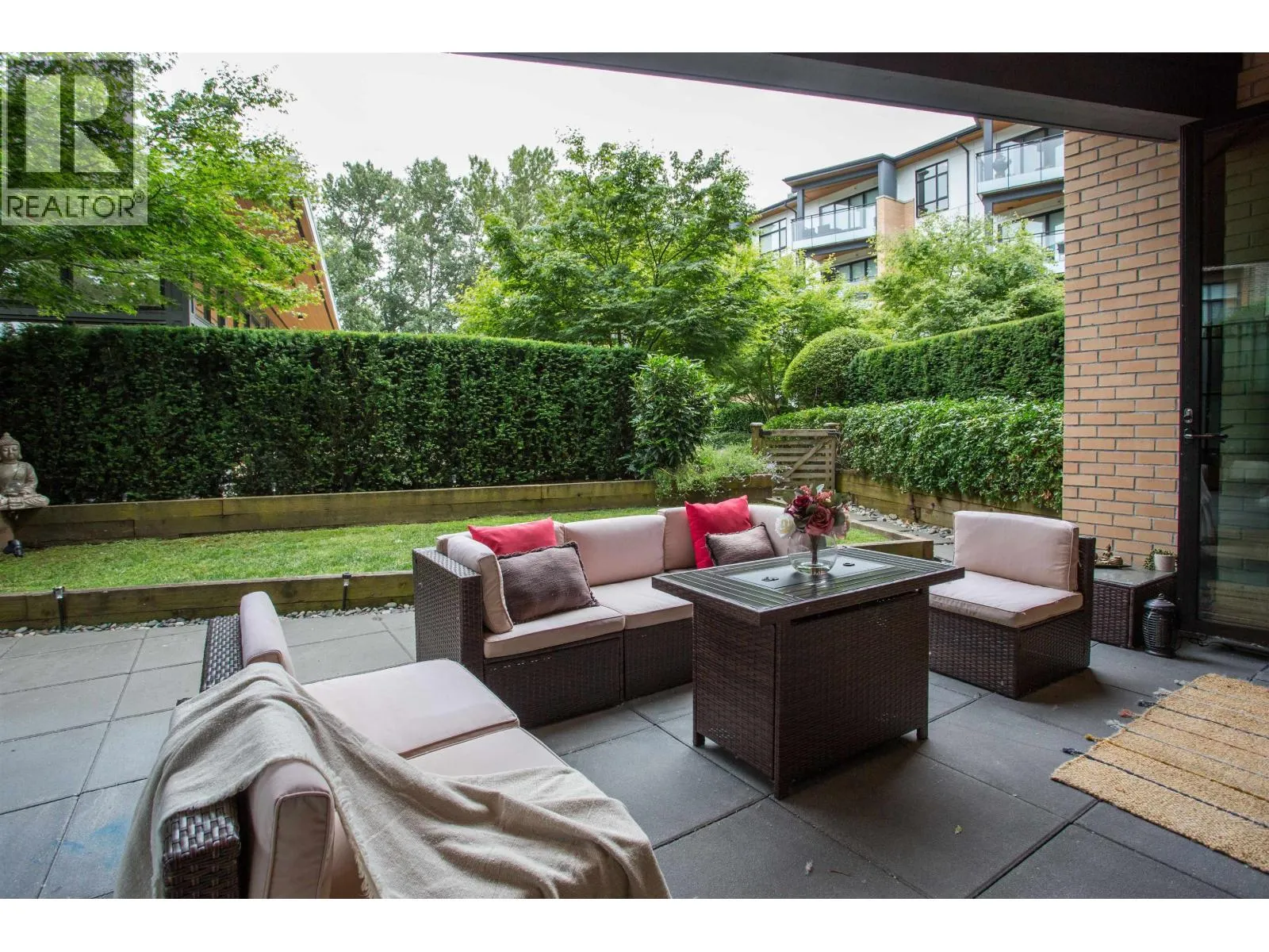 Welcome to Light House in Port Royal! This stunning 3 bed, 2 bath ground-level loft-style home features in-floor heating in both spacious bathrooms, engineered hardwood floors, and a beautiful brick feature wall. Accordion doors off the main living space open to a large patio and private yard-perfect for entertaining or letting the kids play. Filled with natural light and finished with care throughout. Family-friendly community with parks, shopping, and Q2Q Ferry access to SkyTrain and downtown New West. 2 Parking and a locker. EV Charger in parking spot! Open house Sunday November 16th 2-3PM. (id:27476)