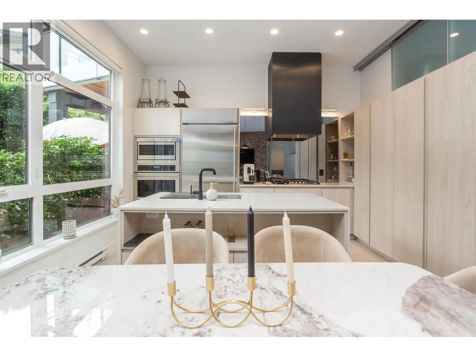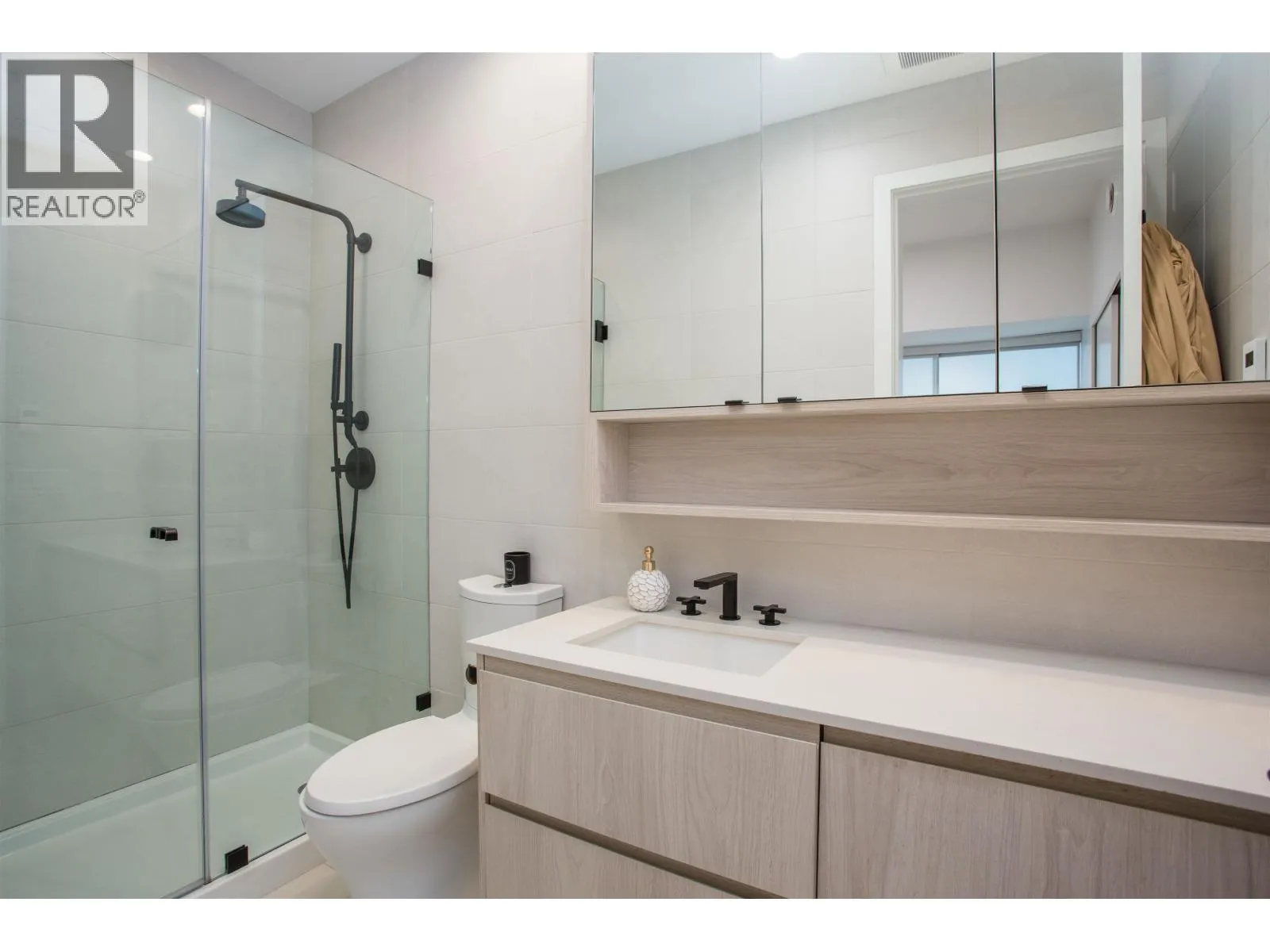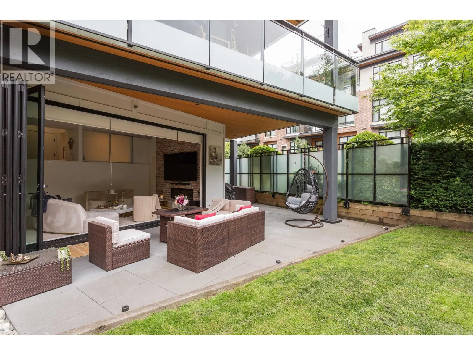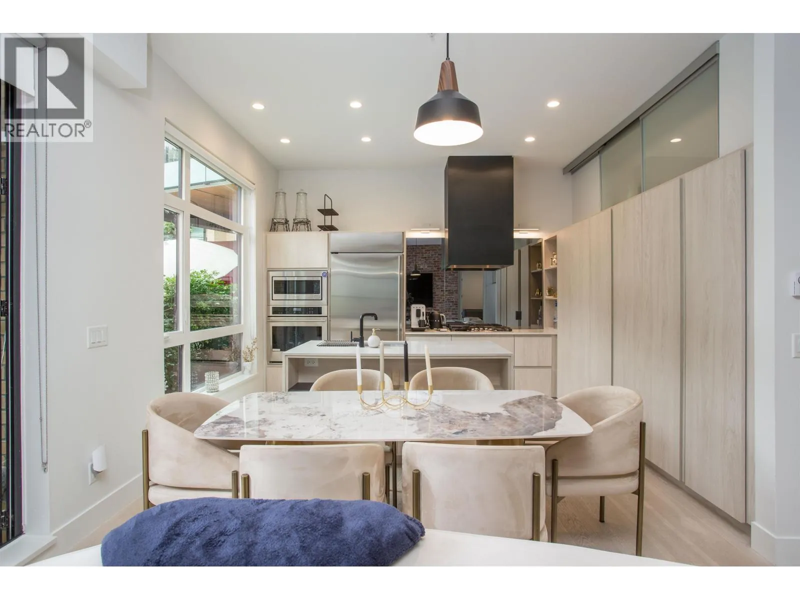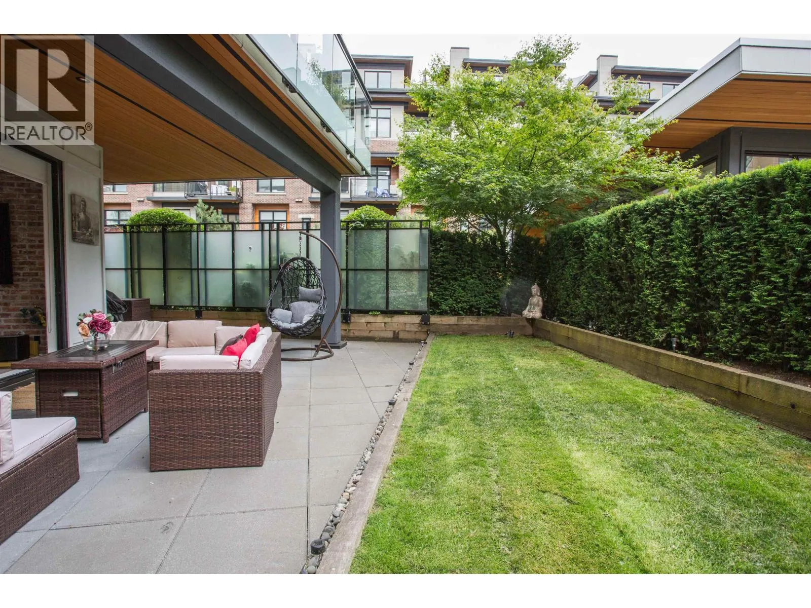Welcome to Light House in Port Royal! This stunning 3 bed, 2 bath ground-level loft-style home features in-floor heating in both spacious bathrooms, engineered hardwood floors, and a beautiful brick feature wall. Accordion doors off the main living space open to a large patio and private yard-perfect for entertaining or letting the kids play. Filled with natural light and finished with care throughout. Family-friendly community with parks, shopping, and Q2Q Ferry access to SkyTrain and downtown New West. 2 Parking and a locker. EV Charger in parking spot! Open house Sunday November 16th 2-3PM. (id:27476)