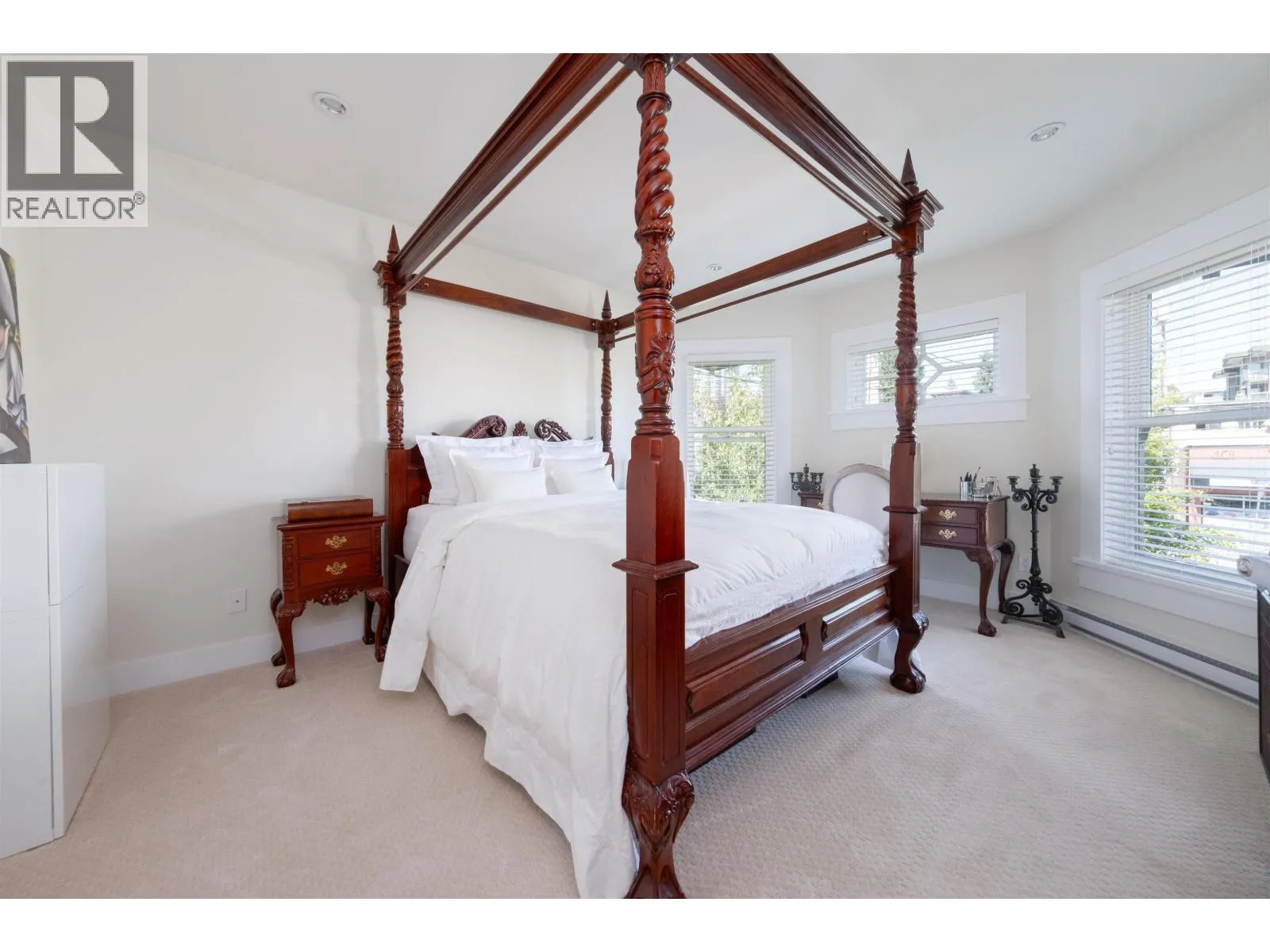 This charming Edwardian Era home built in 1911 and restored in 2017 is nestled in the heart of the Royal City-Prime location, walking distance to all amenities incl groceries, schools, transit and Queens Park. This home boasts 4 large spacious bedrooms and 3 baths plus an open den/office space. The main floor with 9ft ceiling features a grand kitchen with abundant storage space, center island and natural light from all sides. Relax outdoors on the front or back side covered porches overlooking beautiful gardens and large patio space perfect for entertaining. This home is complete with 2 VIP underground parking+2 storage lockers - New West is once again booming and a fast growing city - This is your chance to own a part of History - (id:27476)