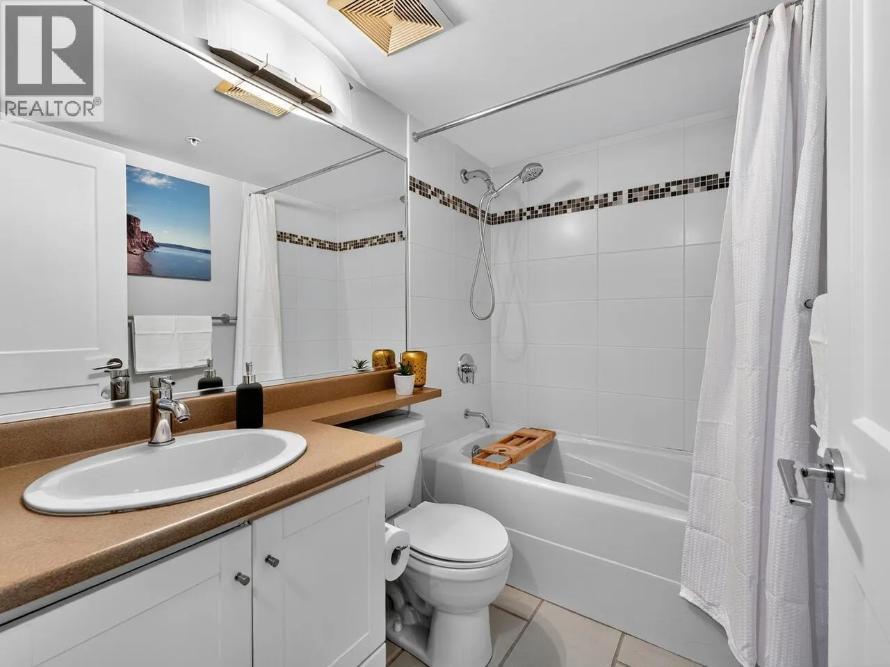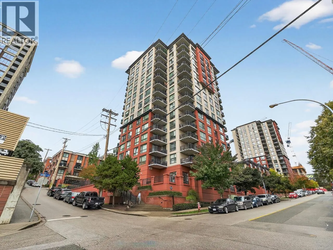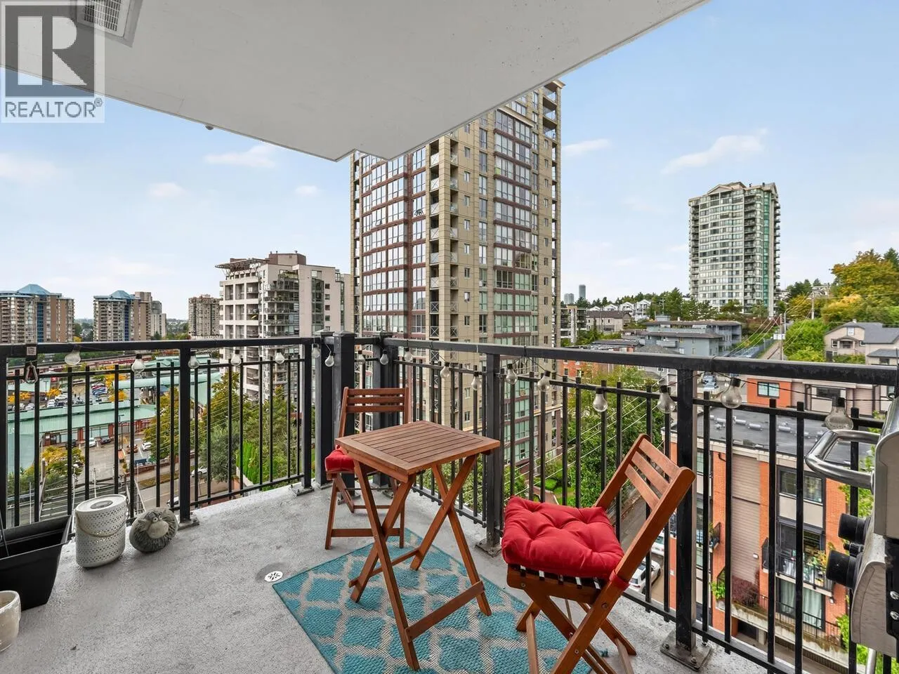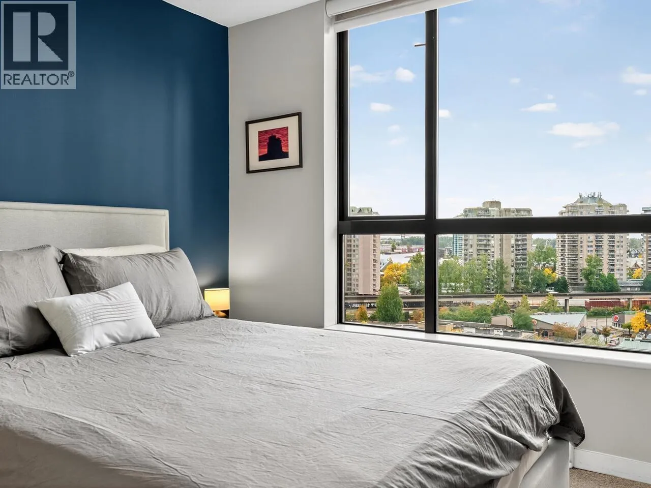 An incredible view is waiting for you at our corner suite home in downtown New West. A well cared for lobby greets you at the entry before you run upstairs. The covered balcony and living room offer an expensive view of New West Quay and Fraser River. Laminate wood floors flow through the living room and dining room, leading to an open kitchen with stainless steel appliances surrounded by granite countertops and a subway tile backsplash. Tile floors in the kitchen lead to the foyer and main four piece bathroom. The primary bedroom offers the same incredible view, and ample closet space sitting opposite the insuite laundry leading to the four piece en suite. The second bedroom sits on the opposite side of suite and looks out to the balcony. Off the lobby you'll find the well appointed fitness center. The News is located just steps from Columbia Square and one block further leads to New West skytrain station. 1 cat or dog allowed. 3D virtual tour at Realtor's site. (id:27476)