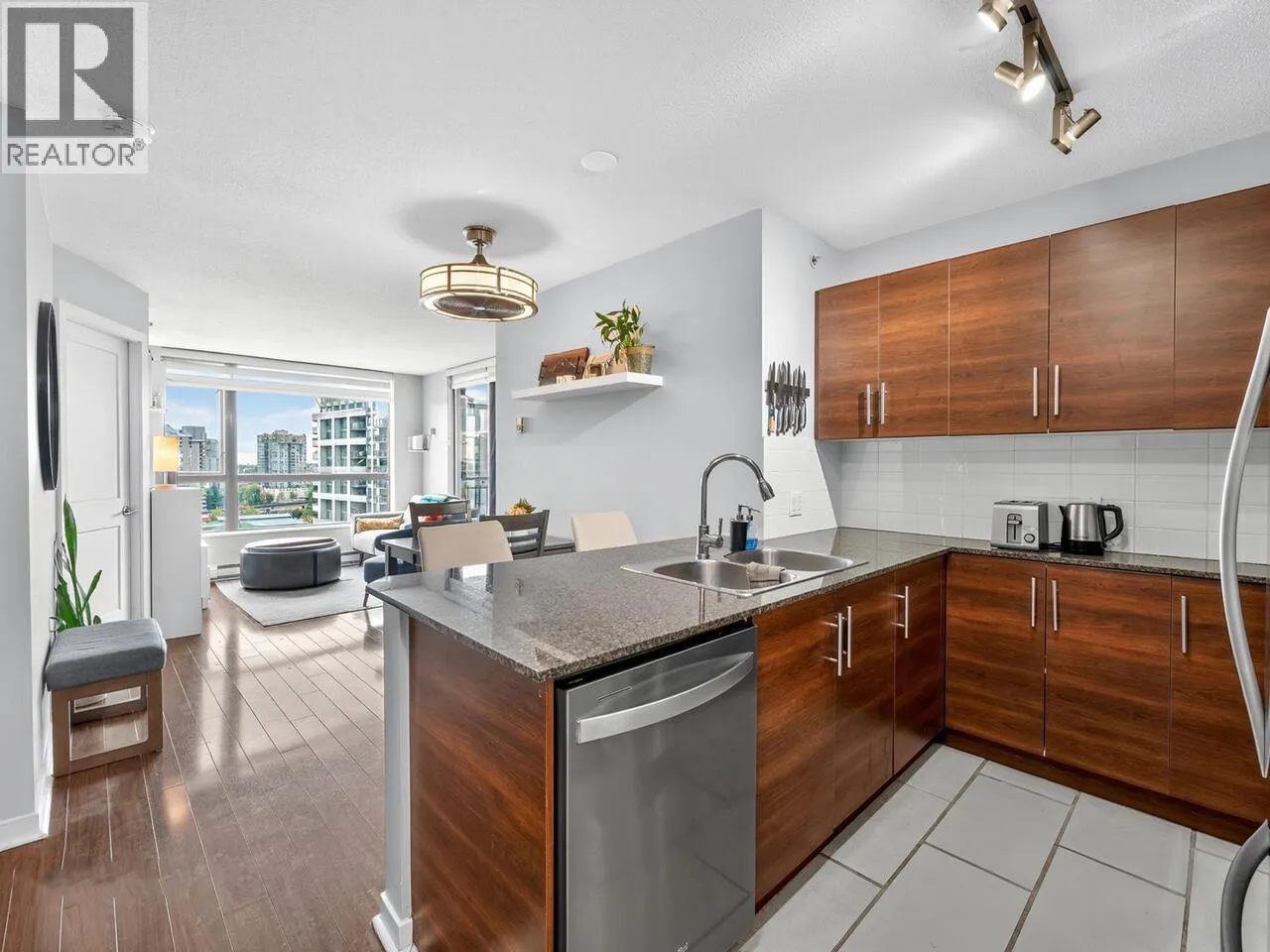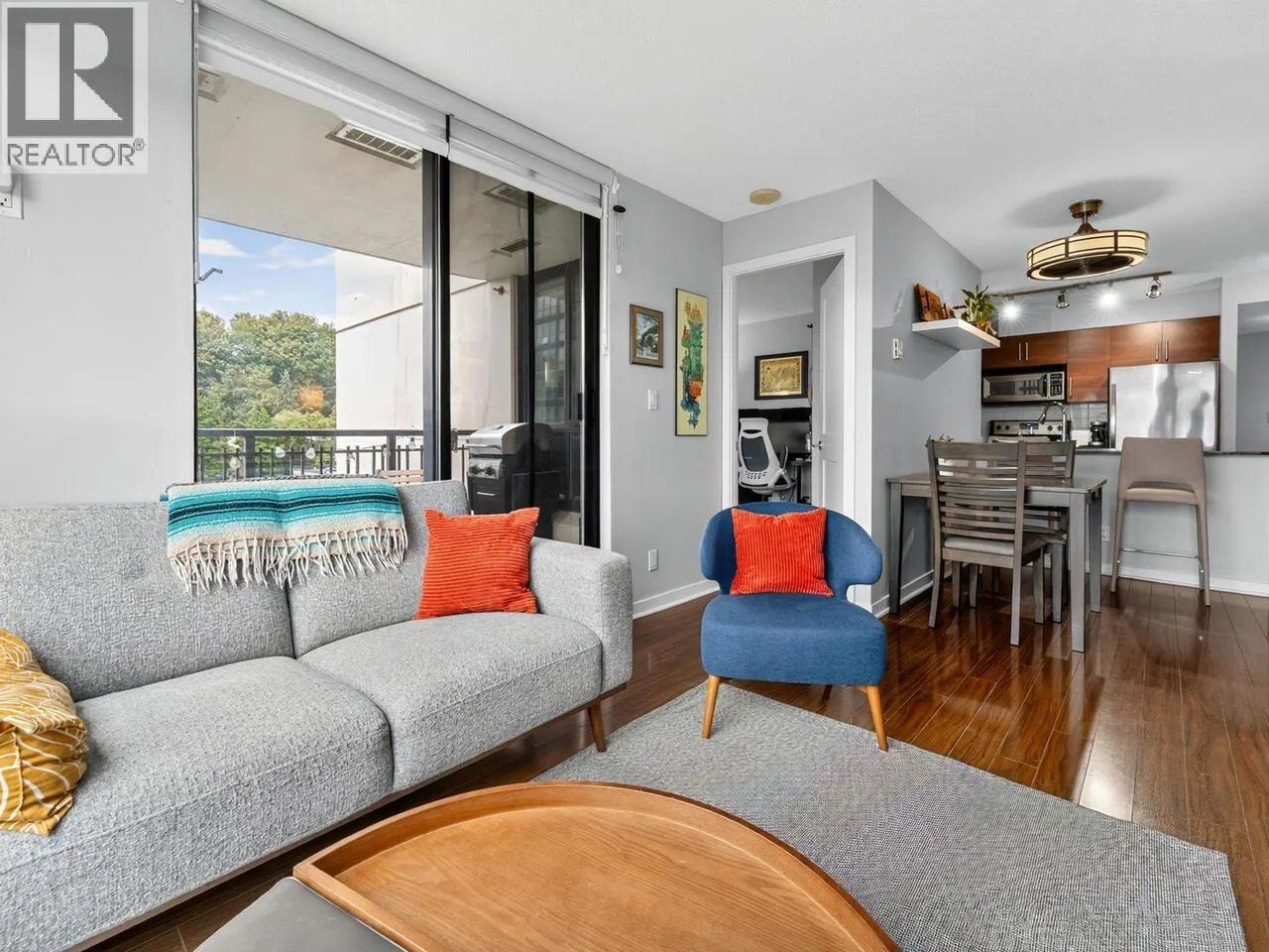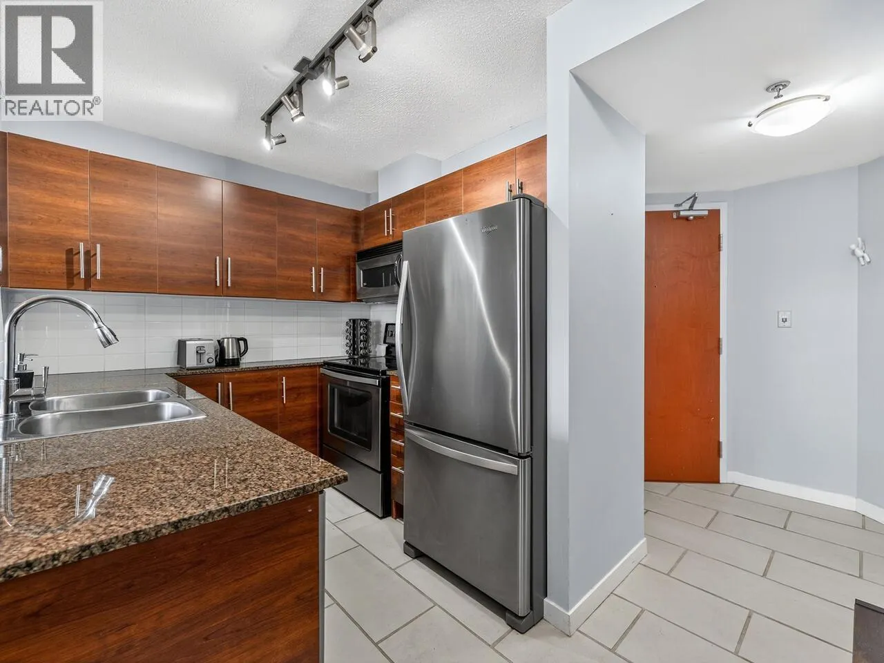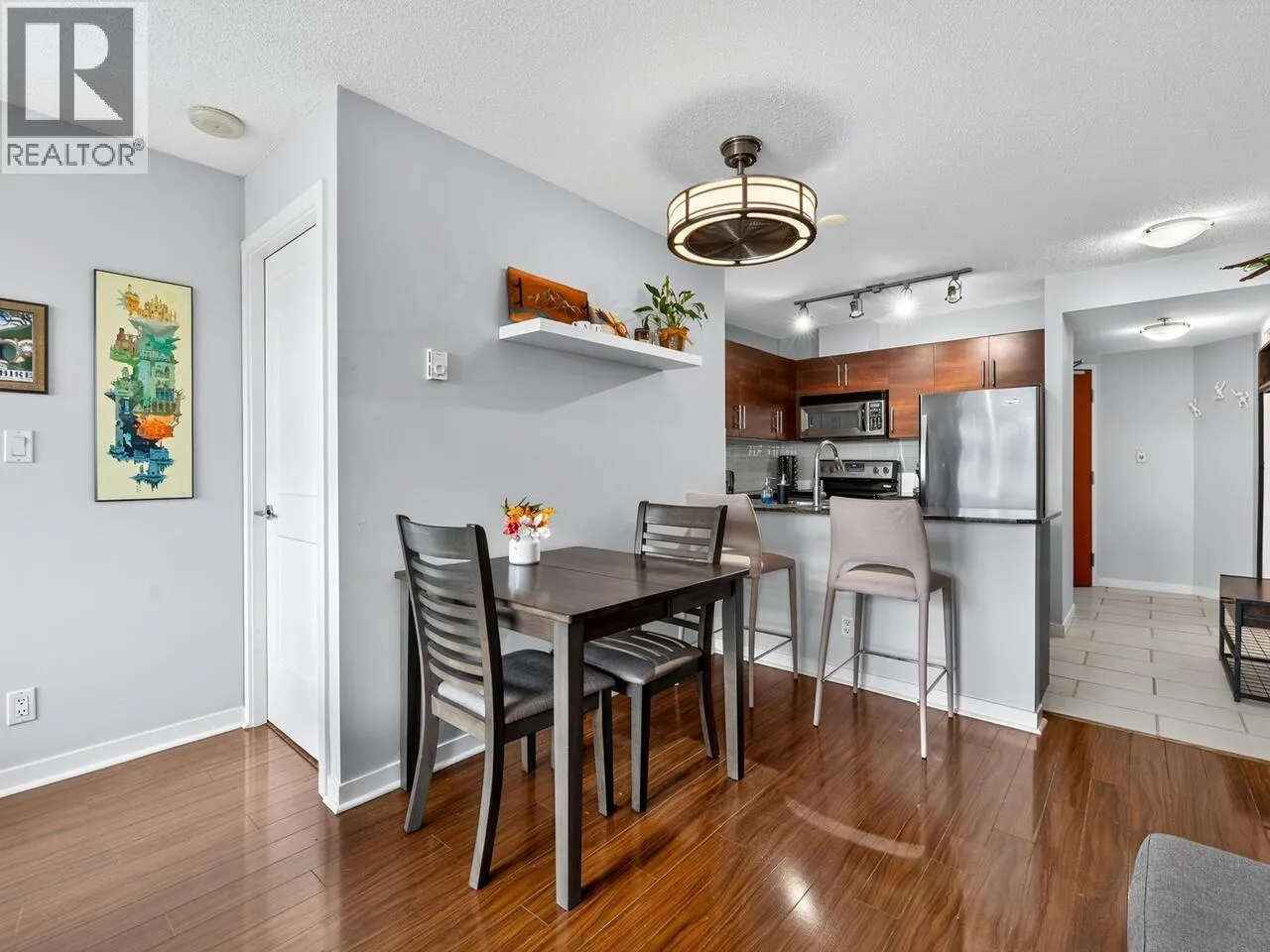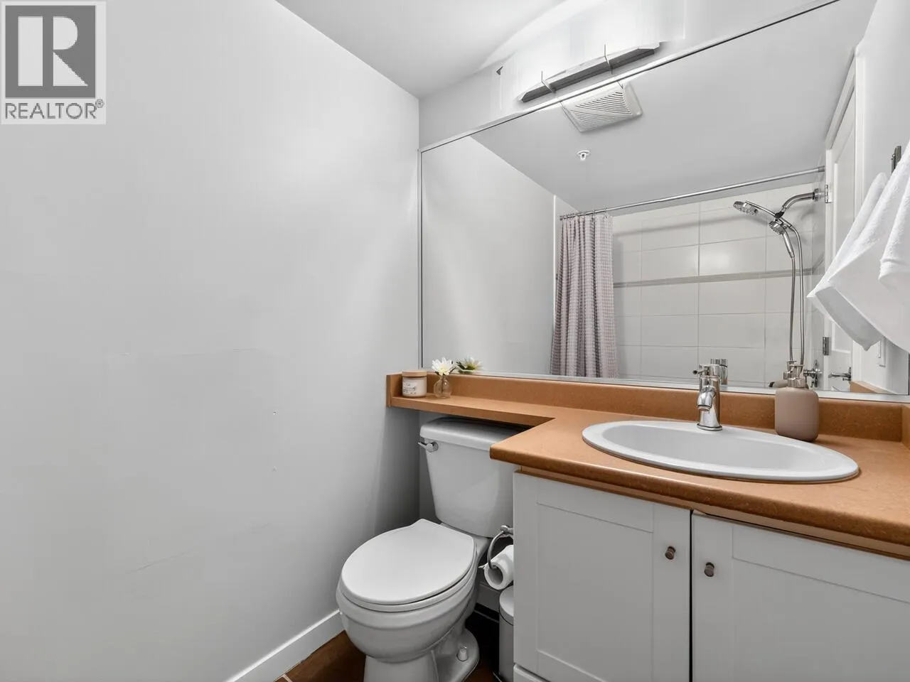 An incredible view is waiting for you at our corner suite home in downtown New West. A well cared for lobby greets you at the entry before you run upstairs. The covered balcony and living room offer an expensive view of New West Quay and Fraser River. Laminate wood floors flow through the living room and dining room, leading to an open kitchen with stainless steel appliances surrounded by granite countertops and a subway tile backsplash. Tile floors in the kitchen lead to the foyer and main four piece bathroom. The primary bedroom offers the same incredible view, and ample closet space sitting opposite the insuite laundry leading to the four piece en suite. The second bedroom sits on the opposite side of suite and looks out to the balcony. Off the lobby you'll find the well appointed fitness center. The News is located just steps from Columbia Square and one block further leads to New West skytrain station. 1 cat or dog allowed. 3D virtual tour at Realtor's site. (id:27476)