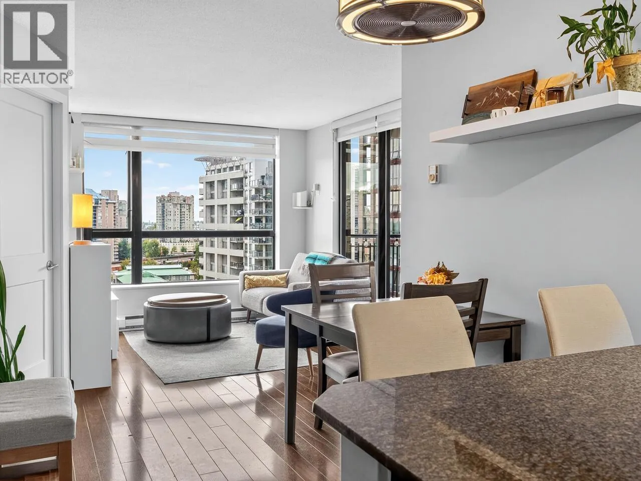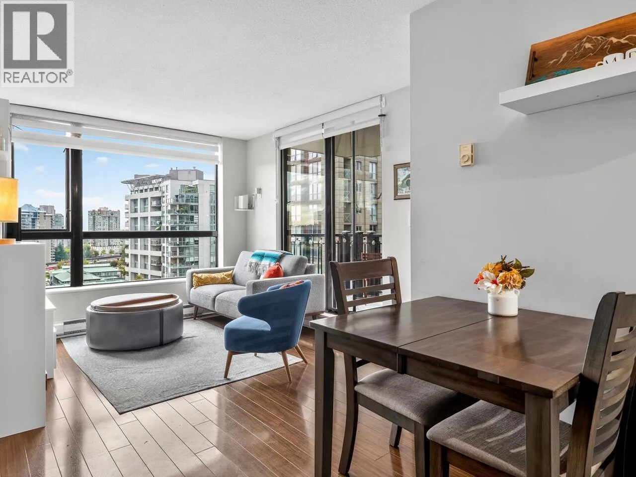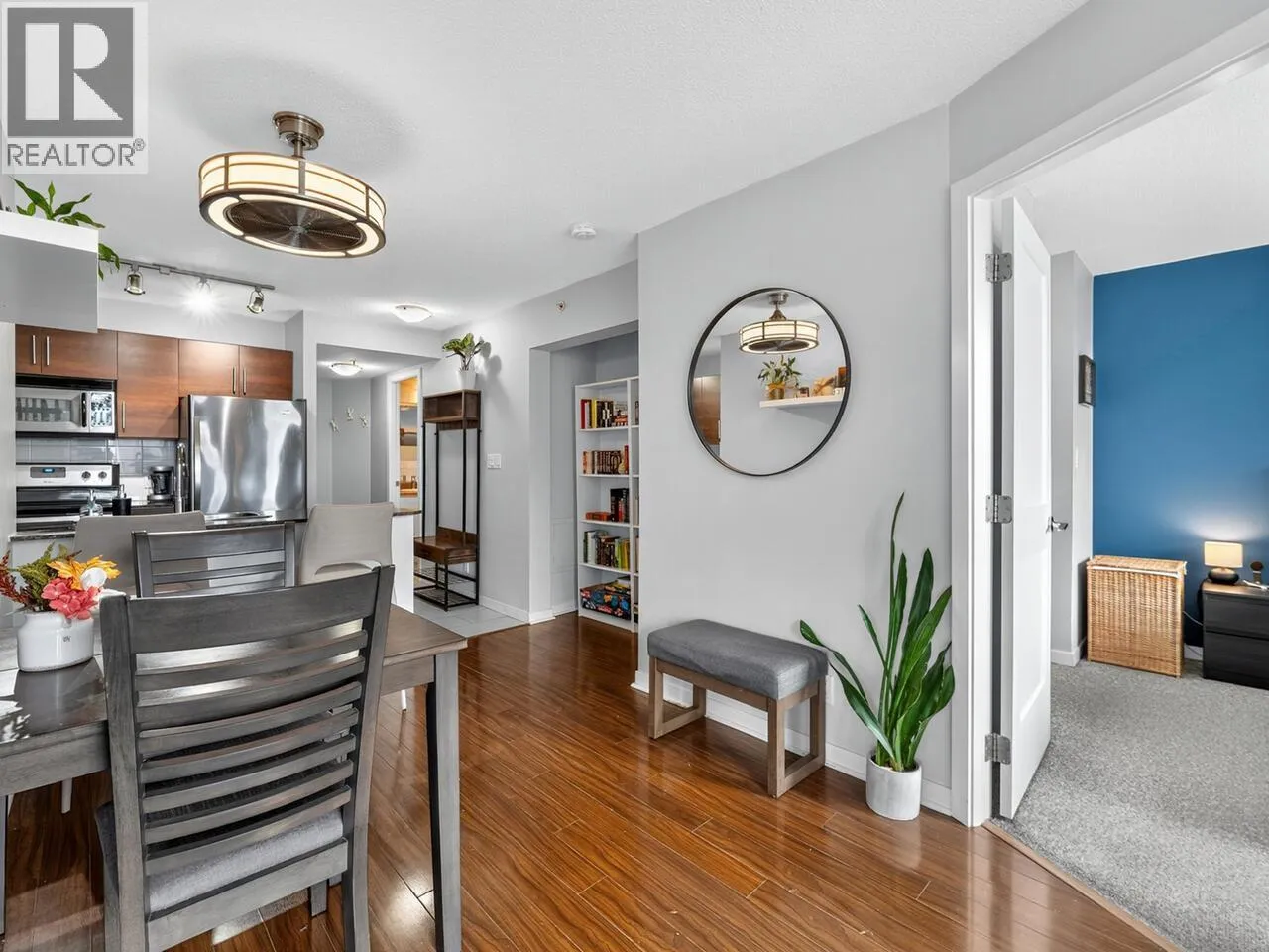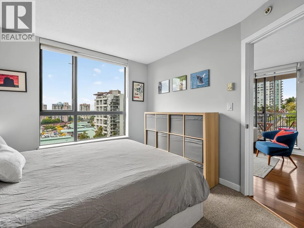 An incredible view is waiting for you at our corner suite home in downtown New West. A well cared for lobby greets you at the entry before you run upstairs. The covered balcony and living room offer an expensive view of New West Quay and Fraser River. Laminate wood floors flow through the living room and dining room, leading to an open kitchen with stainless steel appliances surrounded by granite countertops and a subway tile backsplash. Tile floors in the kitchen lead to the foyer and main four piece bathroom. The primary bedroom offers the same incredible view, and ample closet space sitting opposite the insuite laundry leading to the four piece en suite. The second bedroom sits on the opposite side of suite and looks out to the balcony. Off the lobby you'll find the well appointed fitness center. The News is located just steps from Columbia Square and one block further leads to New West skytrain station. 1 cat or dog allowed. 3D virtual tour at Realtor's site. (id:27476)