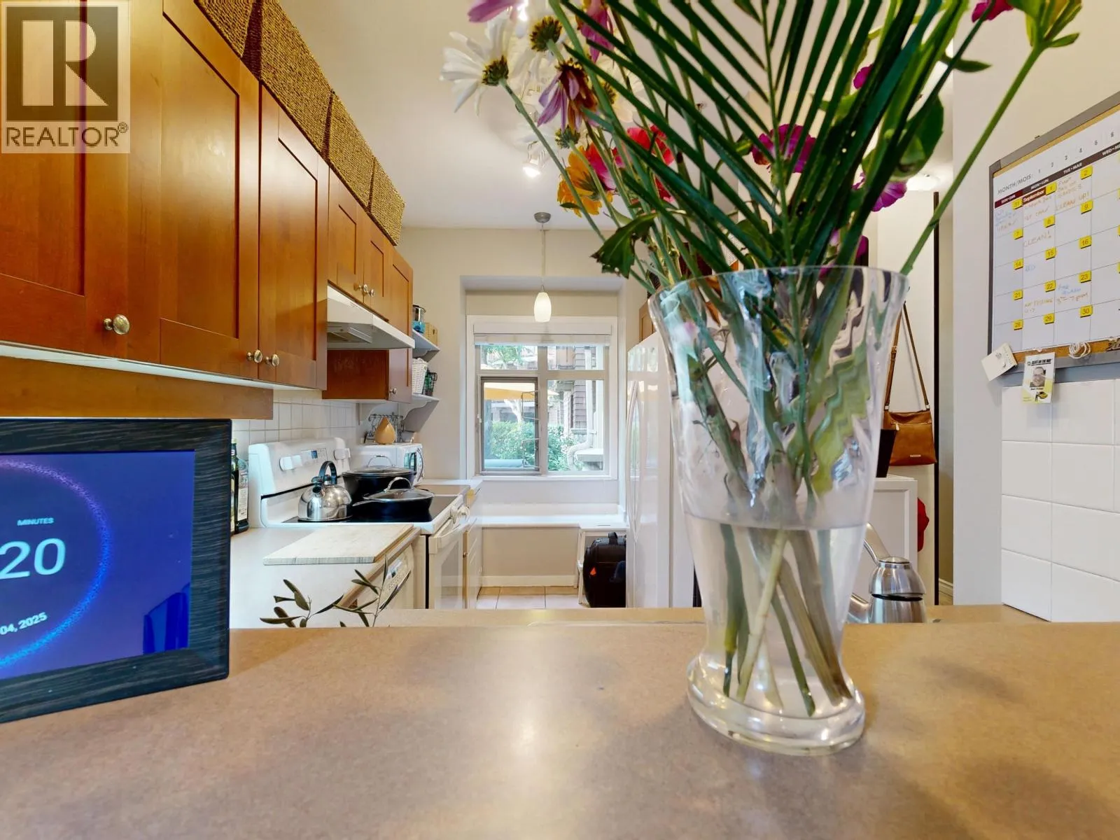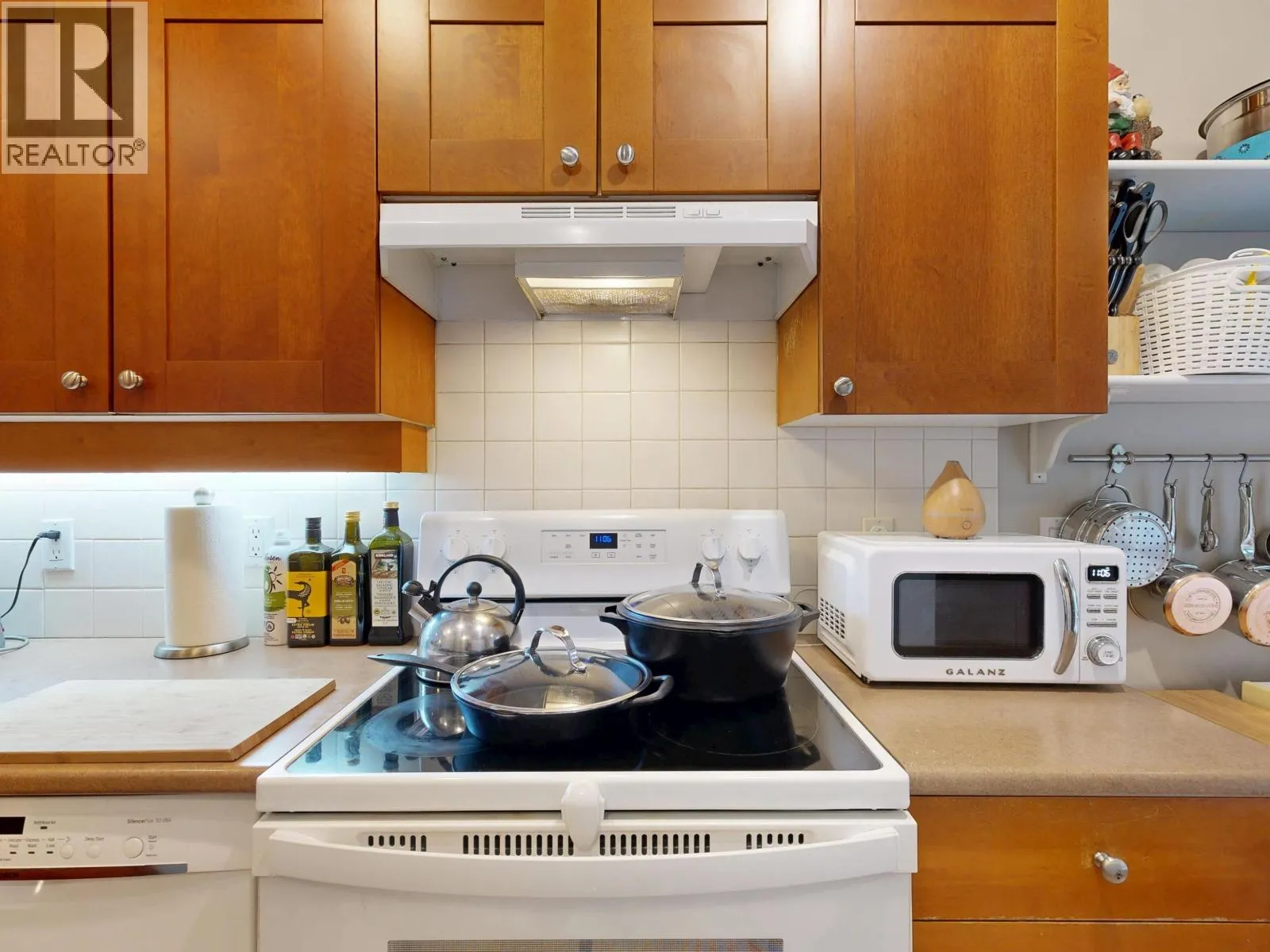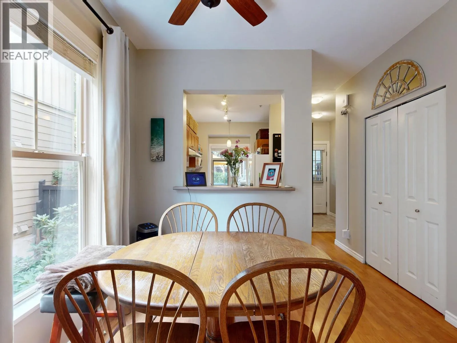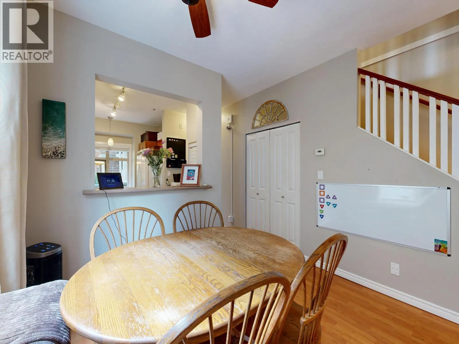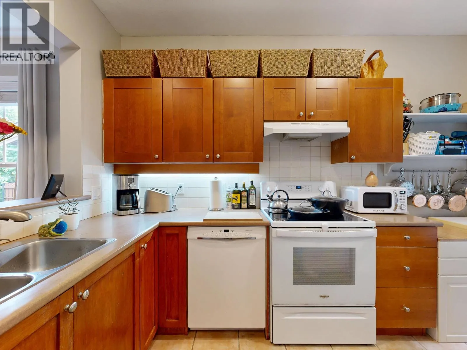 Spacious 2-bedroom, 928 sq. ft. end-unit townhome in the sought-after Whistler-inspired Crofton complex, overlooking a quiet inner courtyard. This bright home features a charming front porch, 9´ ceilings, laminate/tile flooring, gas fireplace, and an open-concept layout. The maple kitchen offers a cozy eating area, while the living room opens to a covered balcony-ideal year-round. Upstairs includes in-suite laundry and a sunlit primary bedroom with cheater ensuite. Just steps to Queen´s Park, Canada Games Pool, the Justice Institute, schools, shopping, and transit. (id:27476)
