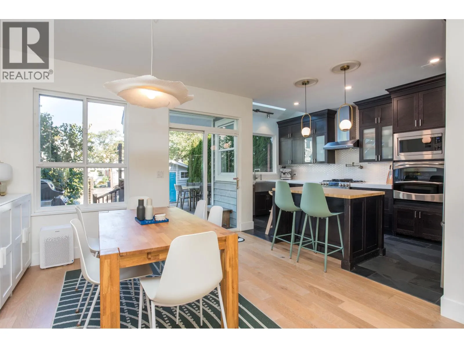 Welcome to this beautifully updated Craftsman style family home in the desireable Queensborough community of Port Royal. Step inside to an inviting open-concept main floor featuring 9' ceilings, white oak flooring, gas fireplace (2024) and A/C (HVac 2025) for year round comfort. The custom kitchen is a chef's dream with a 6 burner gas range, pot filler, wall oven and plenty of workspace for cooking and entertaining. 4 beds up (see plan) and 2 full baths, primary ensuite reno (2021). Amazing natural light from large windows and skylights, creating a bright and airy atmosphere throughout. Large back deck, fenced yard, storage shed and lane access with 2-3 parking. New roof 2022, poly B removed 2021. Steps to Port Royal trail, shops, parks and the Q-Q ferry Book your private showing! (id:27476)