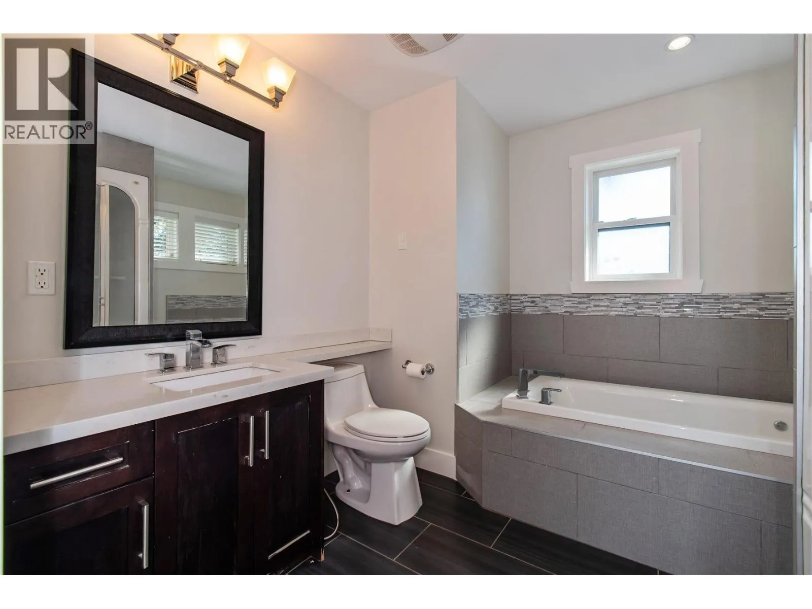 Located in a quiet family-friendly neighborhood in New West, this well maintained half duplex is ideal for families or investors. Spanning 3 levels, it features 8 bedrooms and 4.5 baths, offering versatile living options. The main floor boasts a bright open-concept living/dining area and a modern kitchen, along with a bedroom with ensuite & 2 piece powder room. Upstairs, find 3 spacious bedrooms, including a primary suite with a walk in closet and private 4 piece ensuite. The fully finished 2 bedroom basement suite with a separate entrance provides excellent rental income potential or space for extended family. Additional highlights include detached/attached garages, a private backyard, and prime location just minutes from schools, parks, transit and shopping, all on a peaceful street. (id:27476)