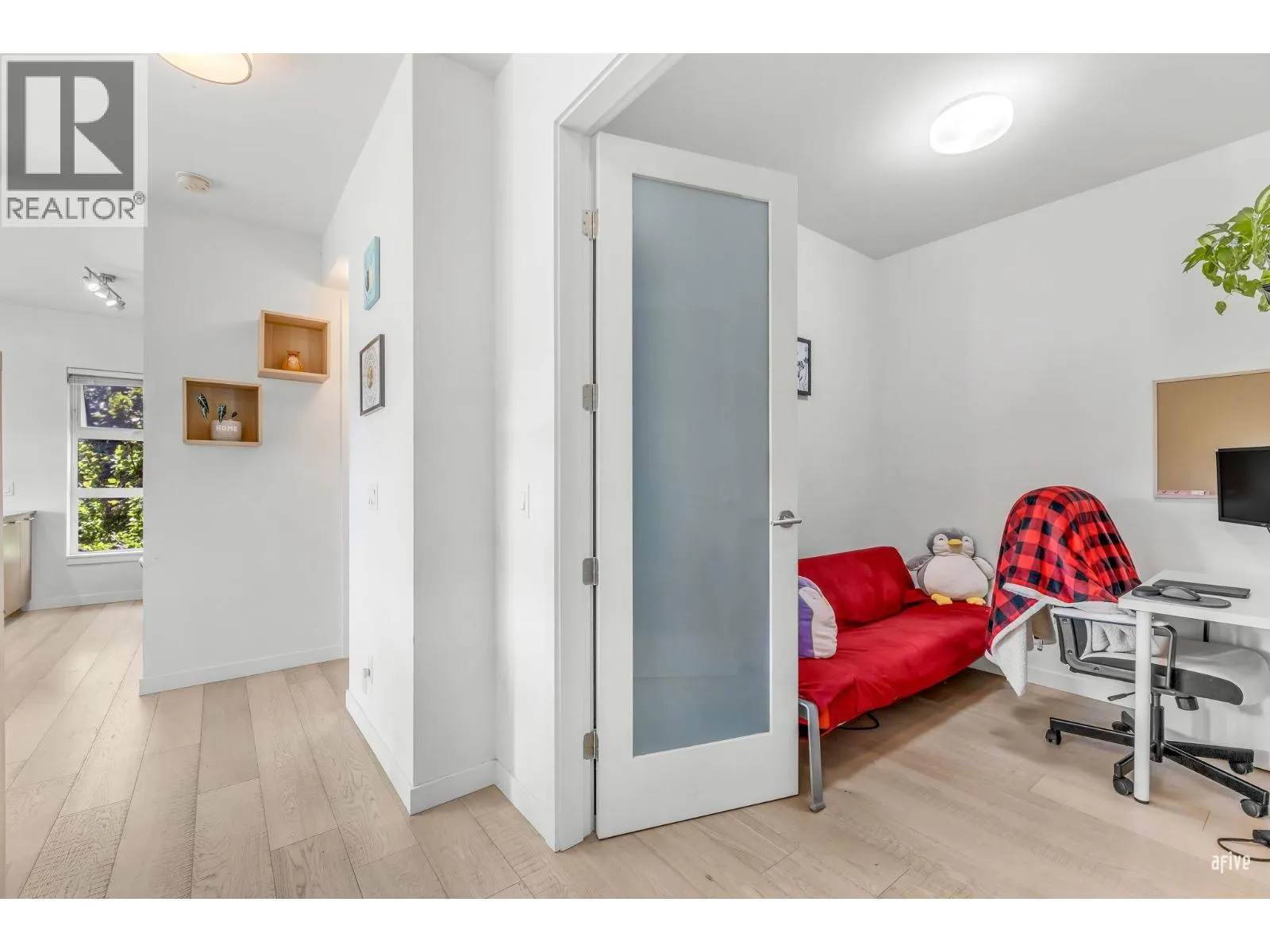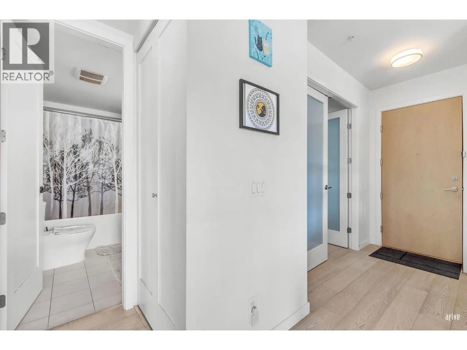 Prime location meets modern living in the heart of Queensborough! This bright and spacious 1 Bed + Den corner unit offers 767 sqft of stylish living, featuring high ceilings, oversized windows, and a private patio balcony with lush green views - perfect for relaxing or entertaining. Enjoy a modern open layout, quality finishes, and plenty of natural light. Steps from Port Royal Park, scenic river trails, QtoQ ferry, schools, shopping, and transit. Includes 1 parking + 1 locker. Pet-friendly and rental allowed - a perfect home or investment! Open House - Sat/Sun 2-4PM (id:27476)
