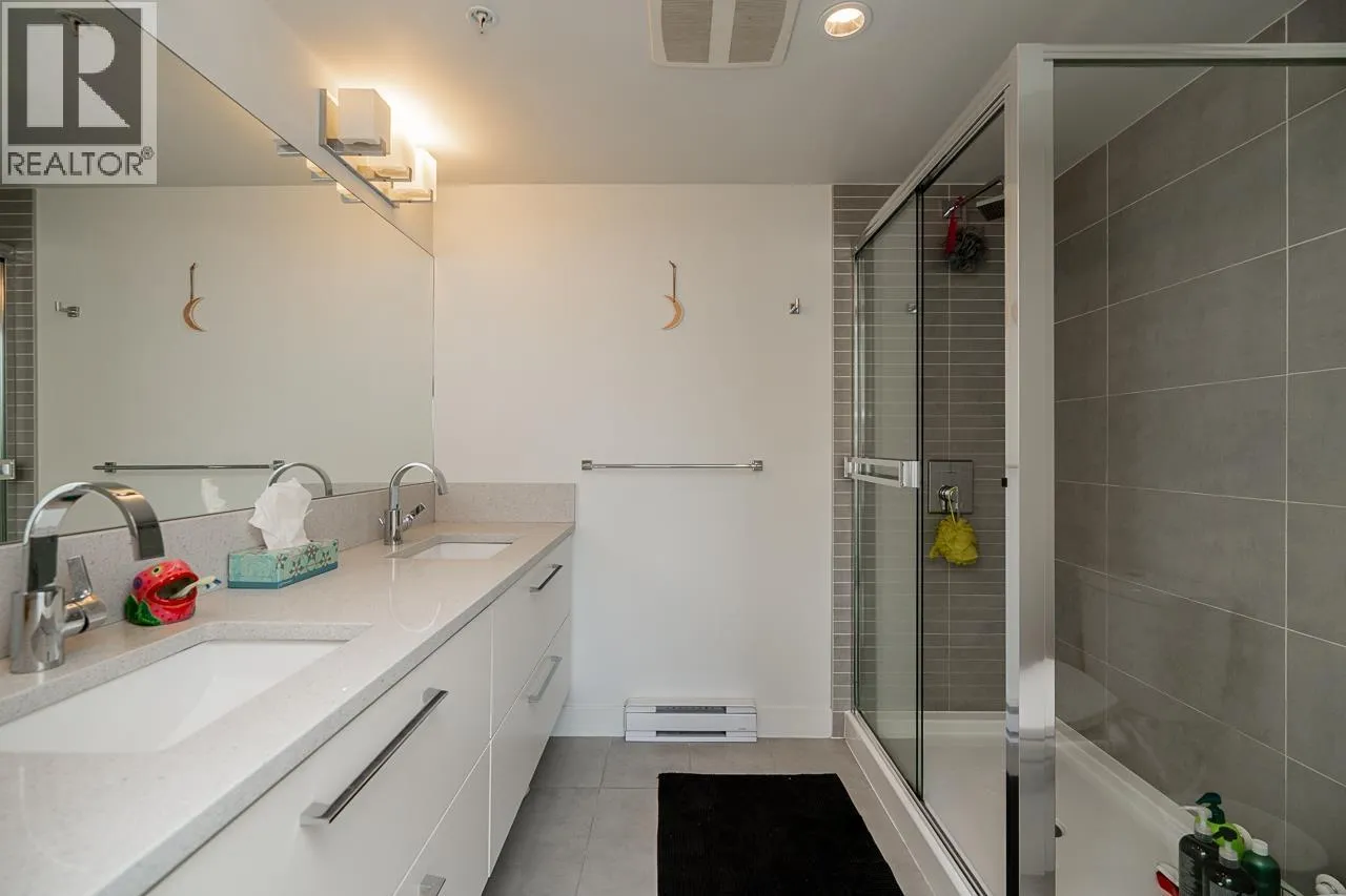 Elevate your lifestyle with this rarely available 2-bedroom, 2-bathroom residence at the sought-after Trapp + Holbrook, ideally situated in the heart of the city. Thoughtfully designed with a functional layout featuring separated bedrooms for added privacy, this home offers breathtaking river and city views. The open-concept kitchen, dining, and living area-anchored by an oversized island-is perfect for entertaining. The primary suite includes double vanities, and both bedrooms provide generous closet space. Residents enjoy access to premium amenities including a fitness centre, rooftop garden, amenity room, secured parking, and storage. With pet-friendly and rental-friendly policies, flexibility is built in. Conveniently located within walking distance to the SkyTrain, shopping, and dining-including El Santo restaurant, a café, spa, and pet care services right on site-this isn´t just a home, it´s a complete lifestyle experience. (id:27476)
