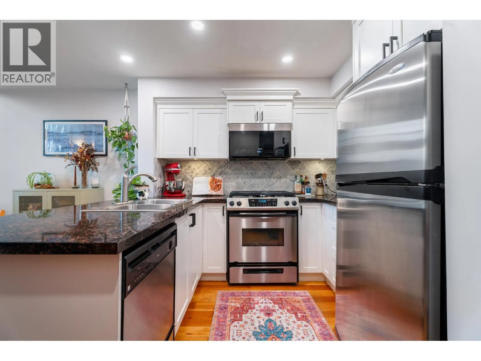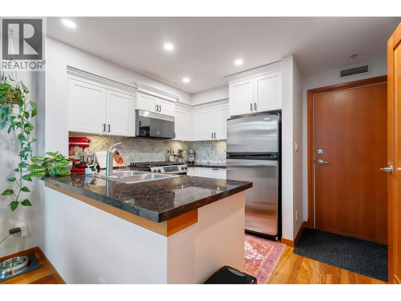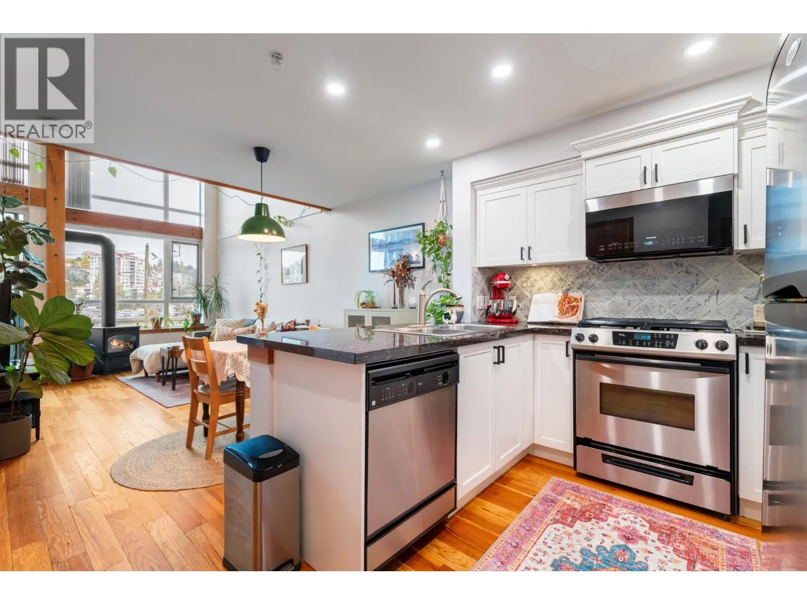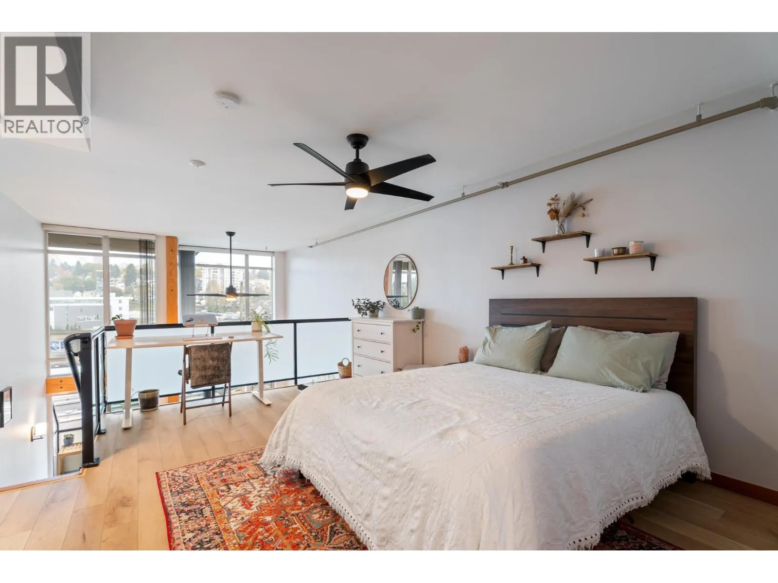Spacious 1-bed, 1.5-bath loft at Murano Lofts! Bright open layout with 17-ft ceilings, large windows, and a private north-facing balcony. Features a gas fireplace, in-suite laundry, and 1 parking. Pet-friendly building with gym and gardens. Steps to the Boardwalk, SkyTrain, River Market, and shops. Urban living in a vibrant Quay community! (id:27476)