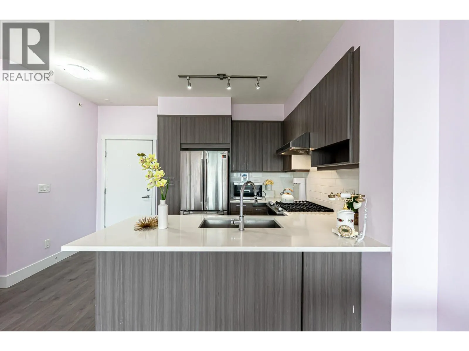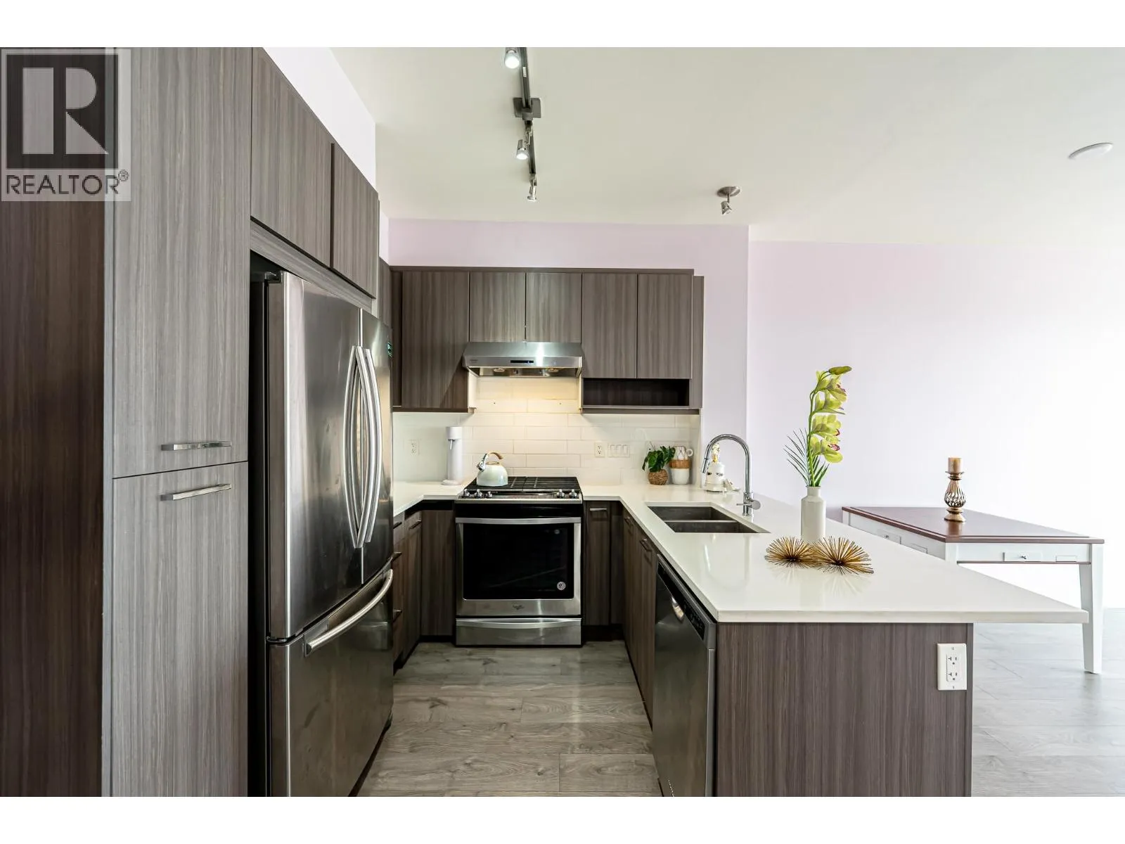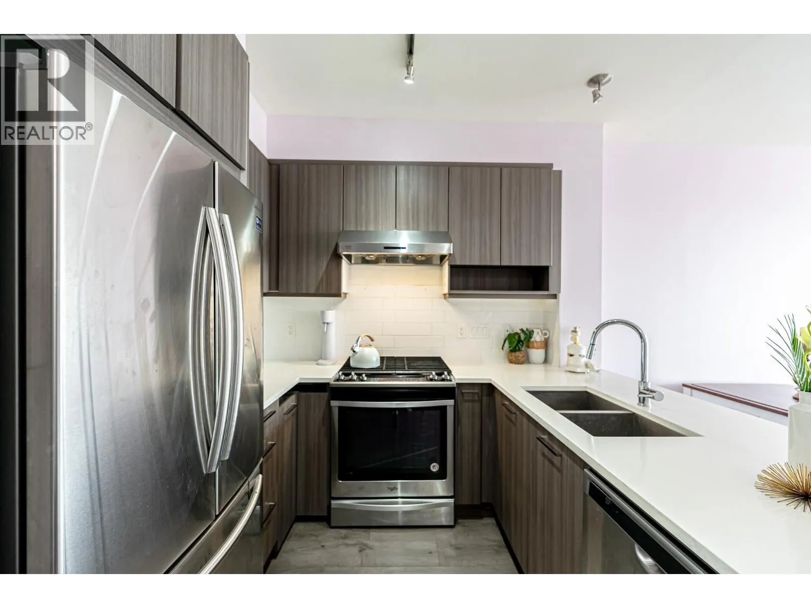 Rarely available top level SE exposure with Fraser river view. 2 bed 2 bath home , a large balcony provides extra room for enjoyment! Beautiful open floorplan with 9' ceilings , high-end kitchen with stainless steel appliances, white quartz countertops and a gas range, newer high efficiency range hood, upgraded microwave, Moen shower heads, newer paint. Full size washer and dryer in the suite. There´s a party room with a kitchen, a pool table, media room and a playground. Close to Riverfront dyke trail & Expo-line Skytrain and just 15 mins drive to Metrotown, 5mins to newwest shopping centre, 10 mins walk to save on food & liquor store. 1 parking stall close the entrance, a personal bike locker and another storage locker included. (id:27476)