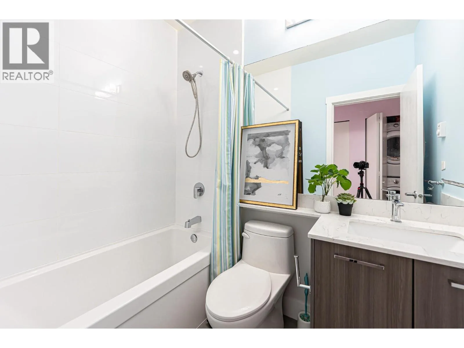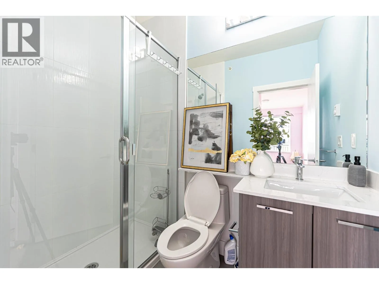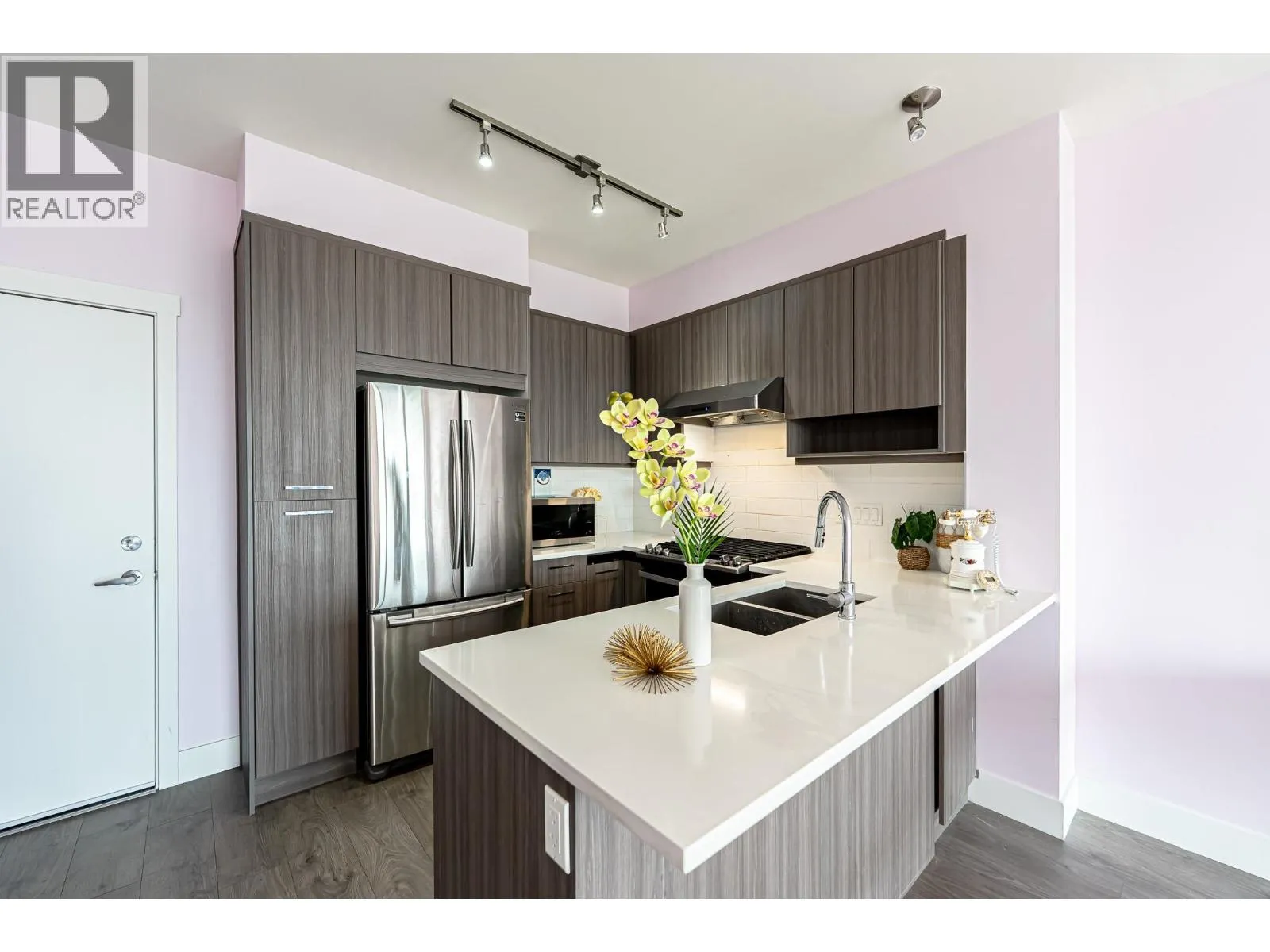 Rarely available top level SE exposure with Fraser river view. 2 bed 2 bath home , a large balcony provides extra room for enjoyment! Beautiful open floorplan with 9' ceilings , high-end kitchen with stainless steel appliances, white quartz countertops and a gas range, newer high efficiency range hood, upgraded microwave, Moen shower heads, newer paint. Full size washer and dryer in the suite. There´s a party room with a kitchen, a pool table, media room and a playground. Close to Riverfront dyke trail & Expo-line Skytrain and just 15 mins drive to Metrotown, 5mins to newwest shopping centre, 10 mins walk to save on food & liquor store. 1 parking stall close the entrance, a personal bike locker and another storage locker included. (id:27476)