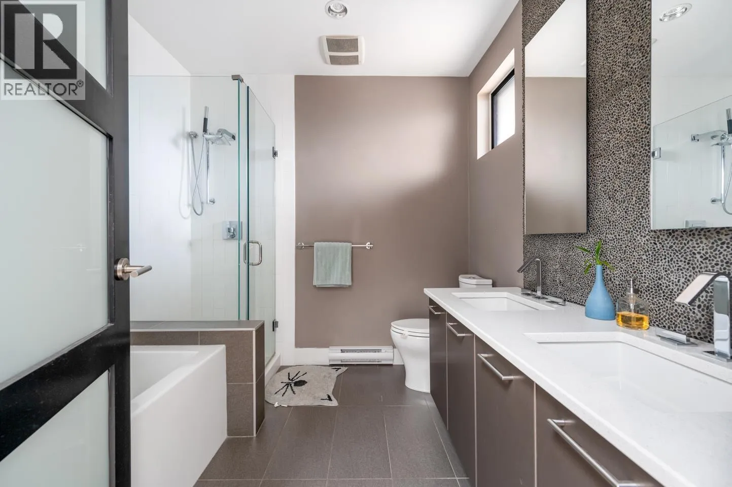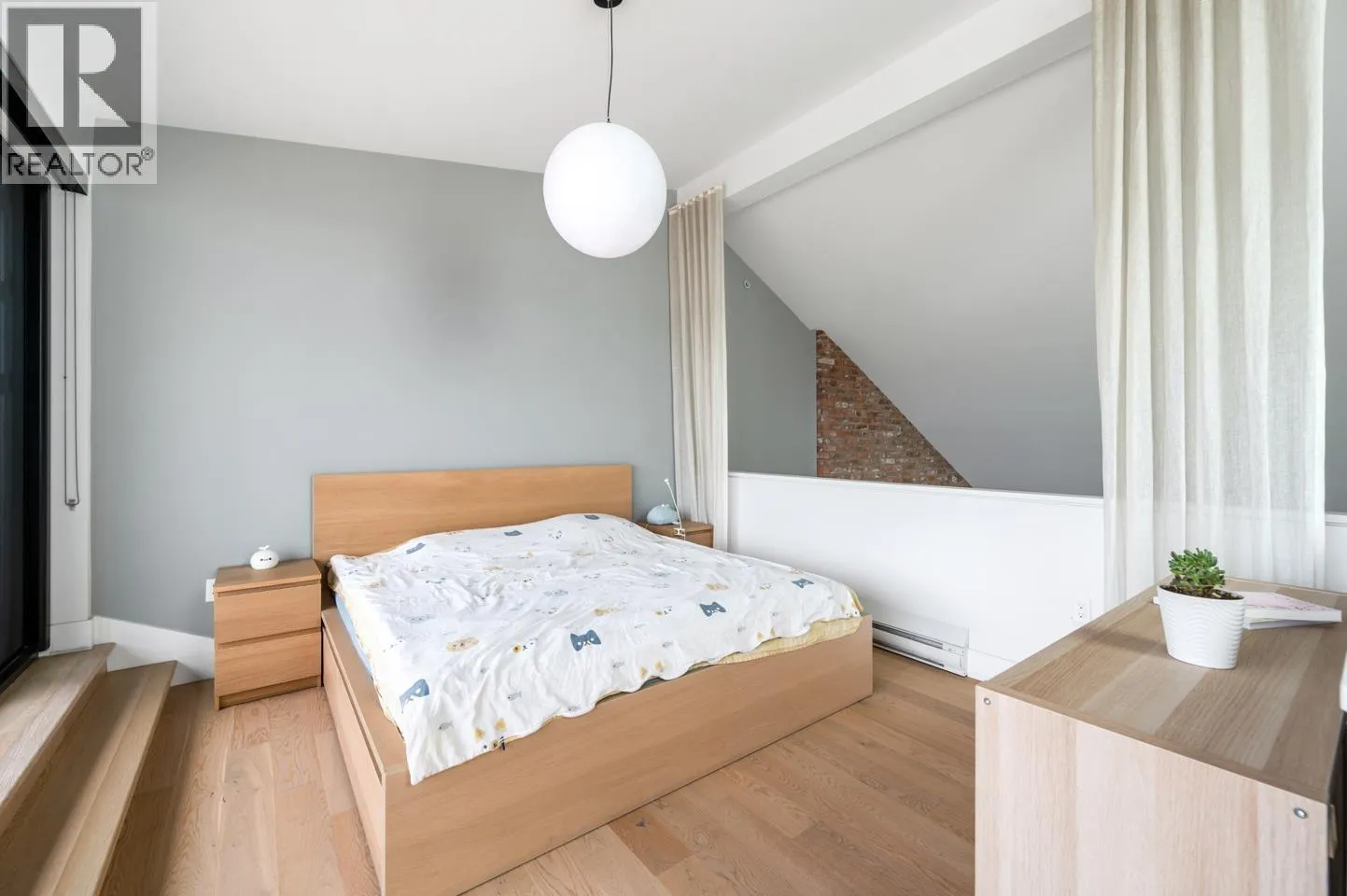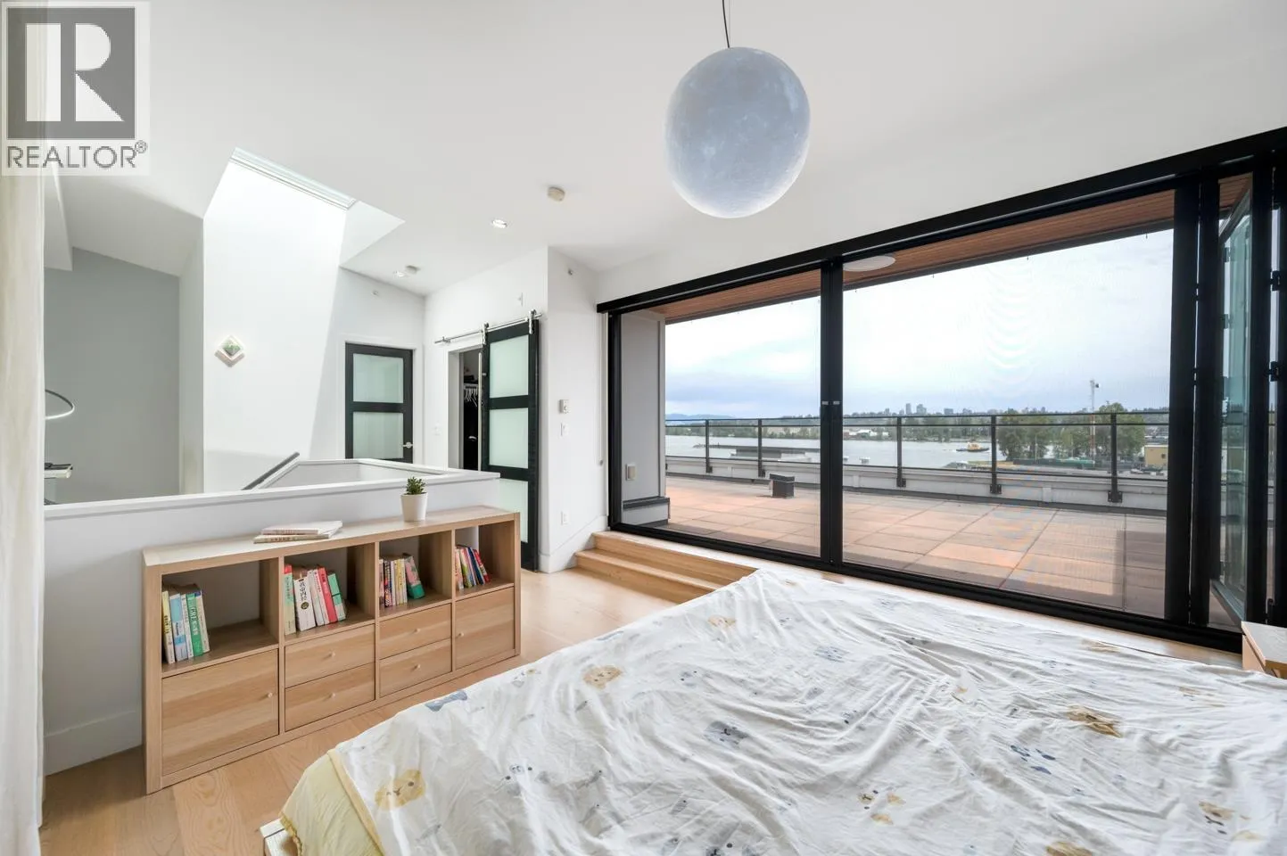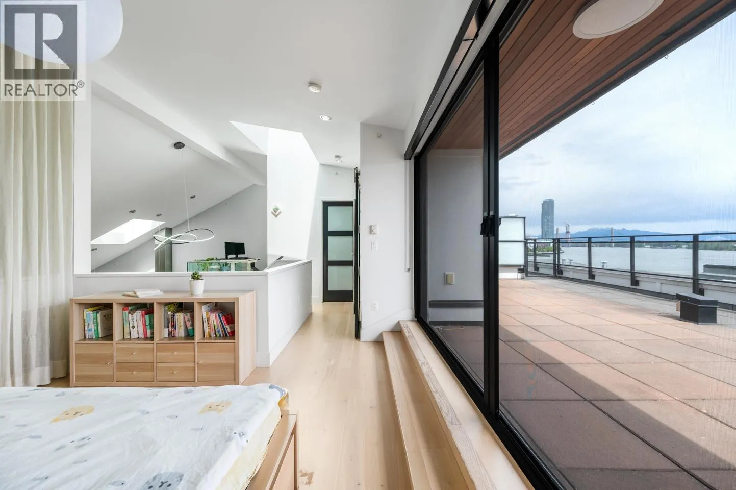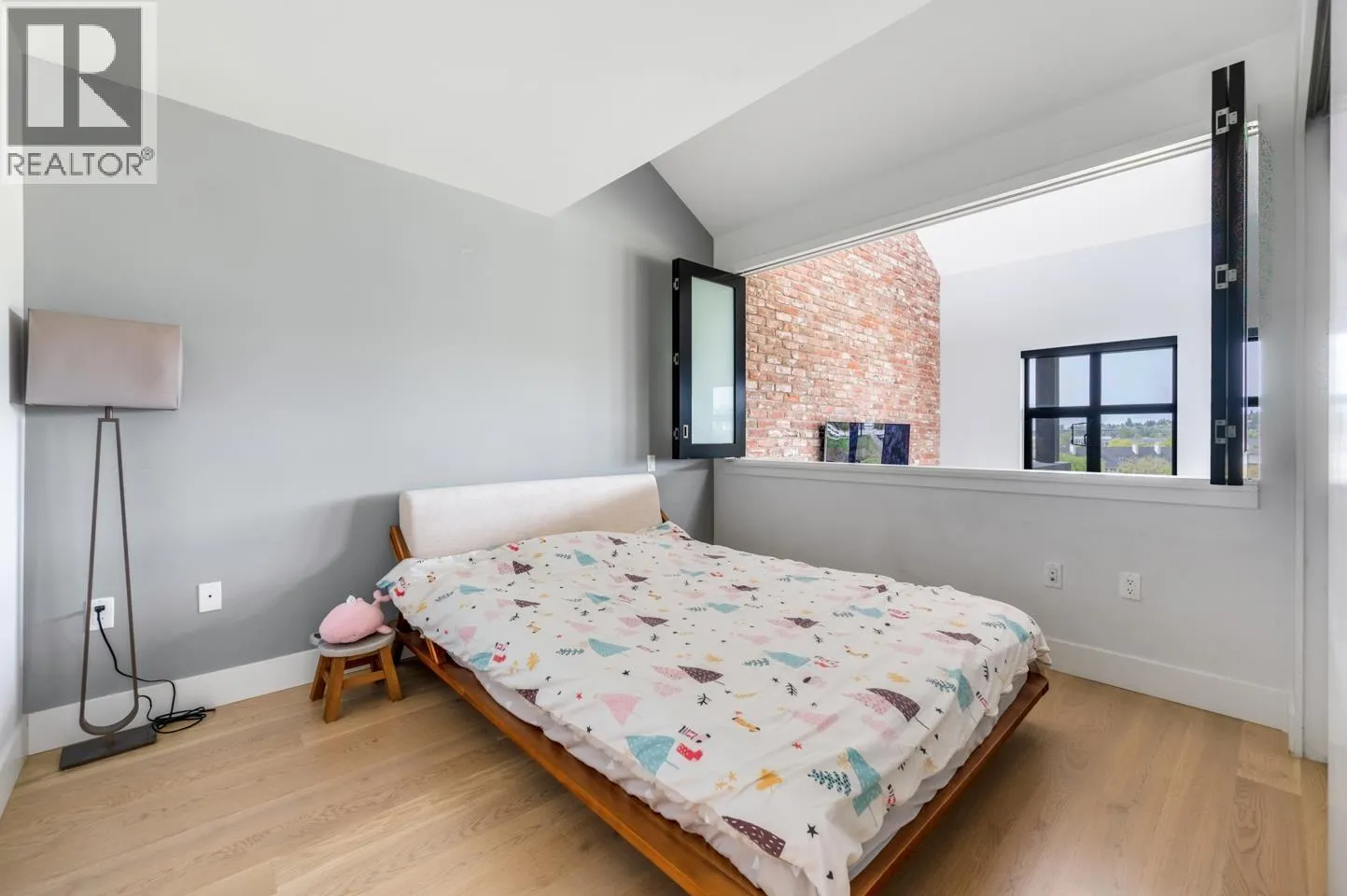 This rarely available penthouse offers a unique blend of modern elegance and urban charm. Featuring 2 bedrooms plus a loft (serve as the master bedroom), this residence boasts 20 ft ceilings, a stunning reclaimed brick feature wall, and an open concept kitchen equipped with quartz countertops and s/s appliances. The spacious dining/living room area provides the perfect setting for entertaining guests. The loft opens up to a magnificent 500 sqf rooftop patio, where you can enjoy mesmerizing water, mountain, and city views. With two parking stalls (one with EV charging rough-in) and one storage locker included, convenience is at your fingertips. Located steps away from the riverfront promenade and the Q2Q ferry, this penthouse offers unparalleled access to the best of New Westminster living. (id:27476)