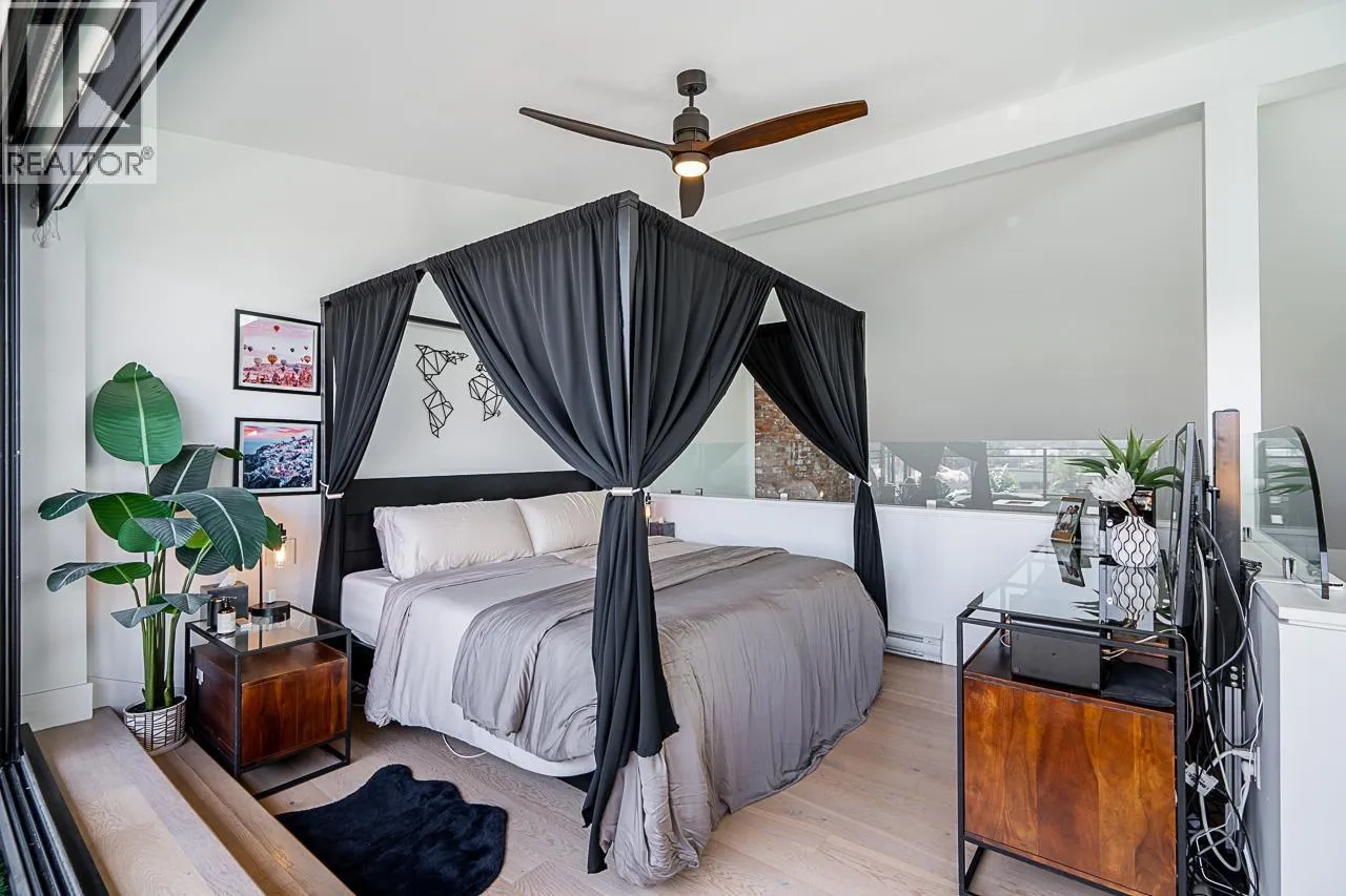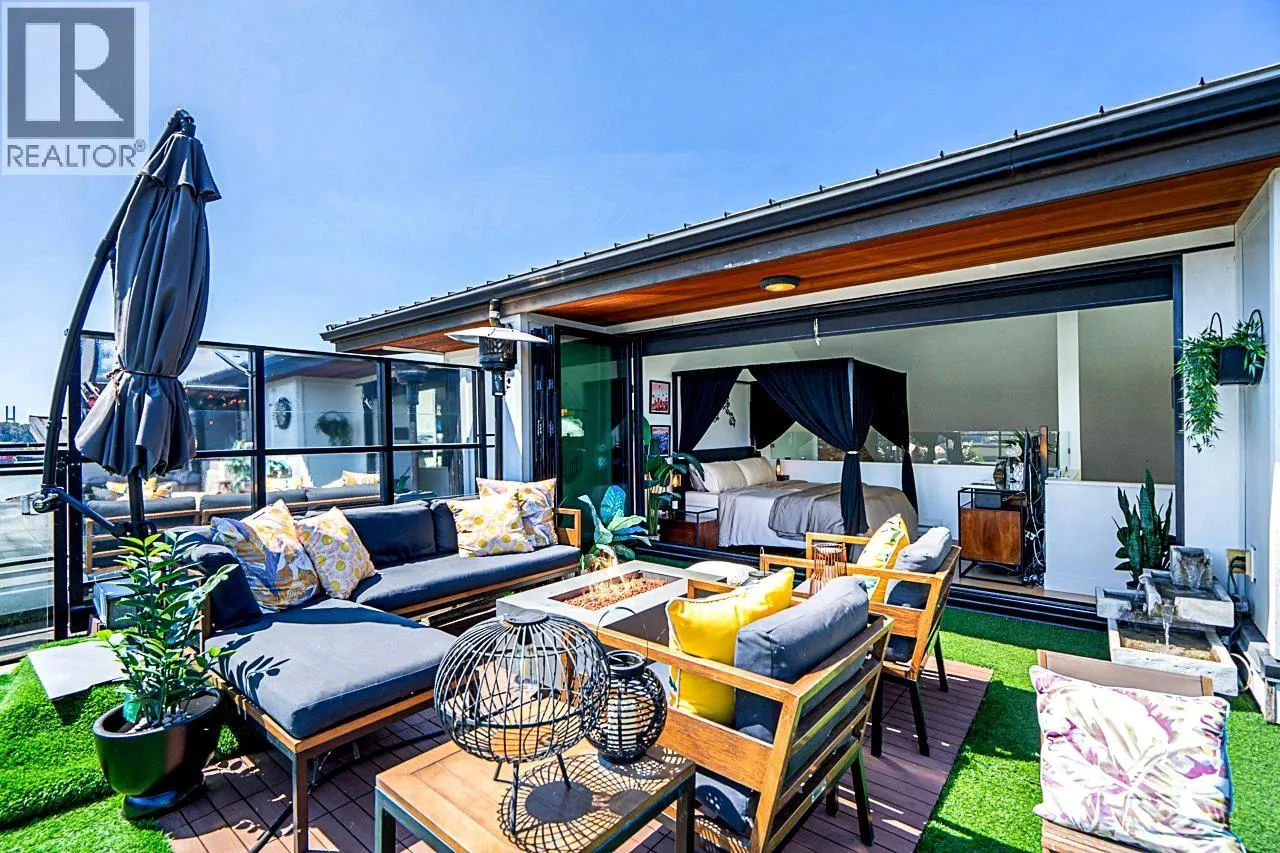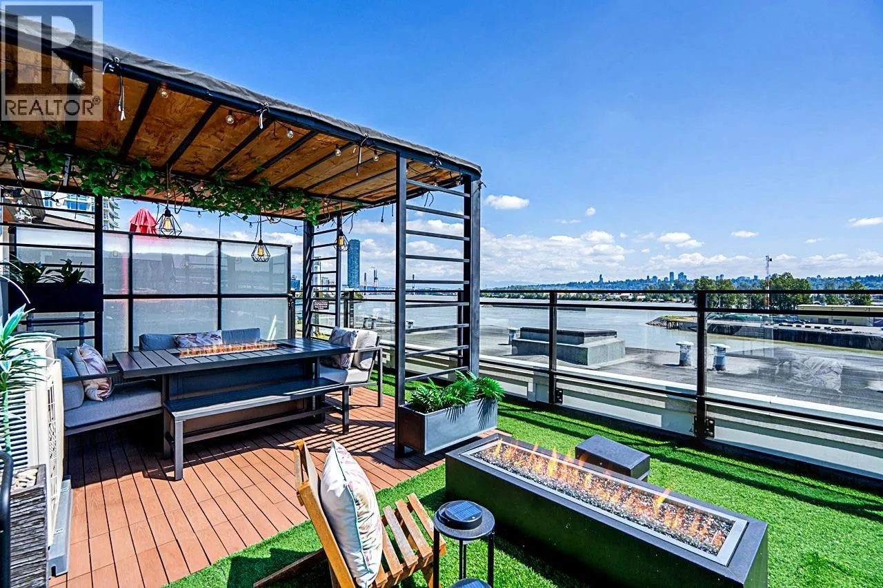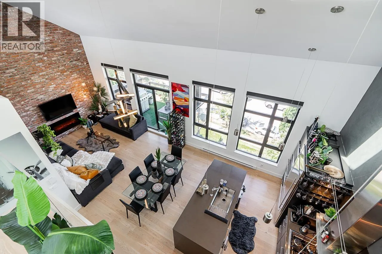 Step into the iconic GLASSHOUSE LOFTS & experience penthouse living like never before. This 3 bed, 2 bath showstopper spans 1,429sqft blending industrial charm with luxury. Main level presents open concept floor plan with dramatic 20ft ceilings, reclaimed brick feature wall & balcony overlooking Port Royal Park. Sleek kitchen with quartz counters, top of the line s/s appliances & gas cooktop. Upstairs offers spa-inspired ensuite leading to dreamy primary bedroom with folding eclipse doors opening to 500sqft private rooftop terrace complete with gas firepits & overlooking Fraser River. Notable features incl. A/C, white oak floors, automated shade & black out blinds, 2 side-by-side parking & XL locker. Unbeatable riverfront location steps to trails & Q2Q ferry. Showings by appointment. (id:27476)