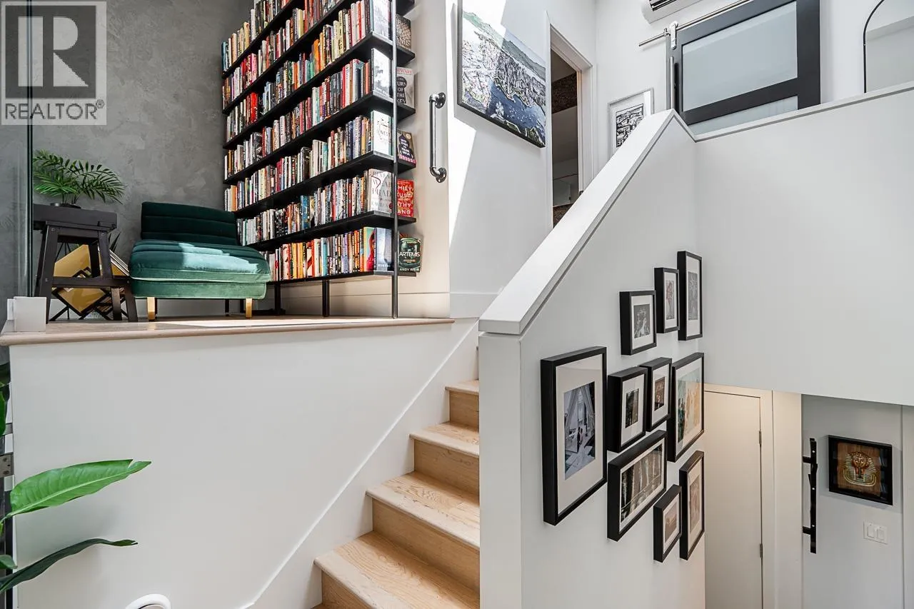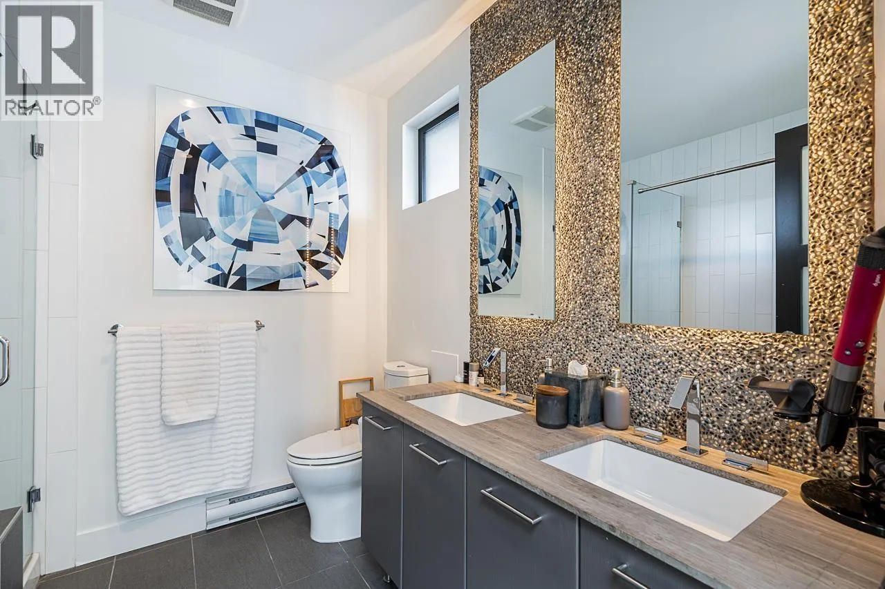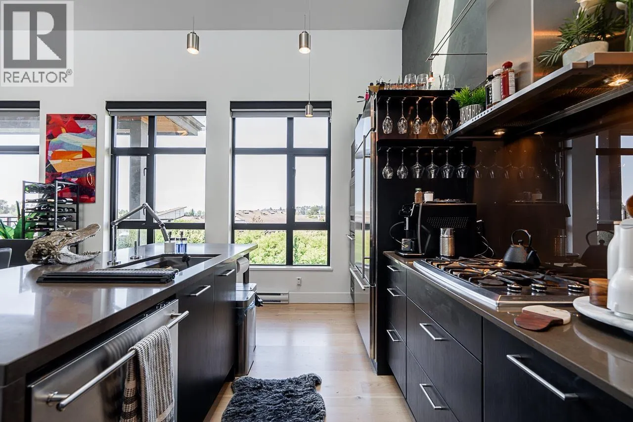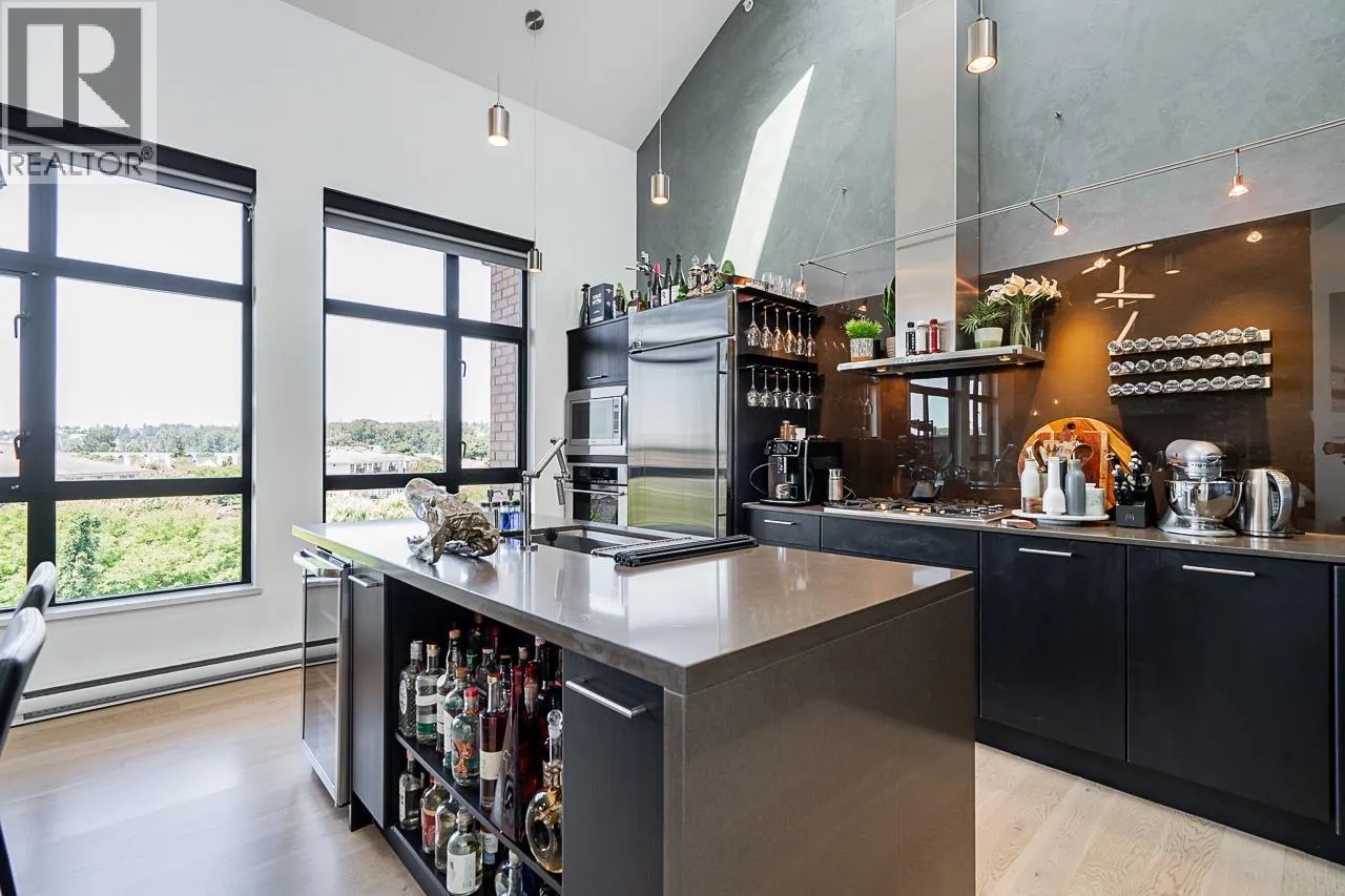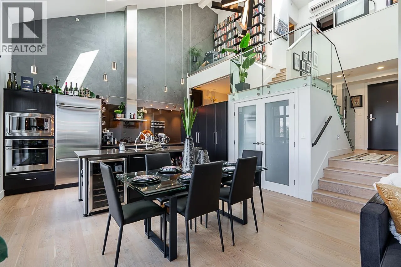 Step into the iconic GLASSHOUSE LOFTS & experience penthouse living like never before. This 3 bed, 2 bath showstopper spans 1,429sqft blending industrial charm with luxury. Main level presents open concept floor plan with dramatic 20ft ceilings, reclaimed brick feature wall & balcony overlooking Port Royal Park. Sleek kitchen with quartz counters, top of the line s/s appliances & gas cooktop. Upstairs offers spa-inspired ensuite leading to dreamy primary bedroom with folding eclipse doors opening to 500sqft private rooftop terrace complete with gas firepits & overlooking Fraser River. Notable features incl. A/C, white oak floors, automated shade & black out blinds, 2 side-by-side parking & XL locker. Unbeatable riverfront location steps to trails & Q2Q ferry. Showings by appointment. (id:27476)