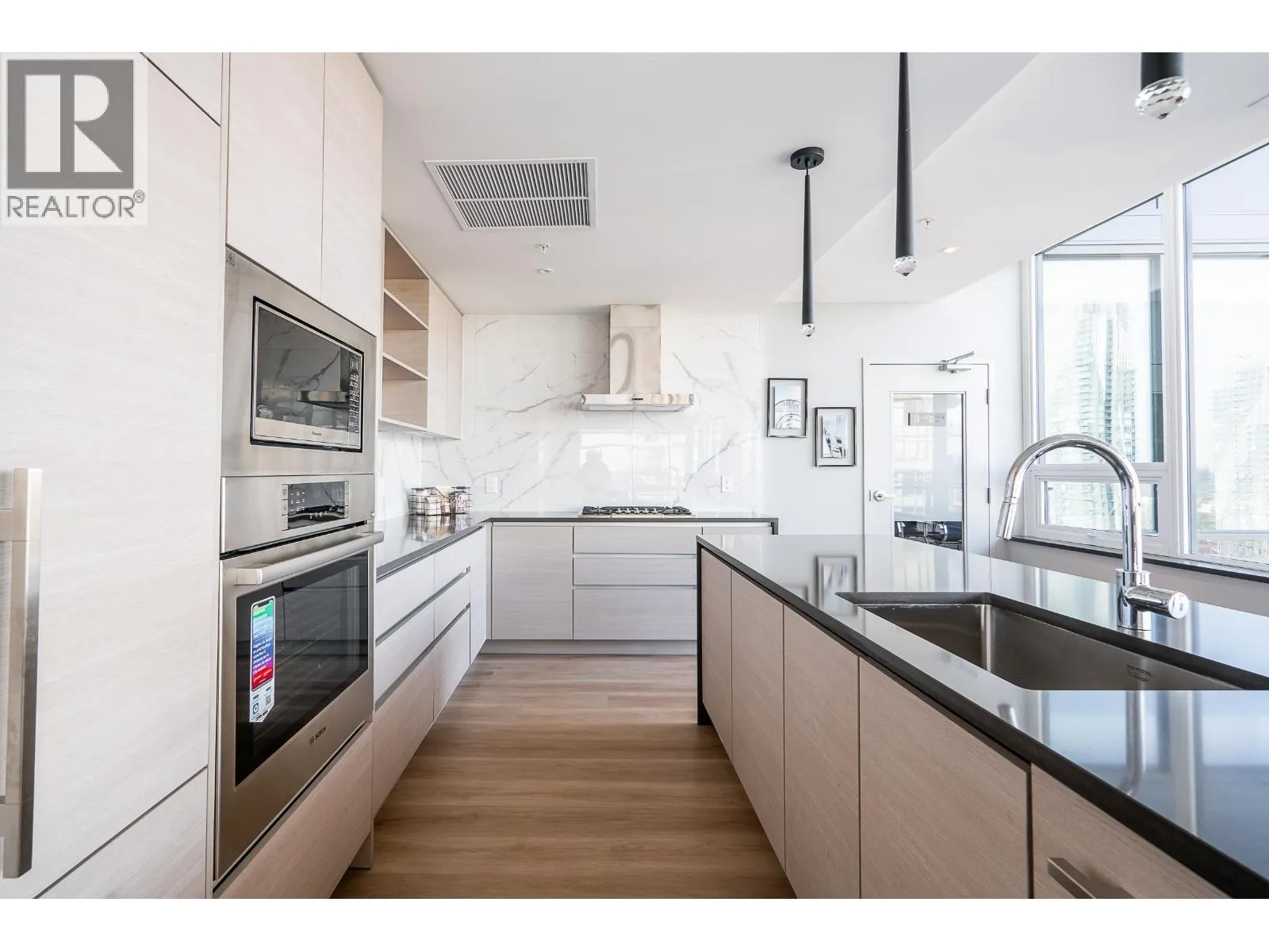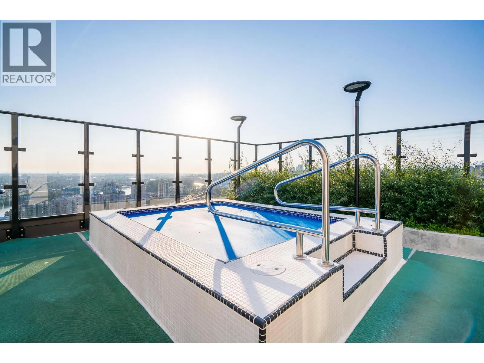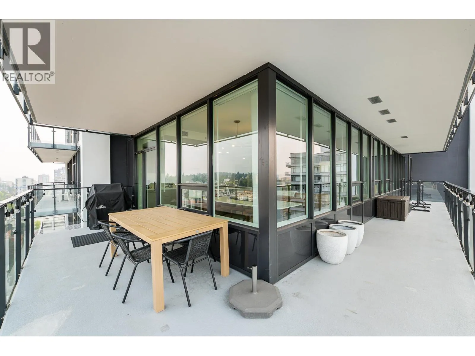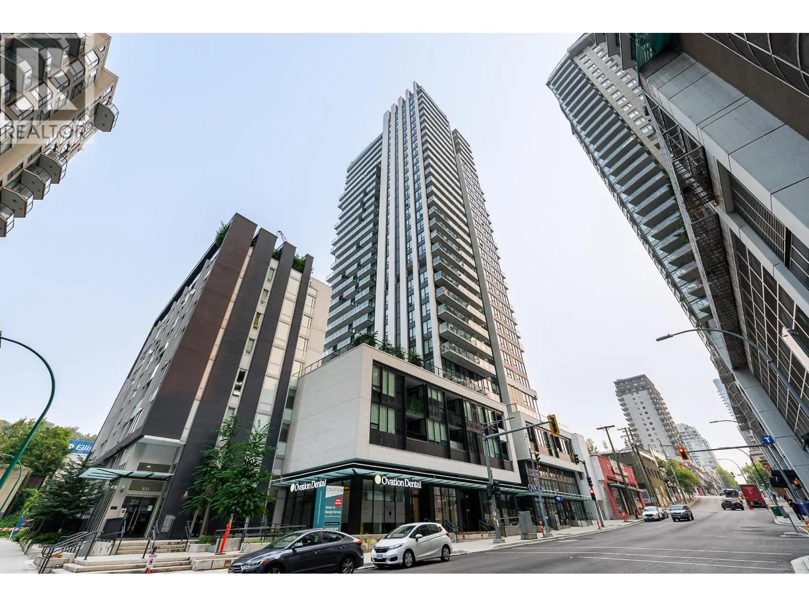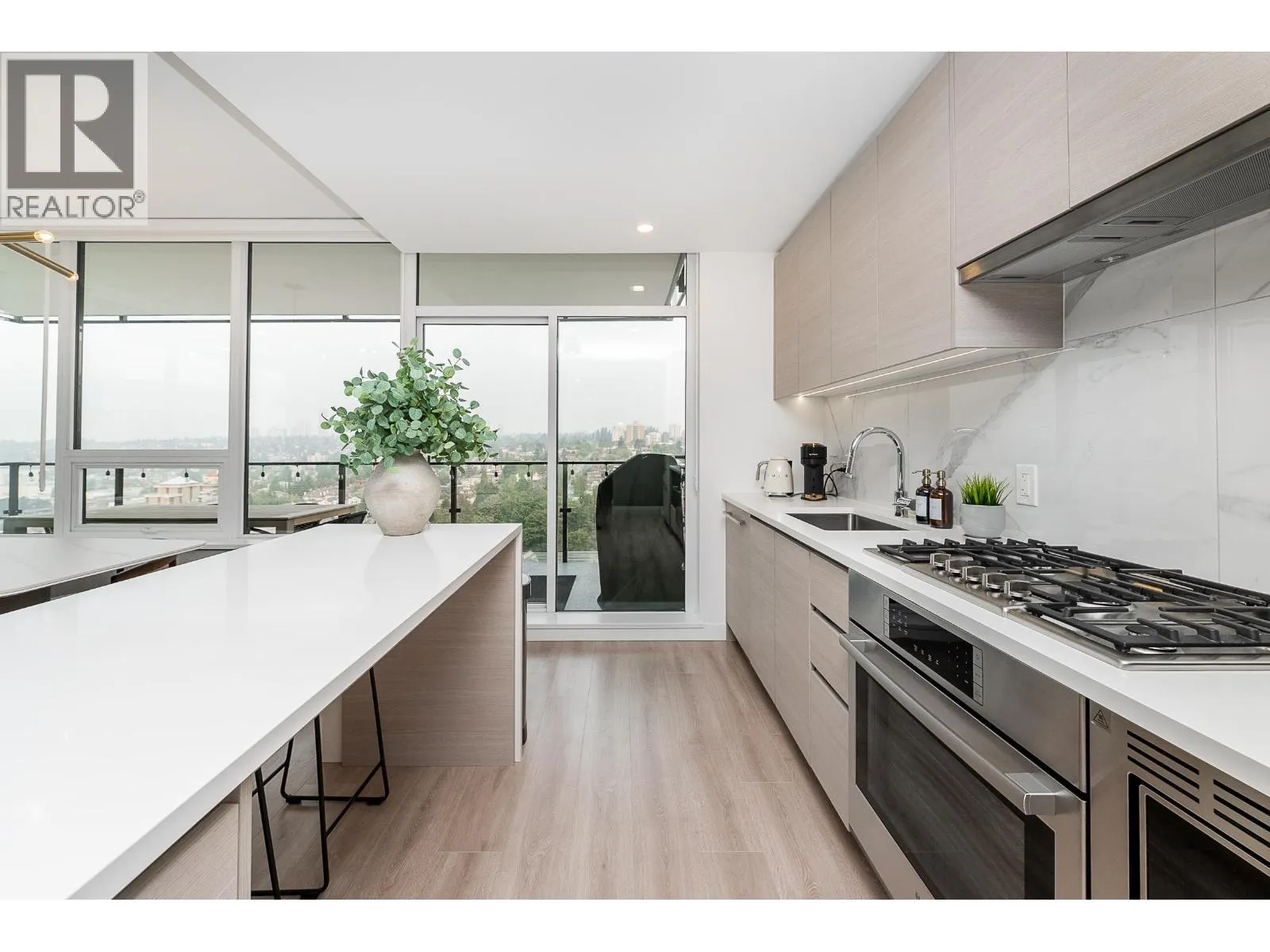 Sky-high luxury living at Ovation, in the heart of downtown New Westminster - NO GST! This beautifully updated 3 bed, 2 bath residence features 2 side-by-side parking stalls including an EV charger, 3 storage lockers, and 1245 sq/ft of luxurious living space. Incredible open layout, A/C, and breathtaking views through the oversized windows. The 458 square foot wrap-around balcony is perfect for entertaining, or morning coffee as the sun comes up. The gourmet kitchen offers a sleek design, integrated appliances, quartz counters and contemporary finishes. The spacious primary connects to the spa-like ensuite and large WIC. Outstanding amenities including a rooftop gym, hot tub, clubhouse, concierge services and more. Conveniently located within steps from Skytrain, shopping and restaurants. (id:27476)